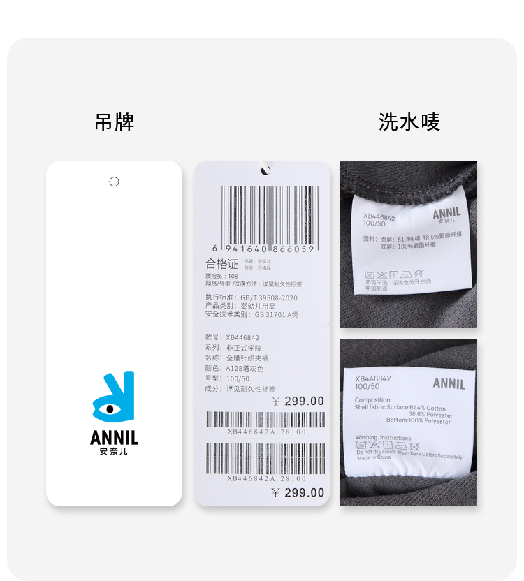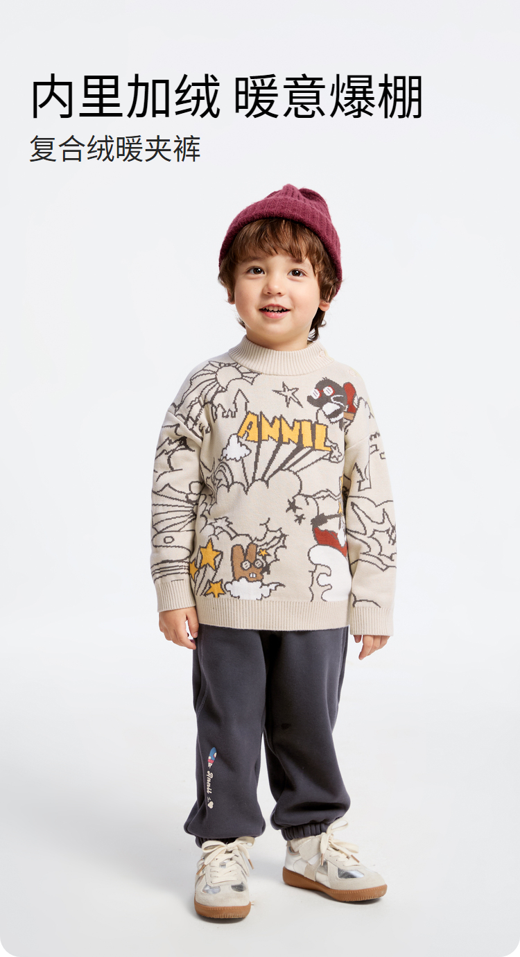 男童复合绒保暖夹裤冬季新款安奈儿童装实体店同款XB446842