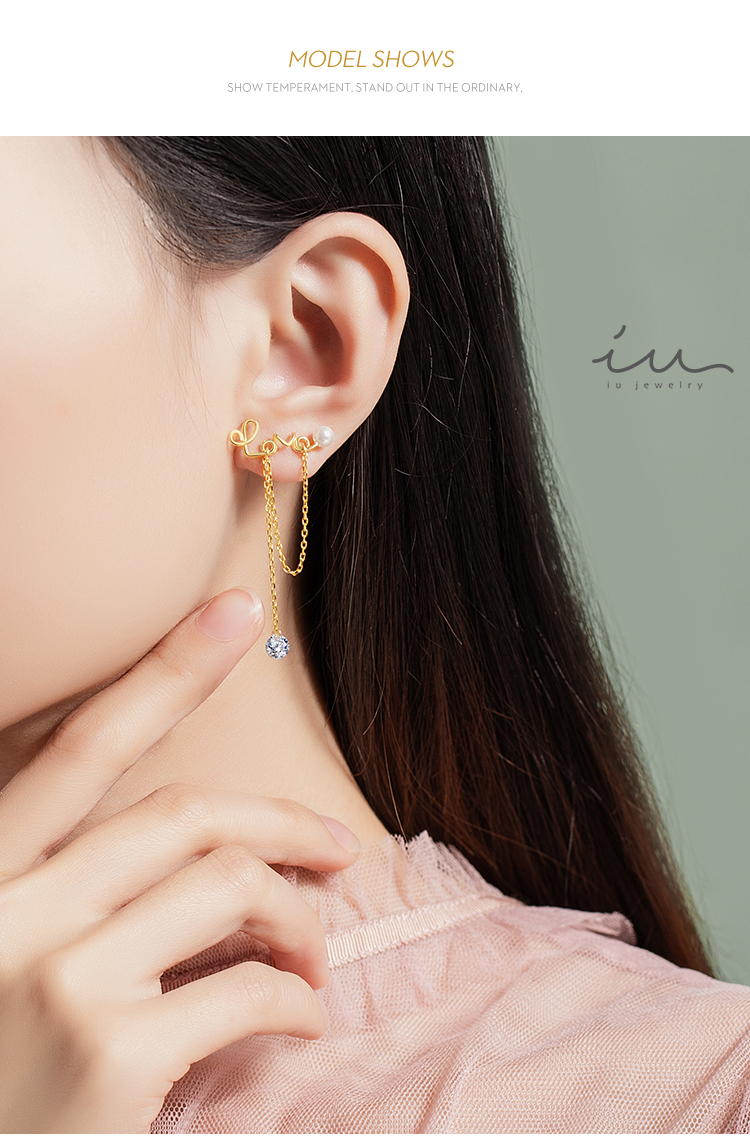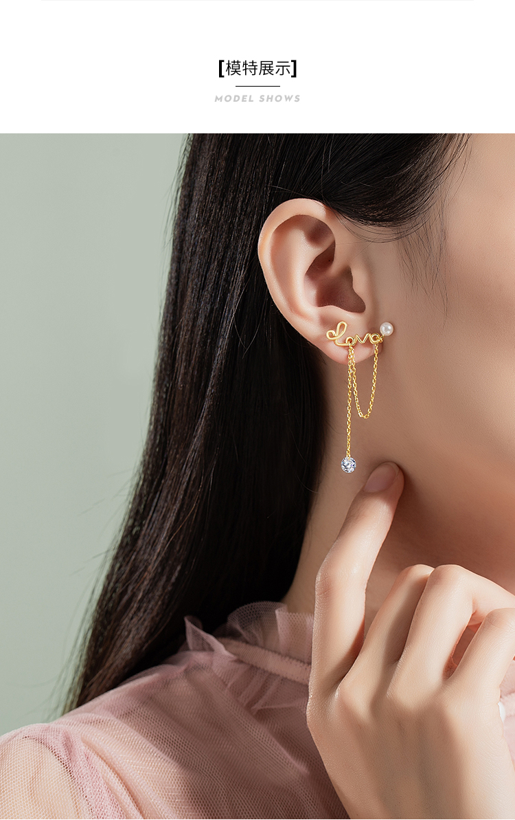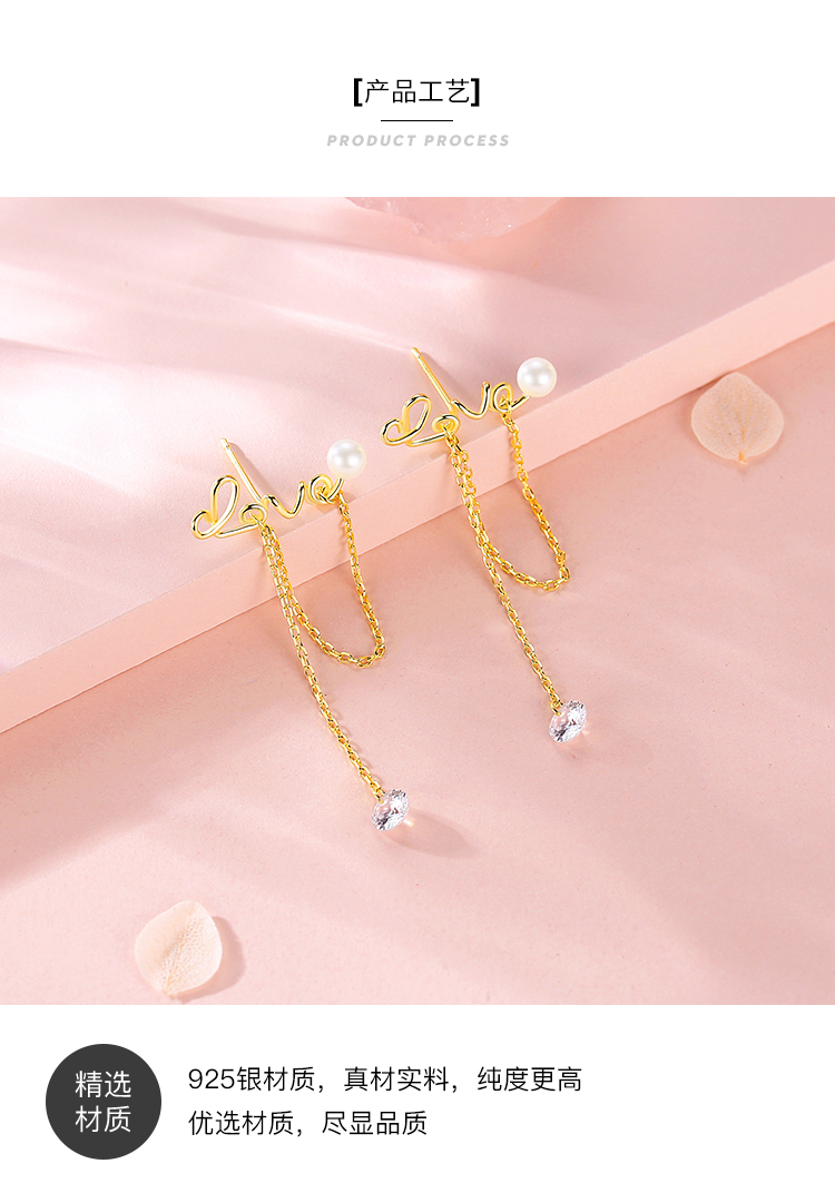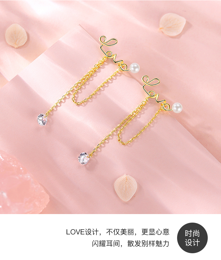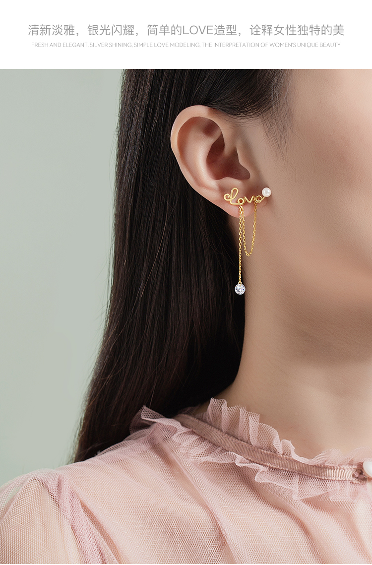 Winys925 银迷离简爱耳钉金色仿珍珠 & 合成立方氧化锆耳饰送女朋友/老婆/闺蜜生日节日礼物