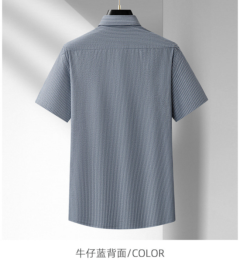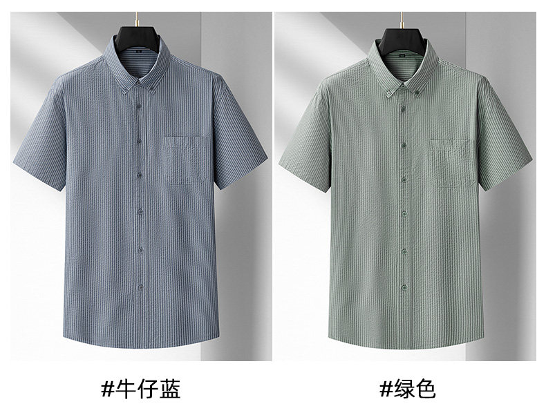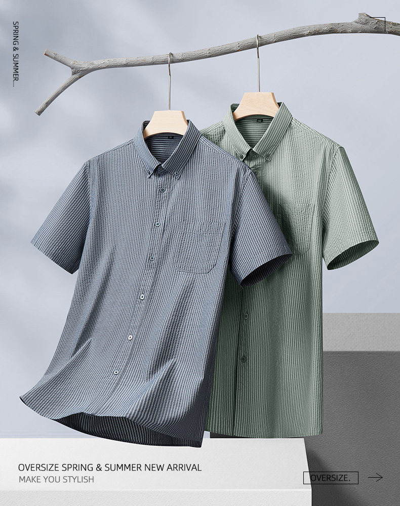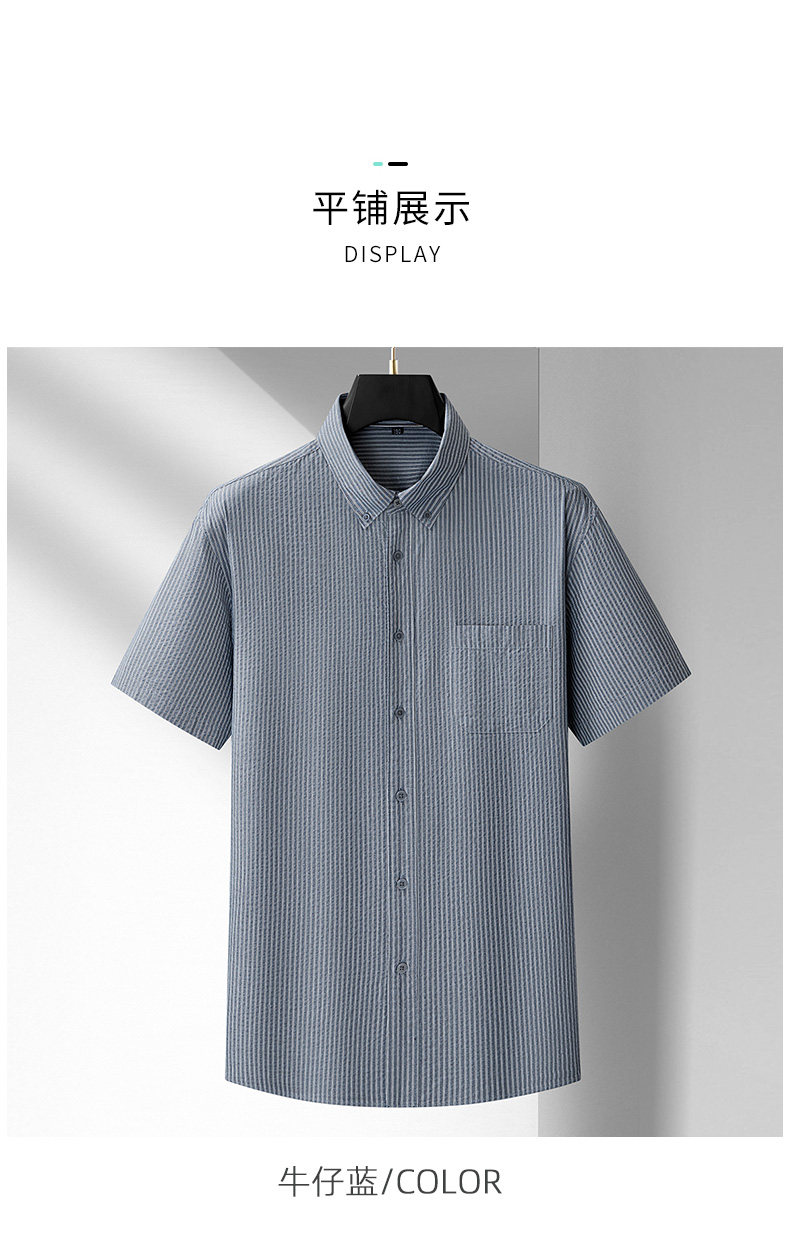 【DM】大依优型大码男装夏季竖条纹短袖衬衫商务休闲棉质翻领上衣T恤320