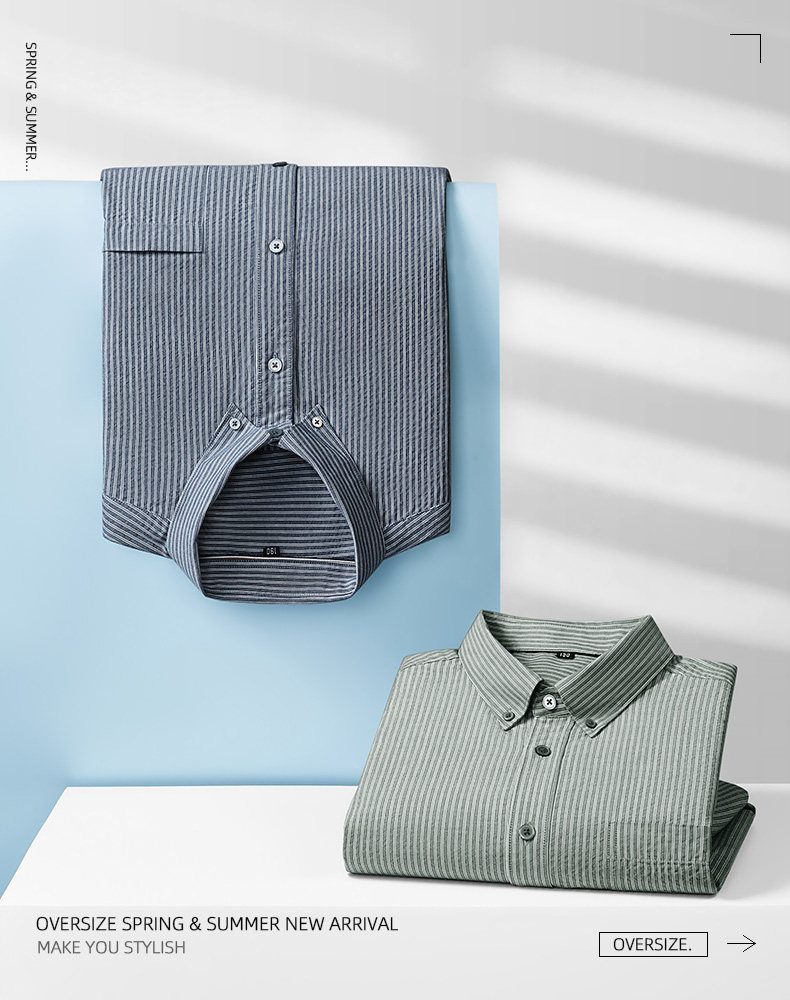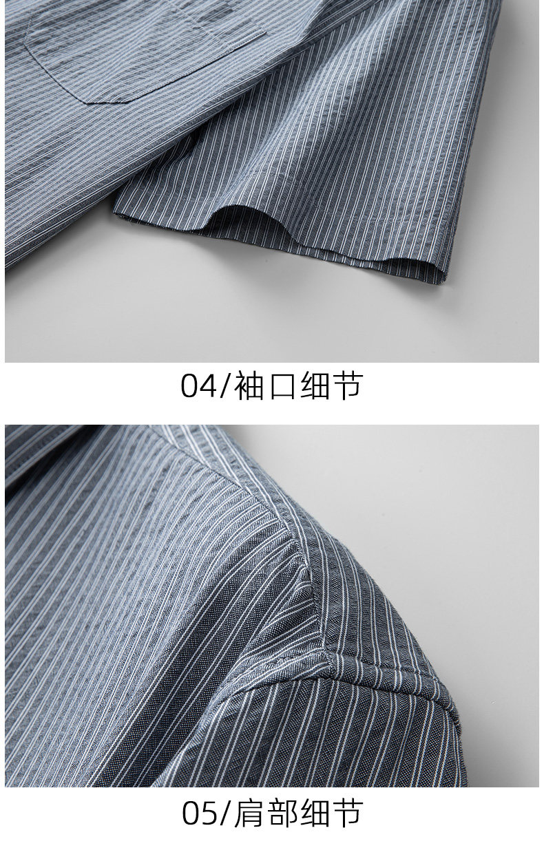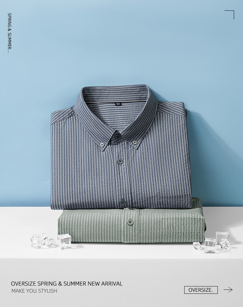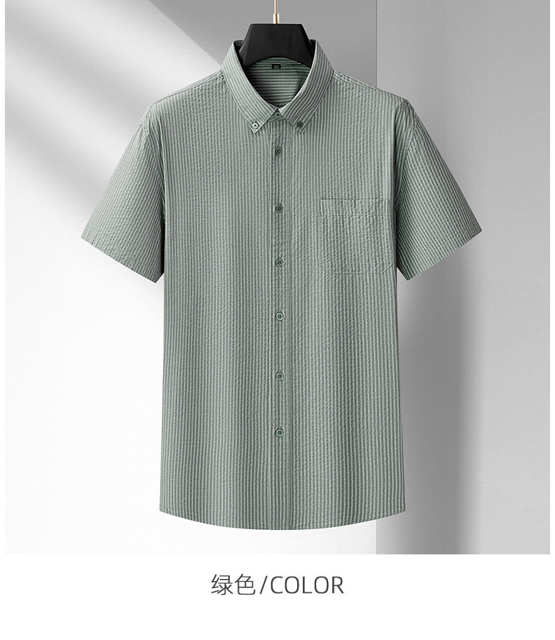 【DM】大依优型大码男装夏季竖条纹短袖衬衫商务休闲棉质翻领上衣T恤320