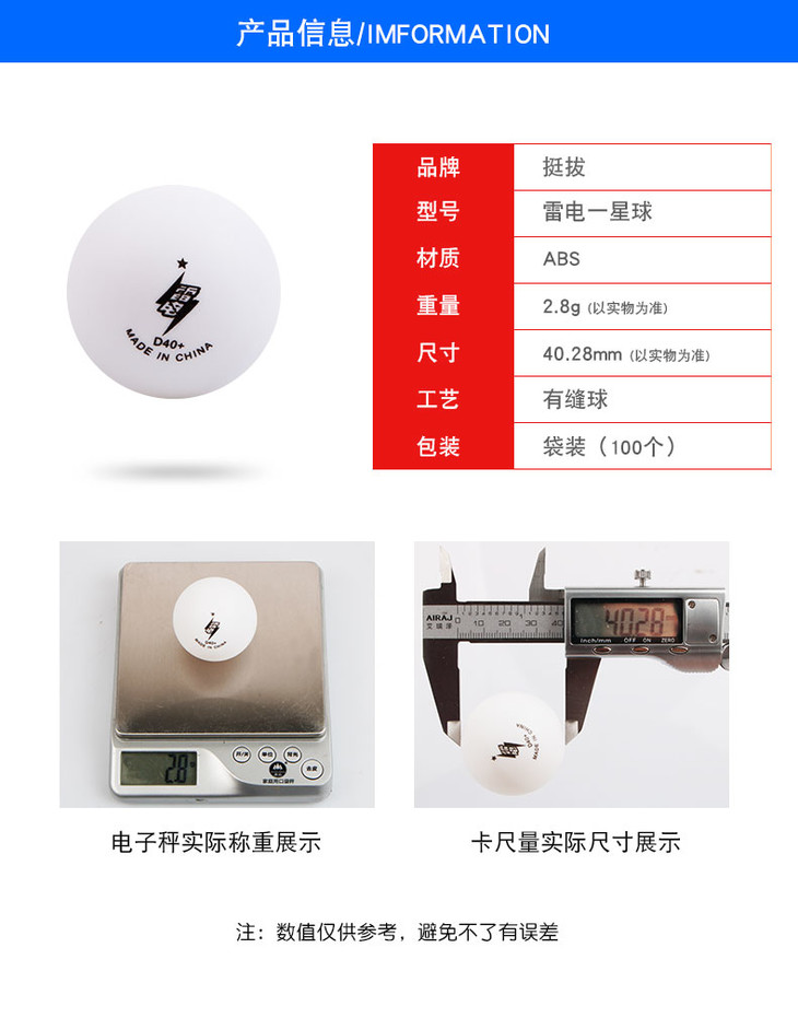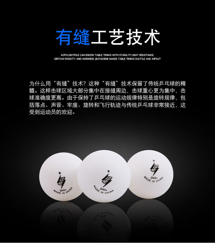 挺拔 雷电一星新材料有缝40+训练球 100个装