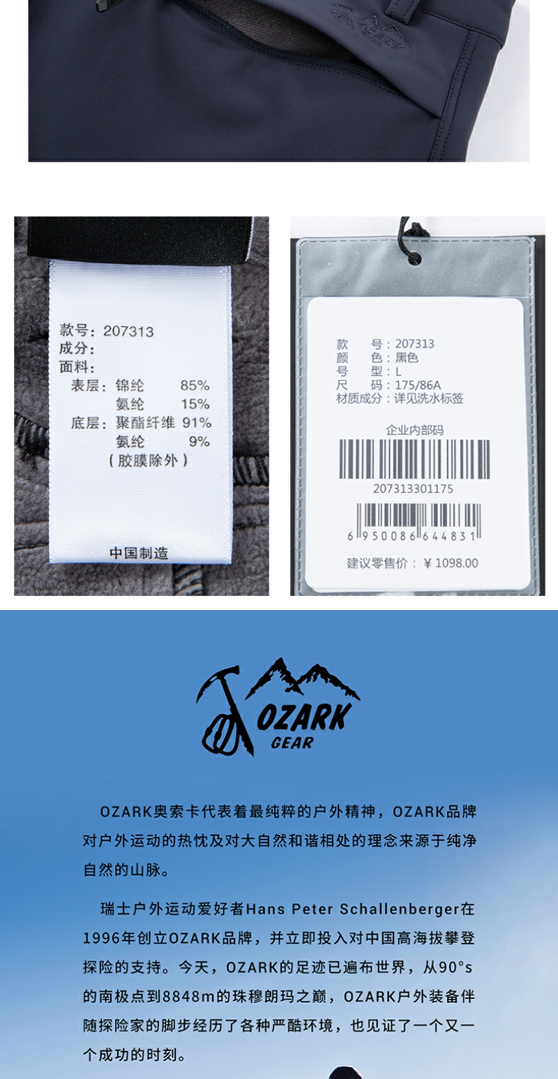 OZARK奥索卡休闲裤新款官方正品宽松直筒徒步户外保暖软壳长裤207313