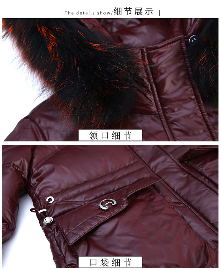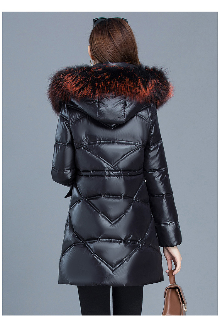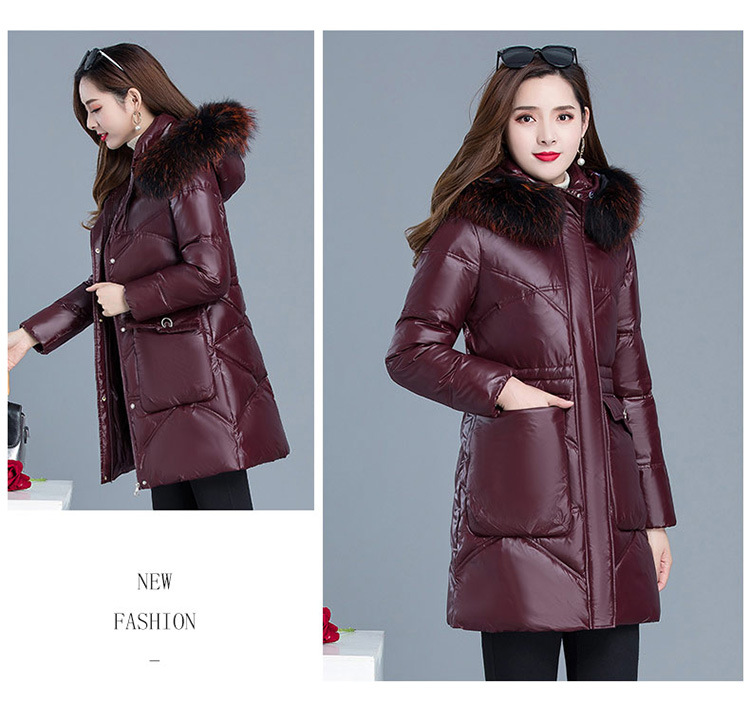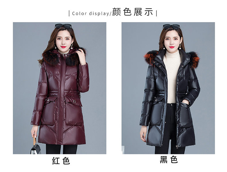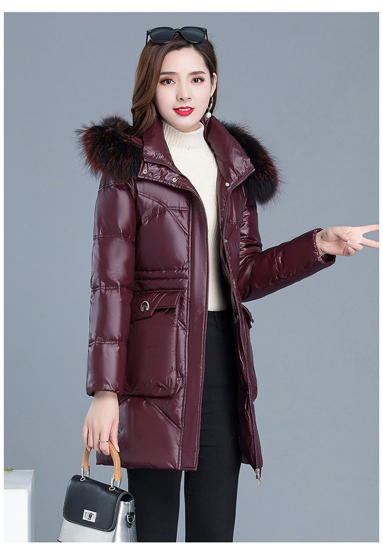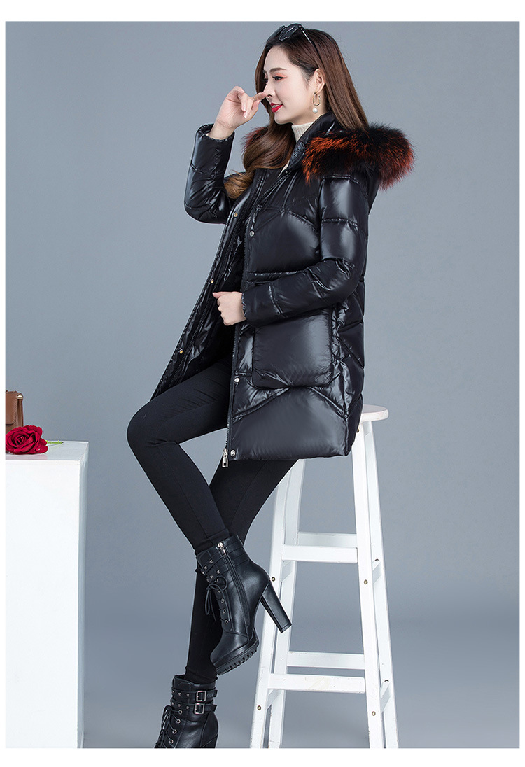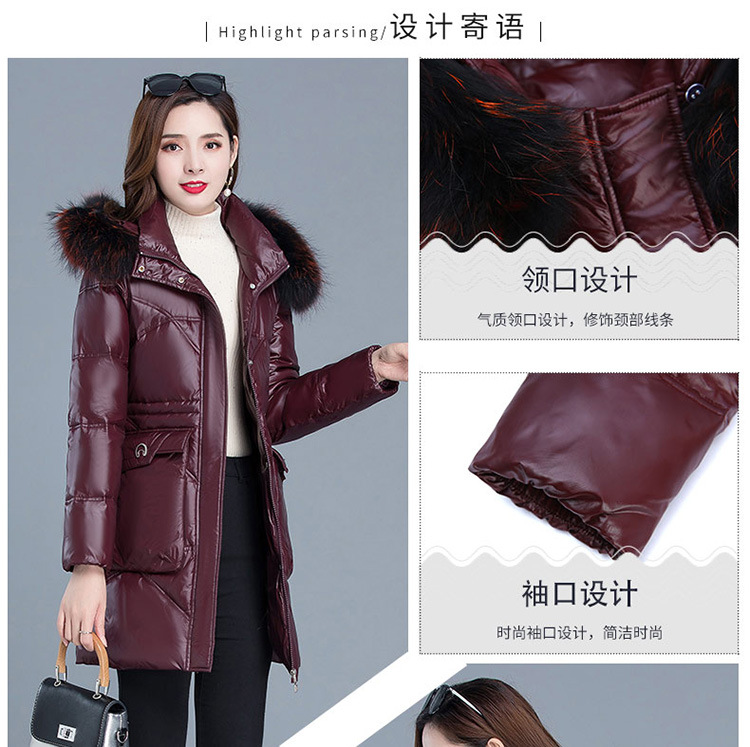 QYM-LLZ-FG817-Y新款时尚优雅气质毛领连帽中长款亮面加厚棉服外套