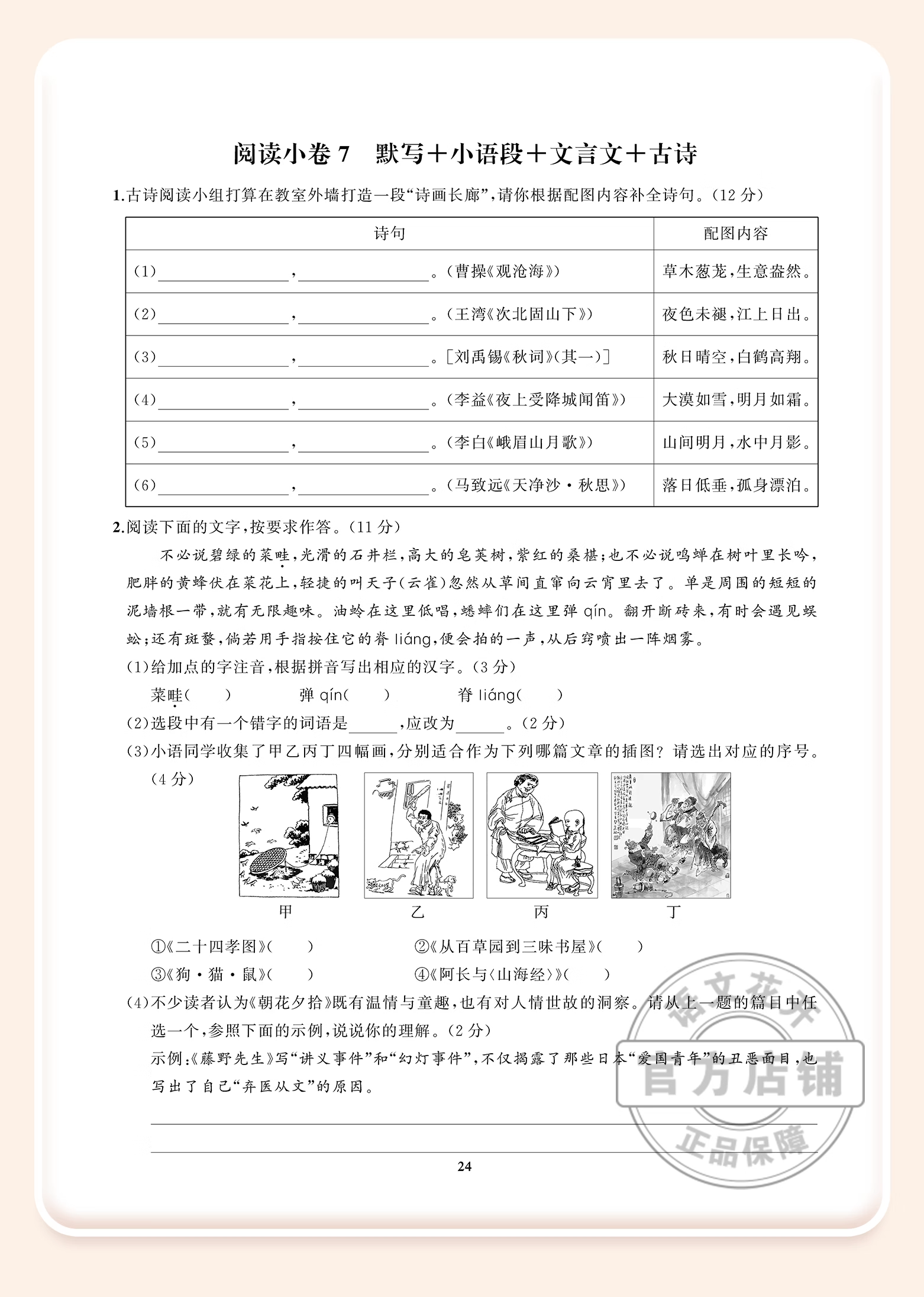 2026语文花开组合阅读七年级八年级九年级初中语文阅读理解古诗文训练