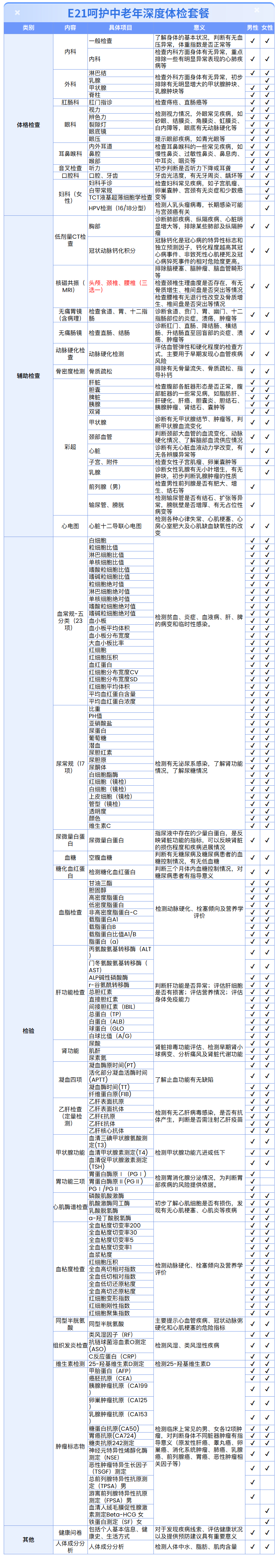 【中老年 | 深度呵护】含胃镜/肠镜+核磁共振+2项低剂CT+同型半胱氨酸+肿瘤十二项 E21