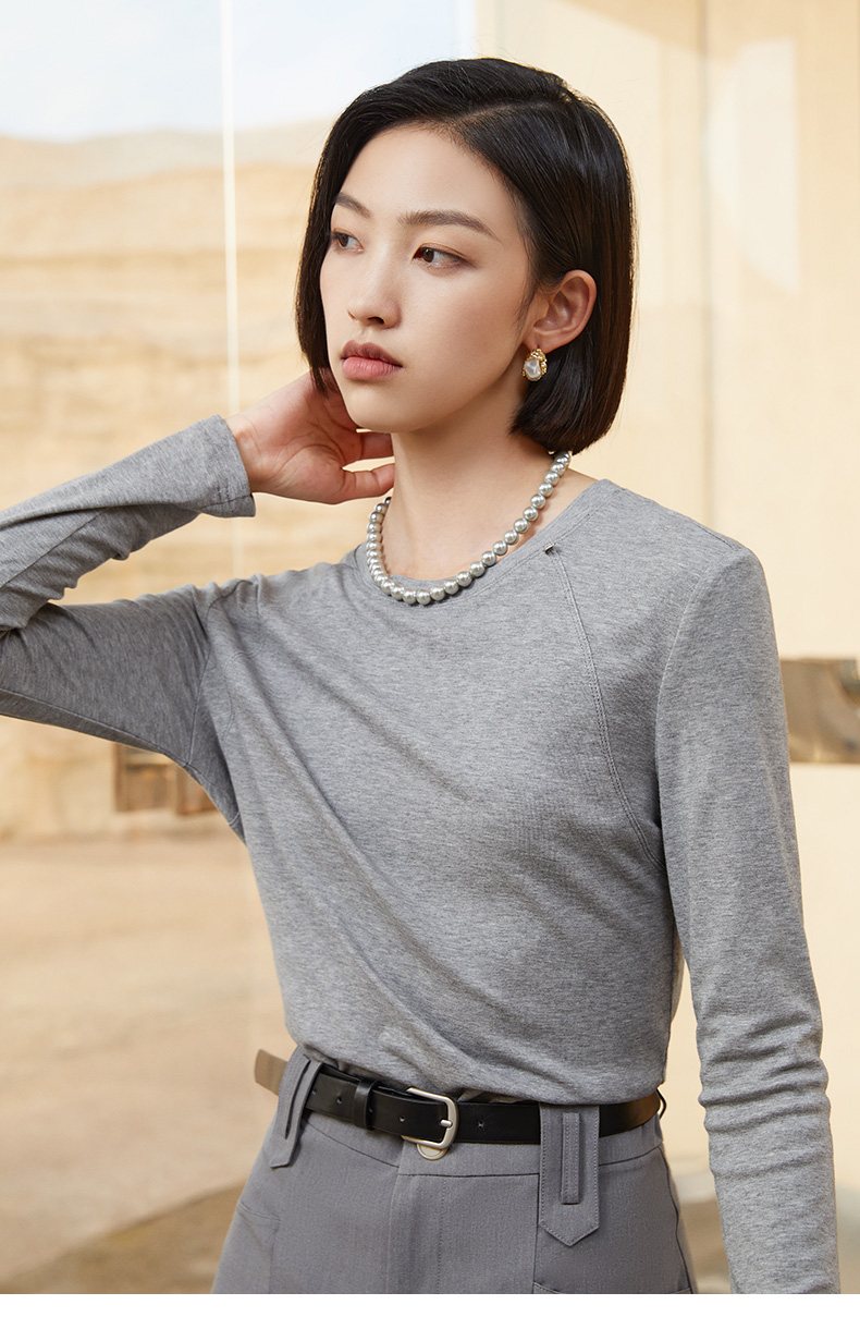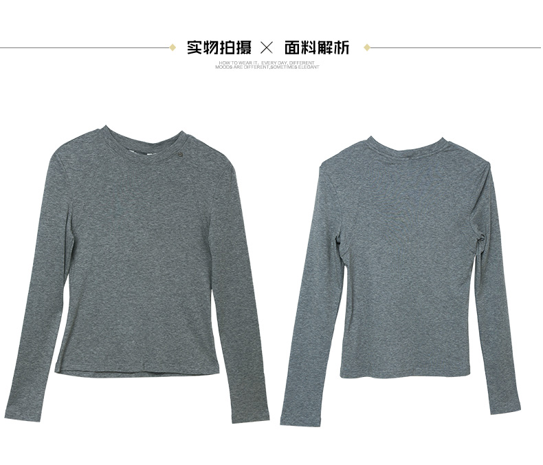灰色长袖T恤女秋季新款 简约圆领修身内搭打底衫百搭显瘦上衣