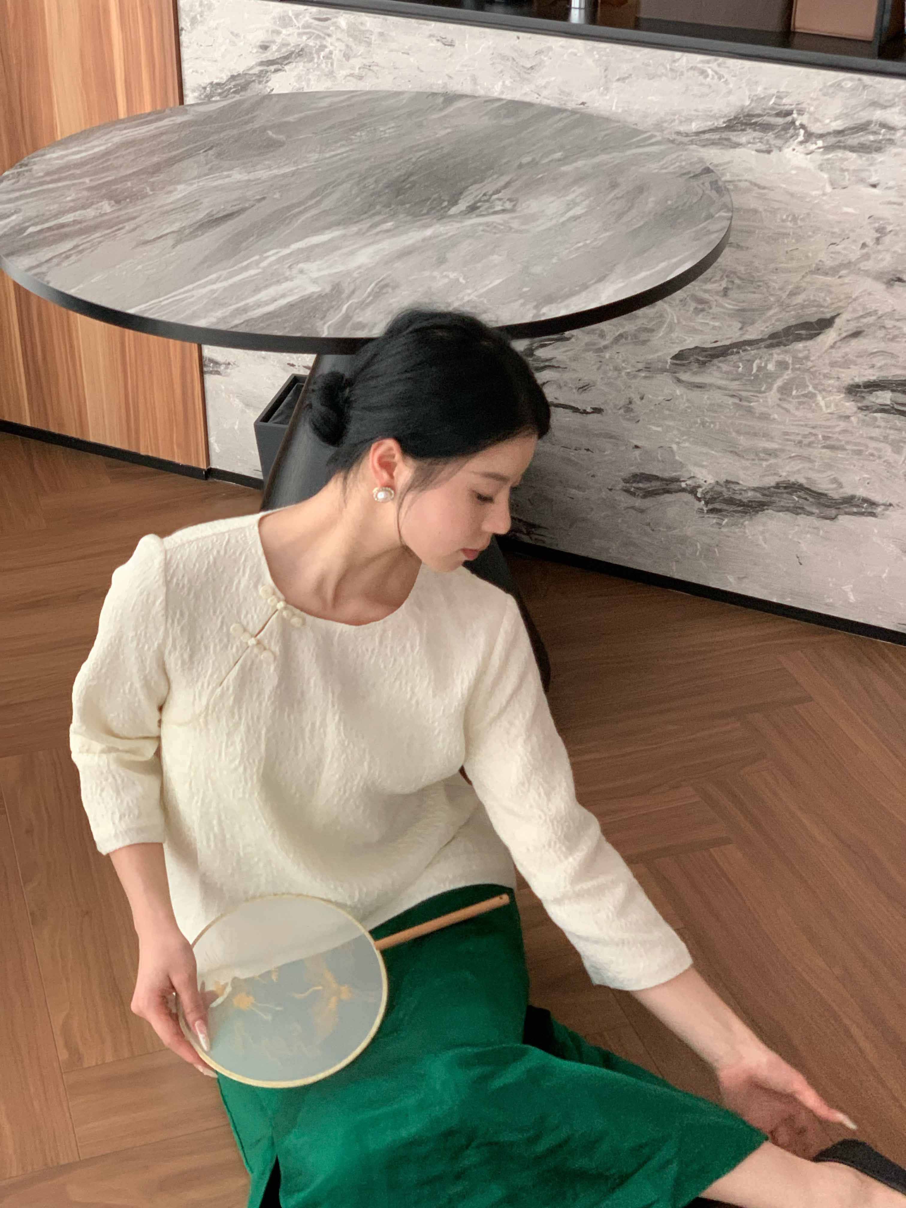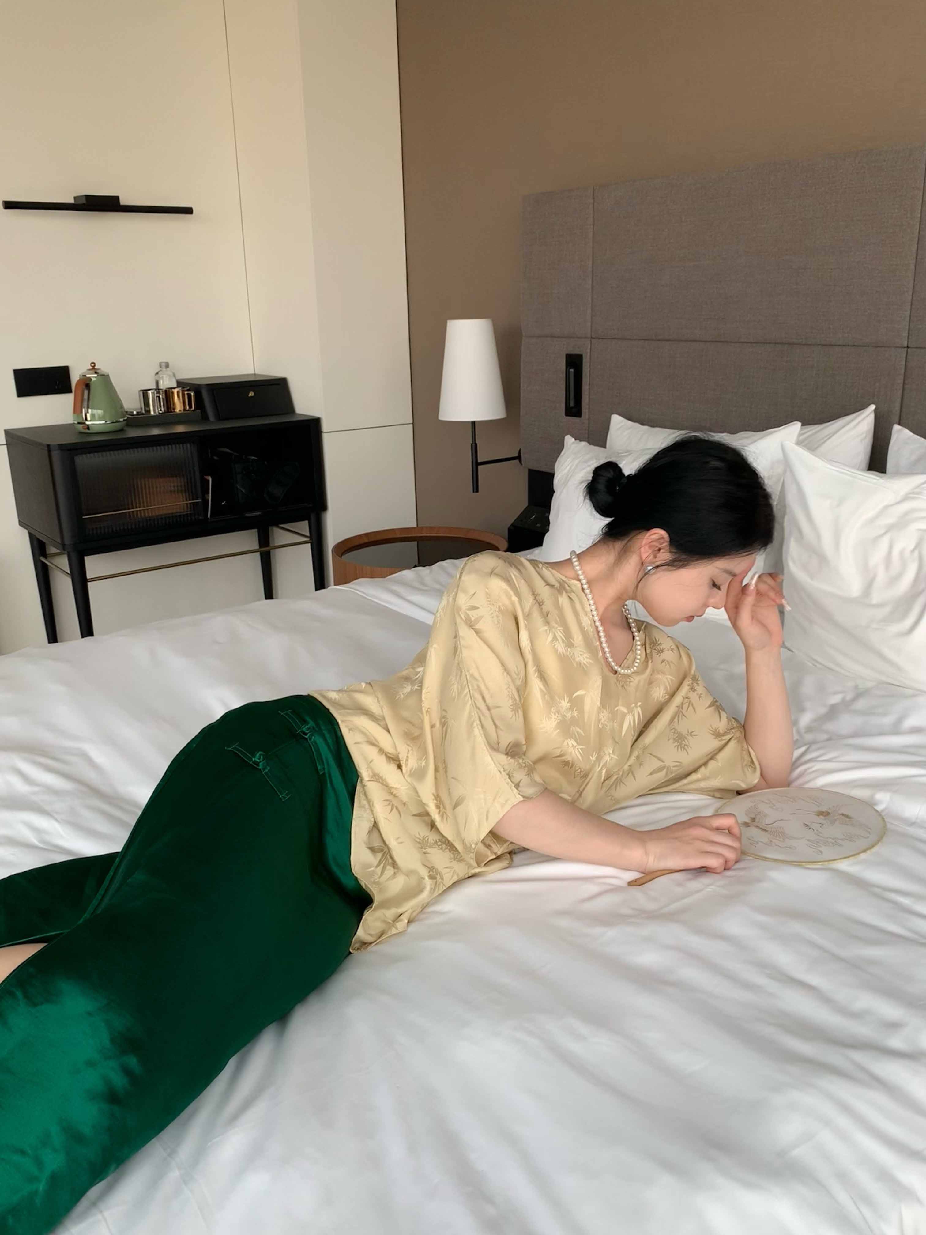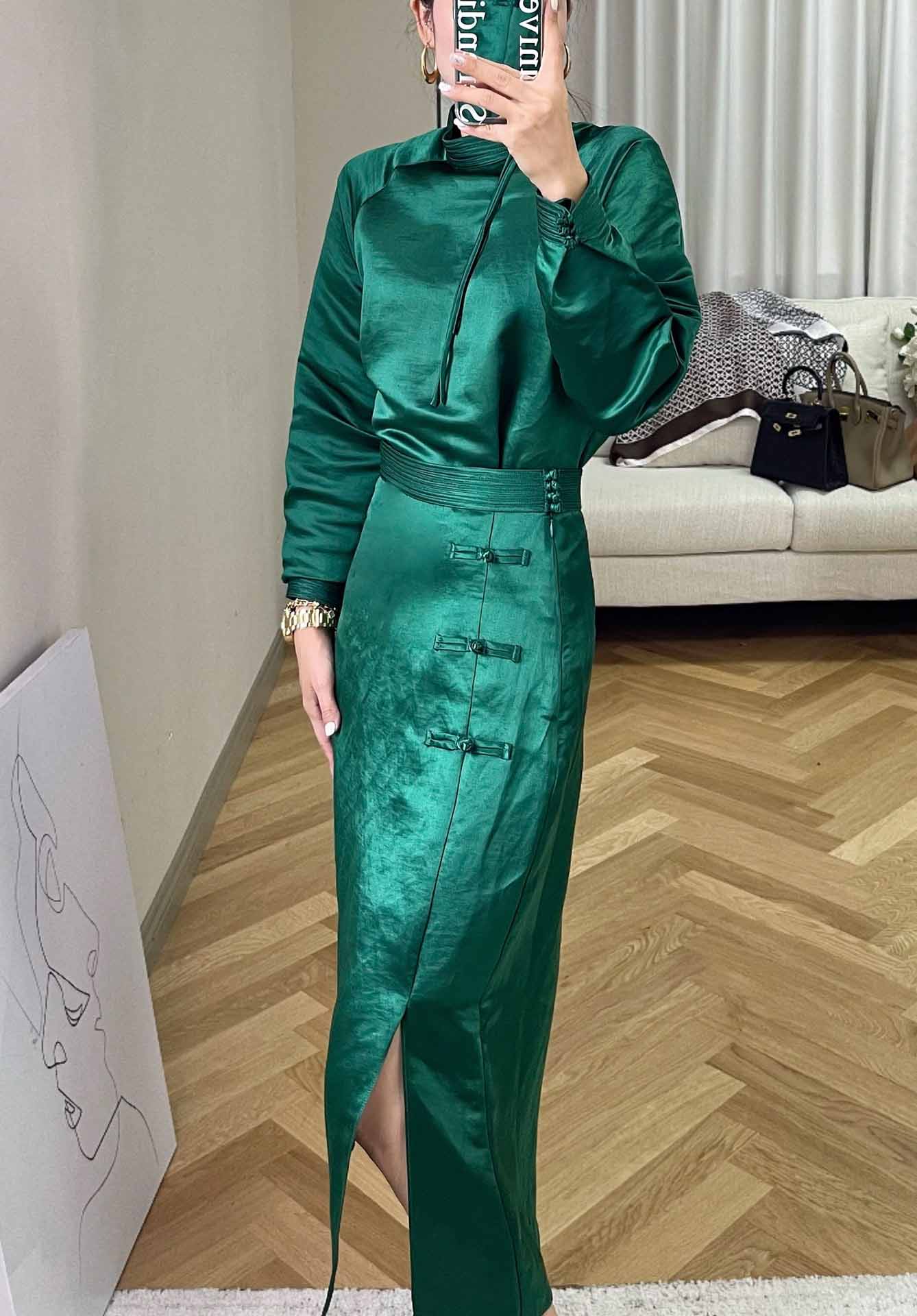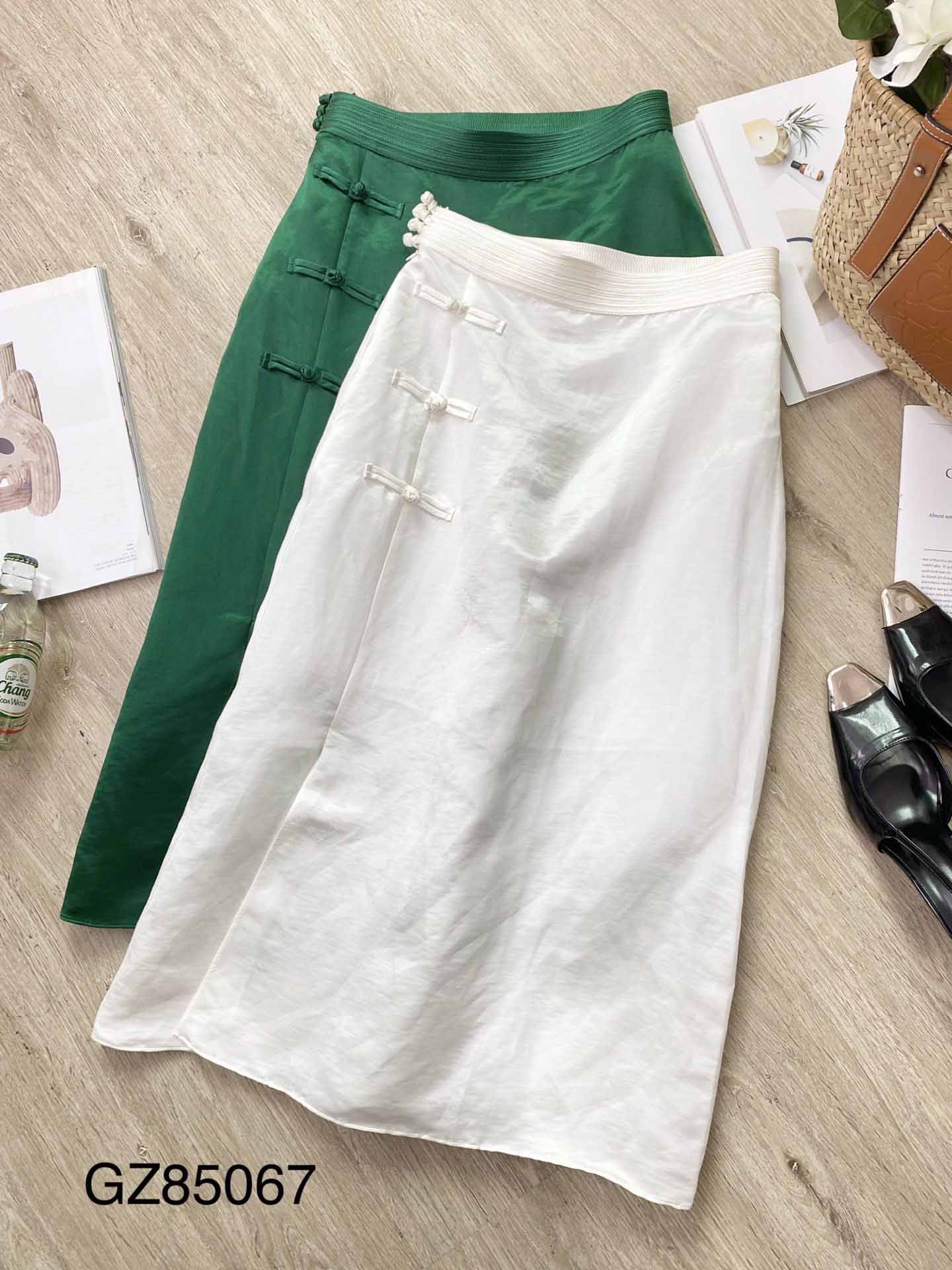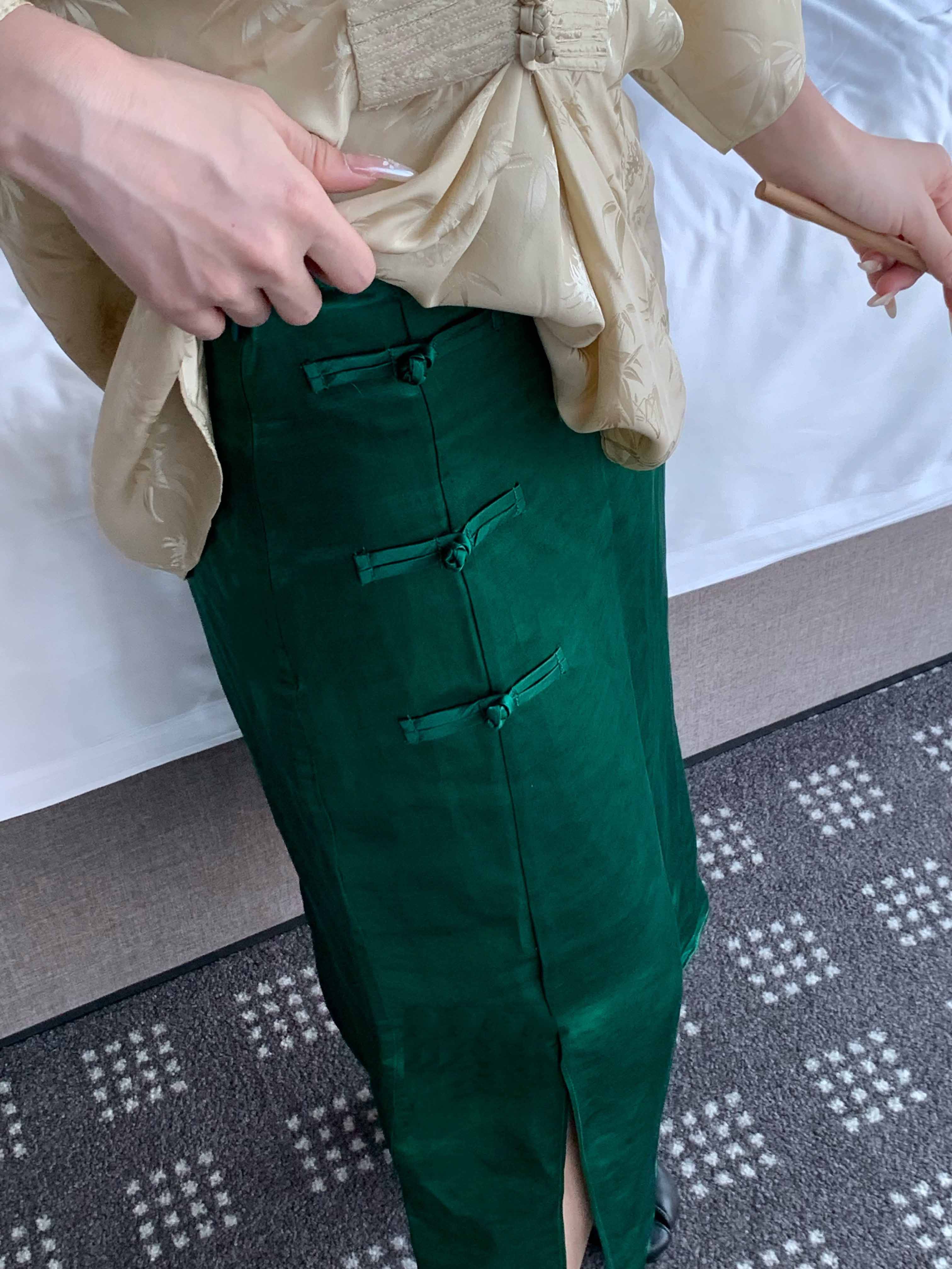 顺丰包邮洛诗琳34326新中式丝麻盘扣侧开叉直筒半身裙85067