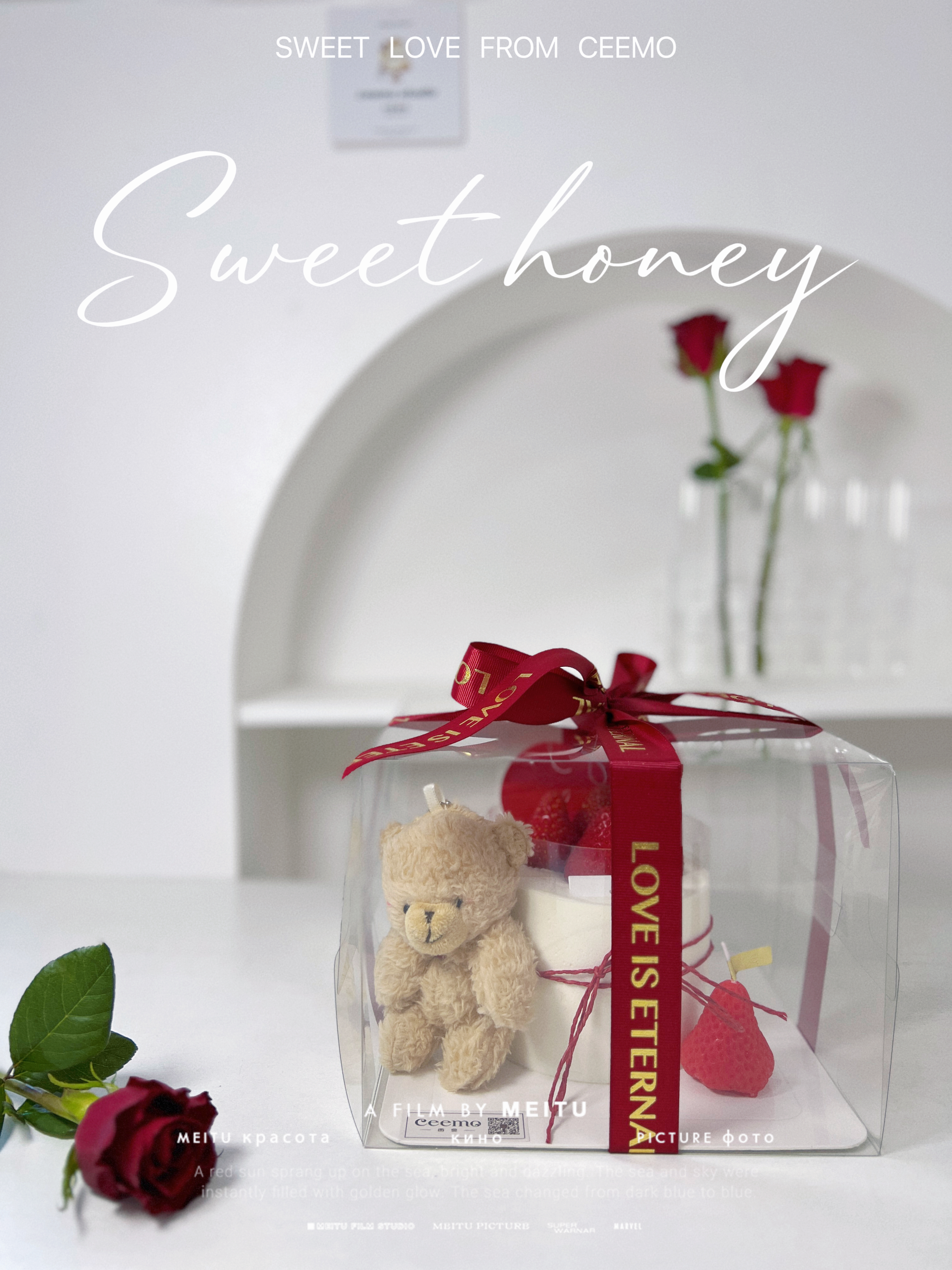 装饰:底托上的草莓为蜡烛可点燃