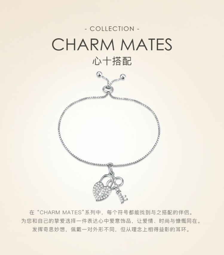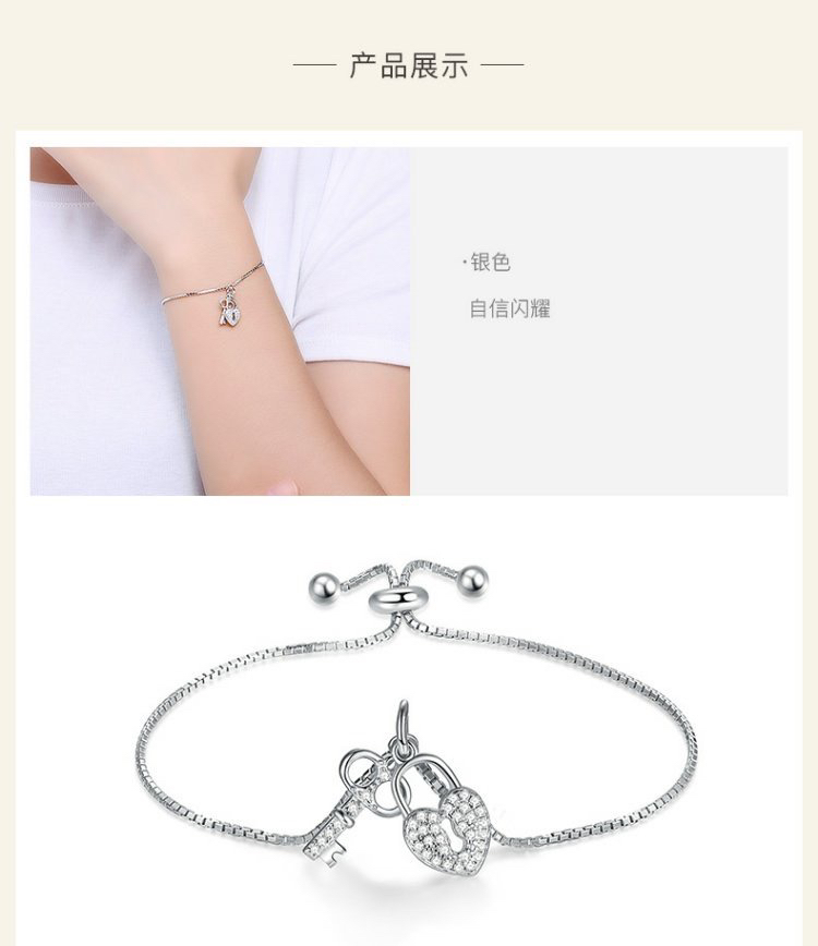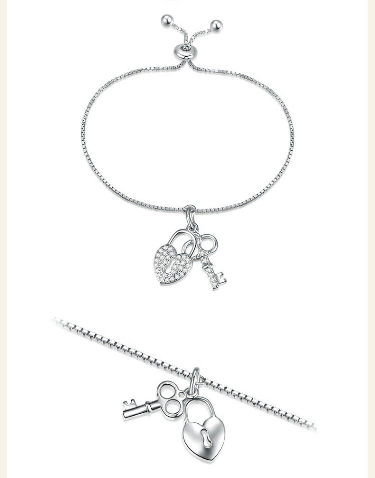 芙丽芙丽/Folli Follie 简约甜美手链心形锁钥造型潮流轻奢闺蜜手镯