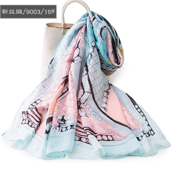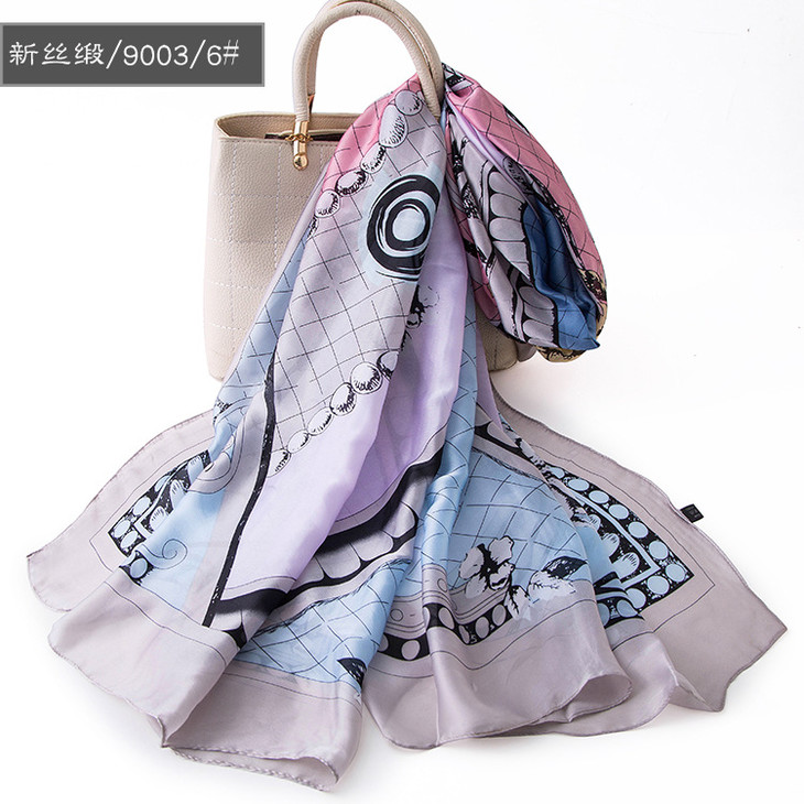 WSDN-9003新品时尚走秀印花缎面真丝披肩TZW