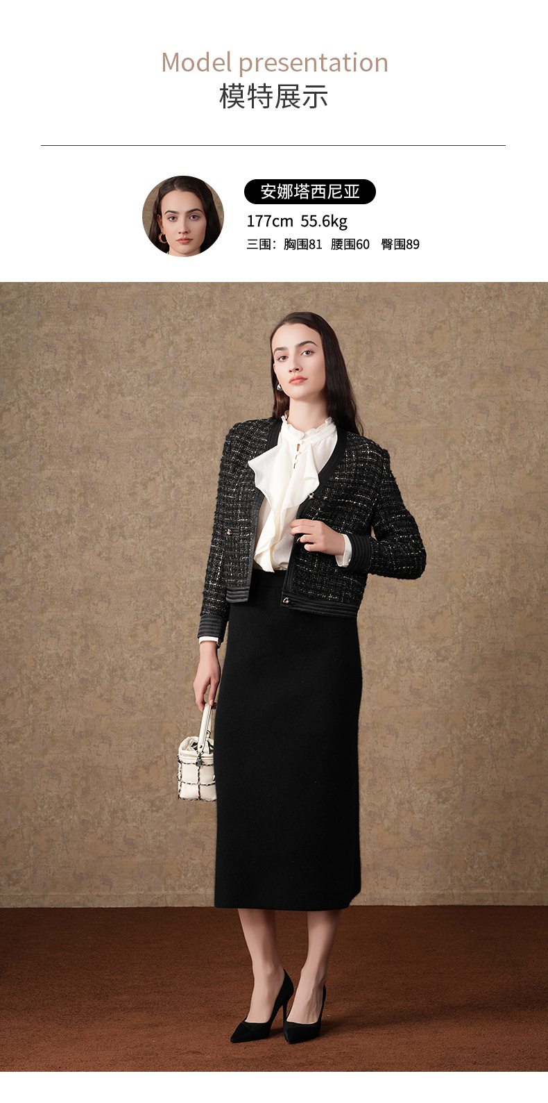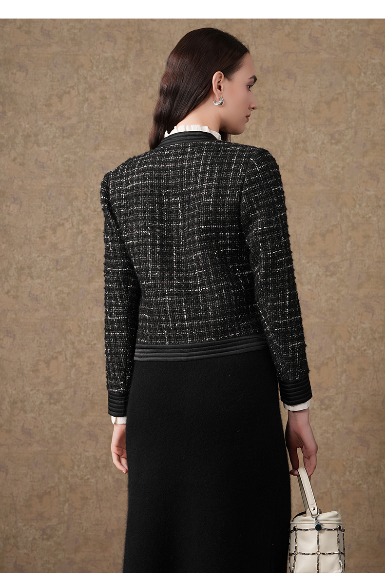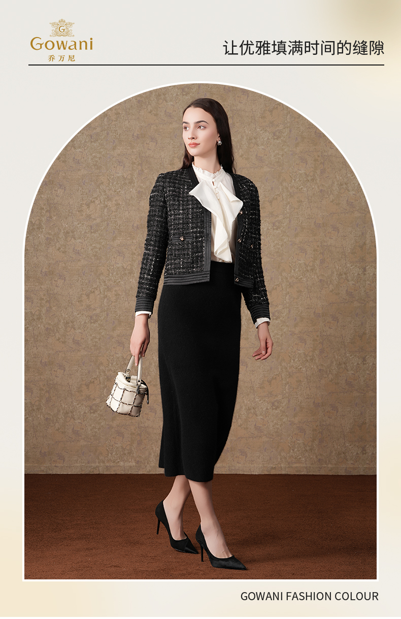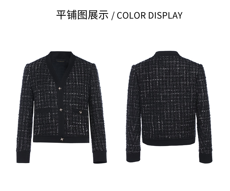 乔万尼秋冬新款小香风短外套V领粗花呢设计ET4B868
