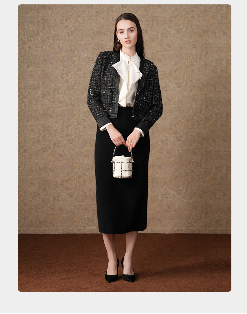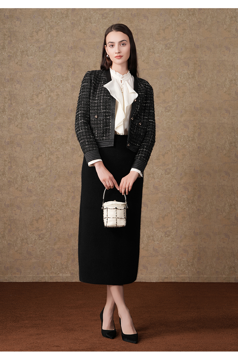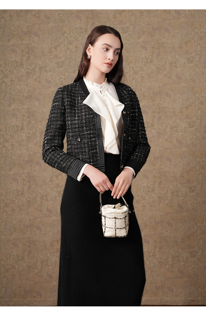 乔万尼秋冬新款小香风短外套V领粗花呢设计ET4B868