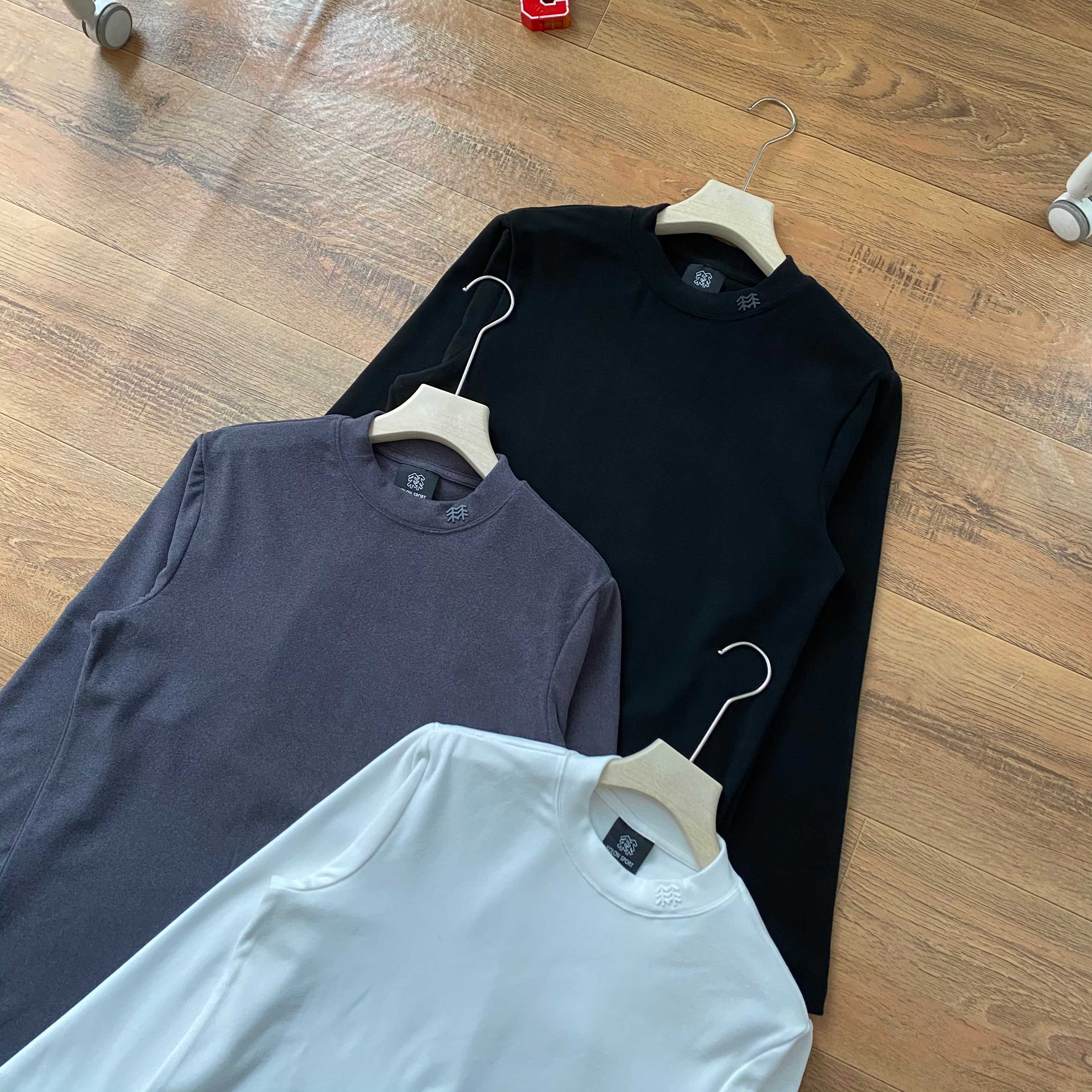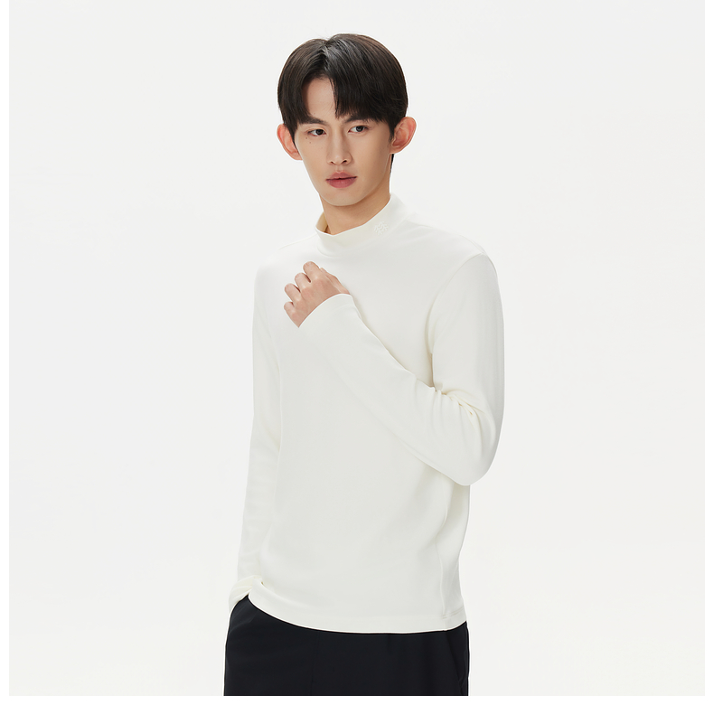 面料柔软有质感的半高领T恤,适合冬季穿着,