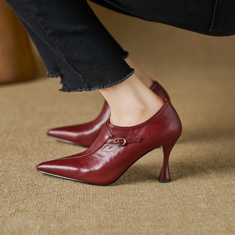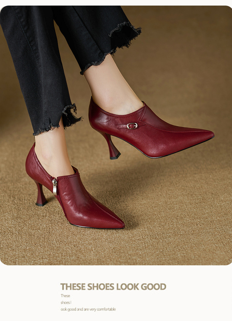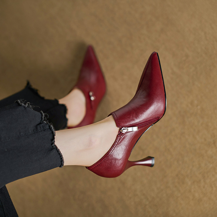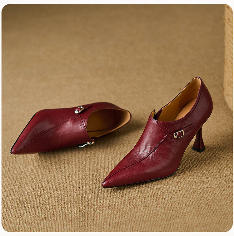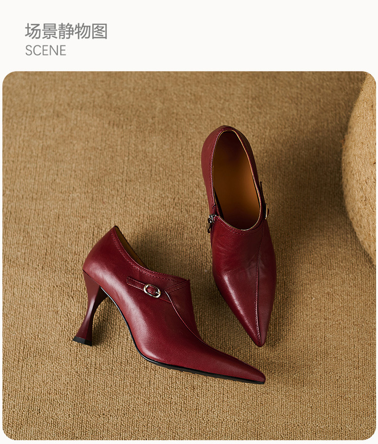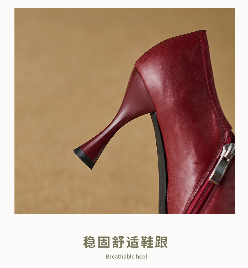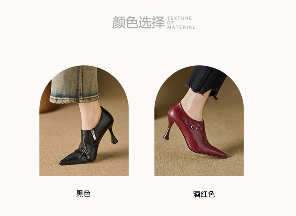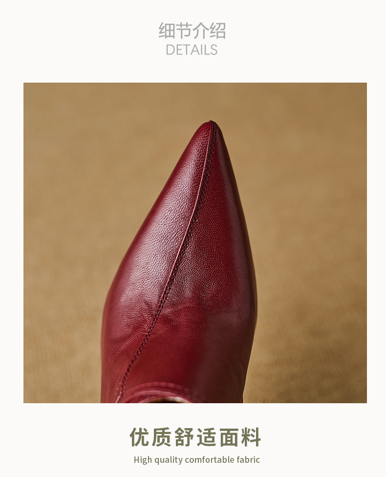 【货 号】721【鞋面材质】羊皮【鞋垫材质】猪皮【内里材质】羊皮【鞋 底】牛筋底【跟 高】8.5cm【颜 色】黑色 酒红色【尺 码】34 35 36 37 38 39