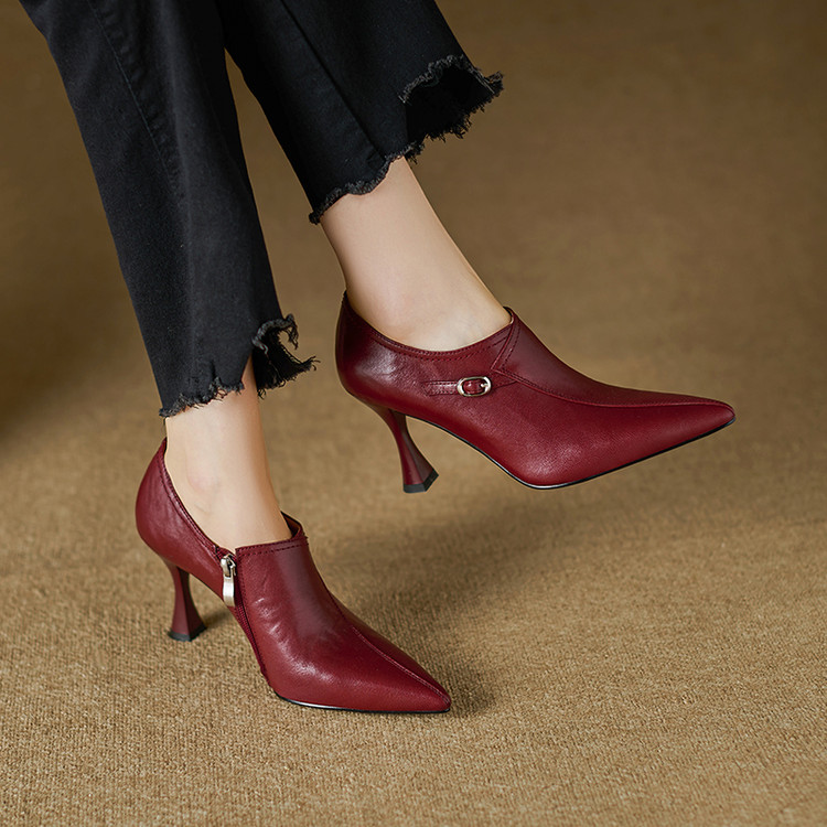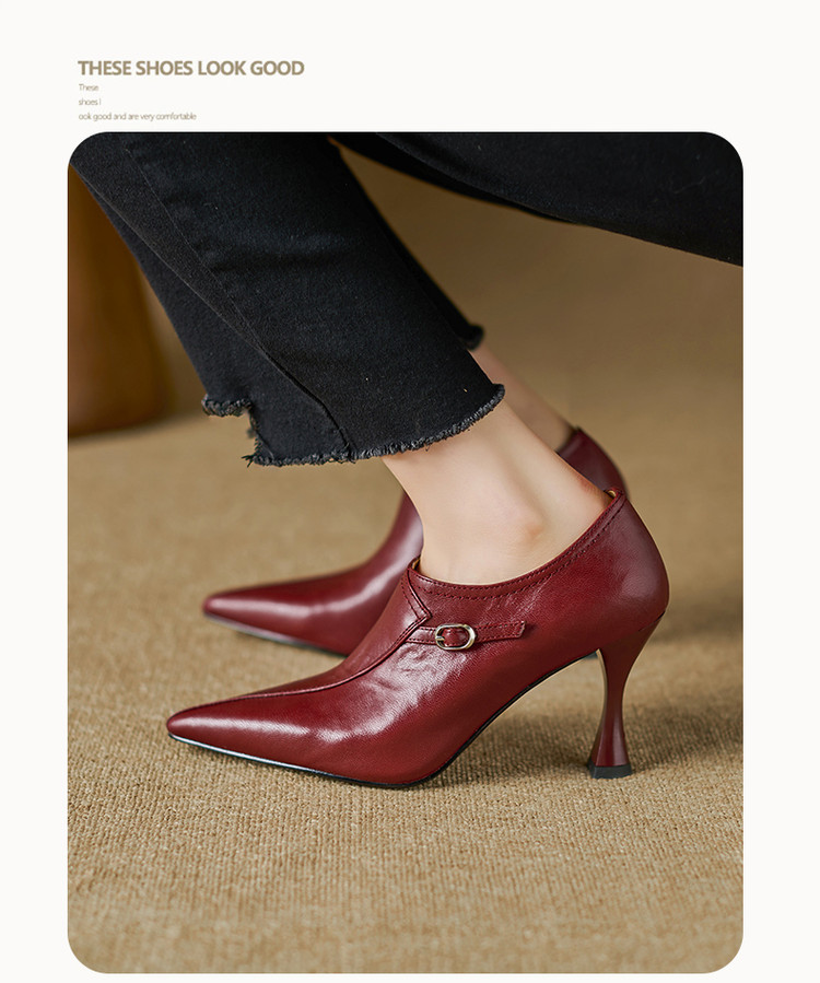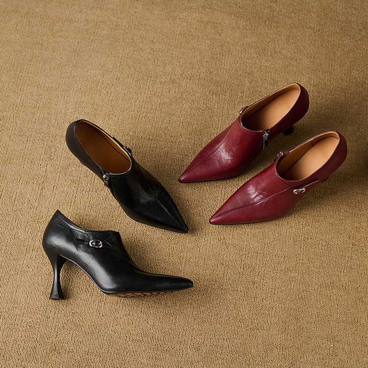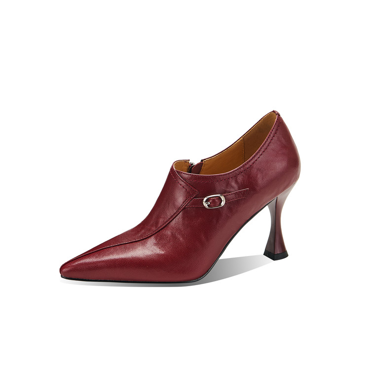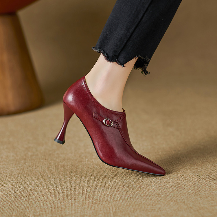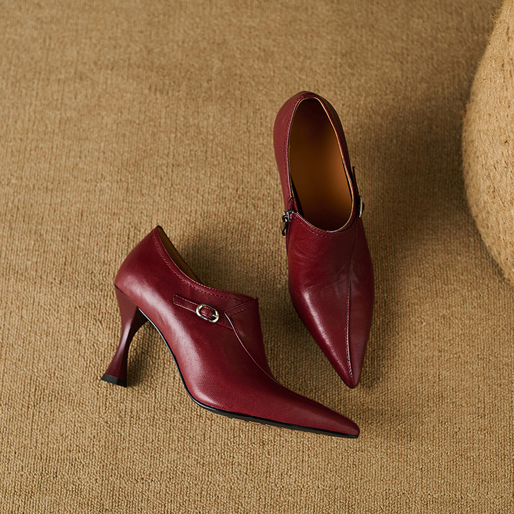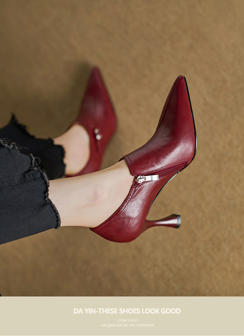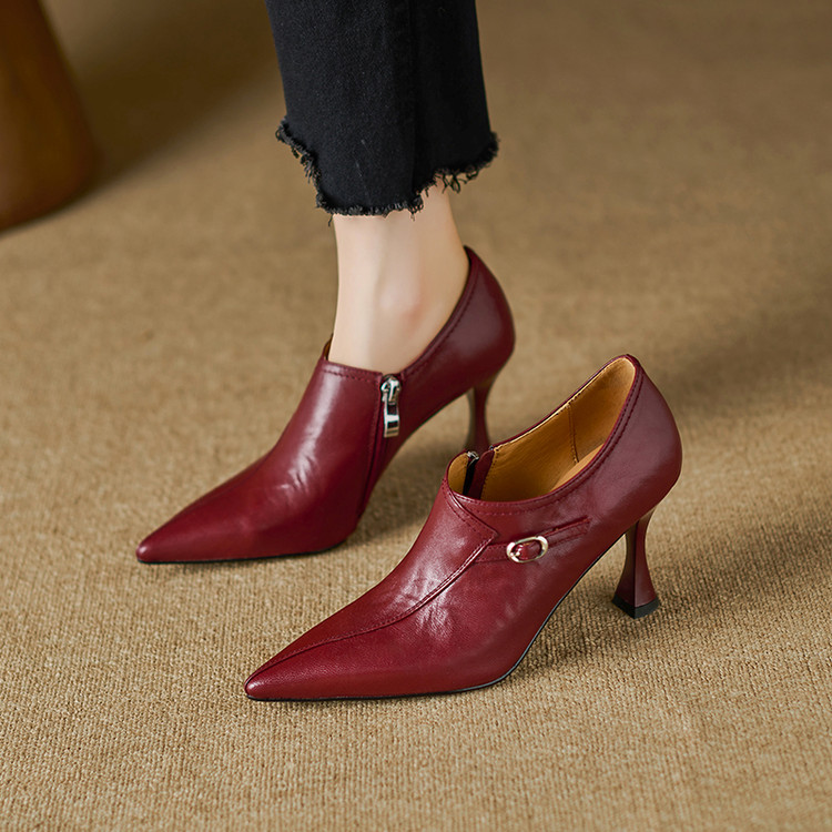 【货 号】721【鞋面材质】羊皮【鞋垫材质】猪皮【内里材质】羊皮【鞋 底】牛筋底【跟 高】8.5cm【颜 色】黑色 酒红色【尺 码】34 35 36 37 38 39