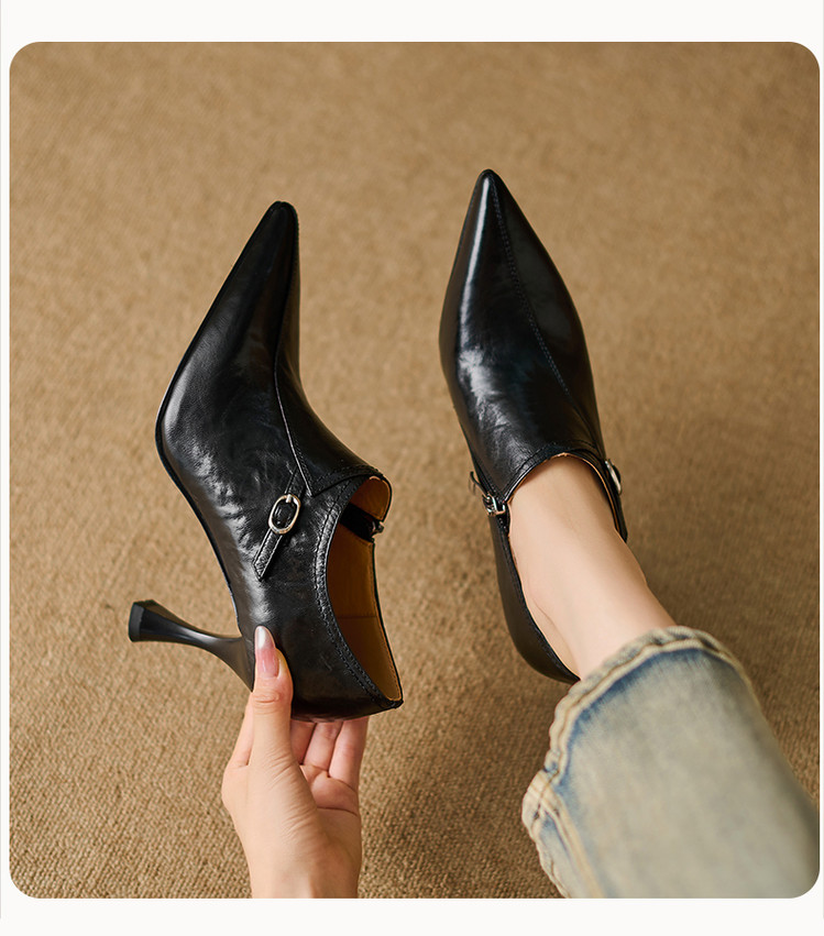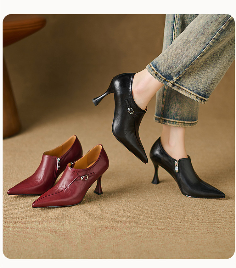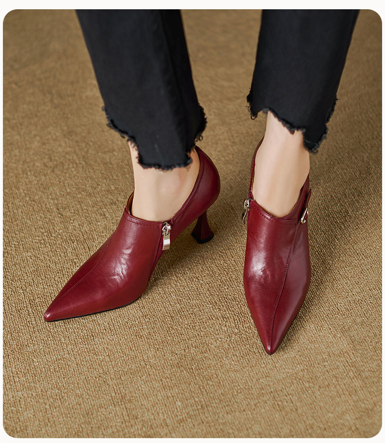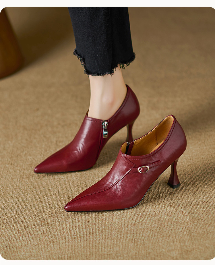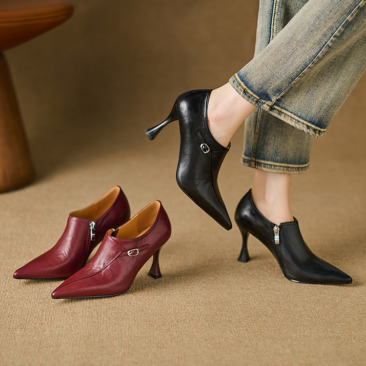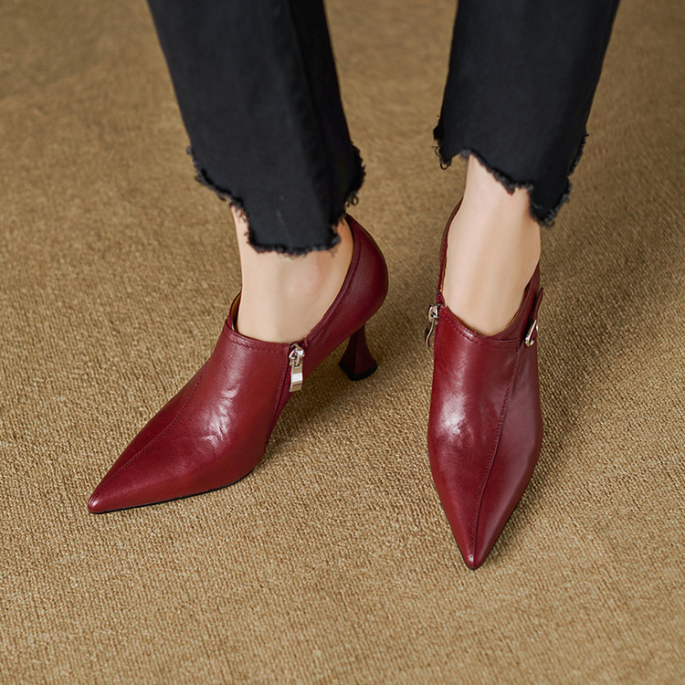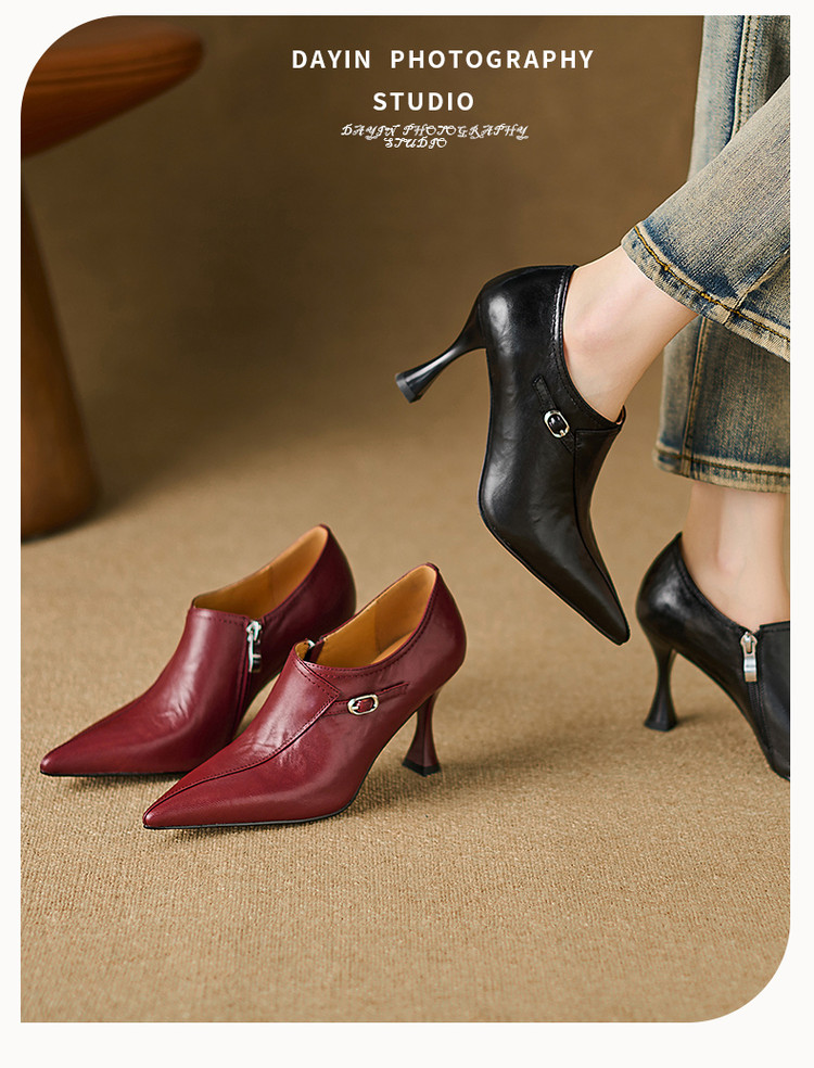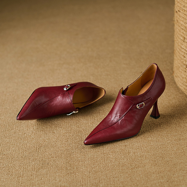 【货 号】721【鞋面材质】羊皮【鞋垫材质】猪皮【内里材质】羊皮【鞋 底】牛筋底【跟 高】8.5cm【颜 色】黑色 酒红色【尺 码】34 35 36 37 38 39