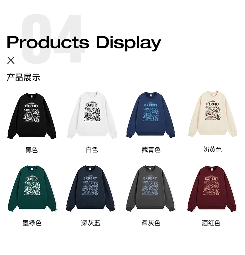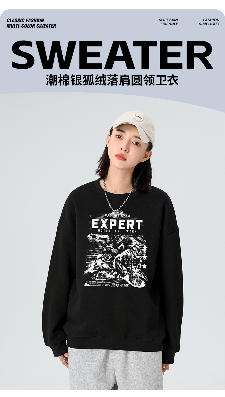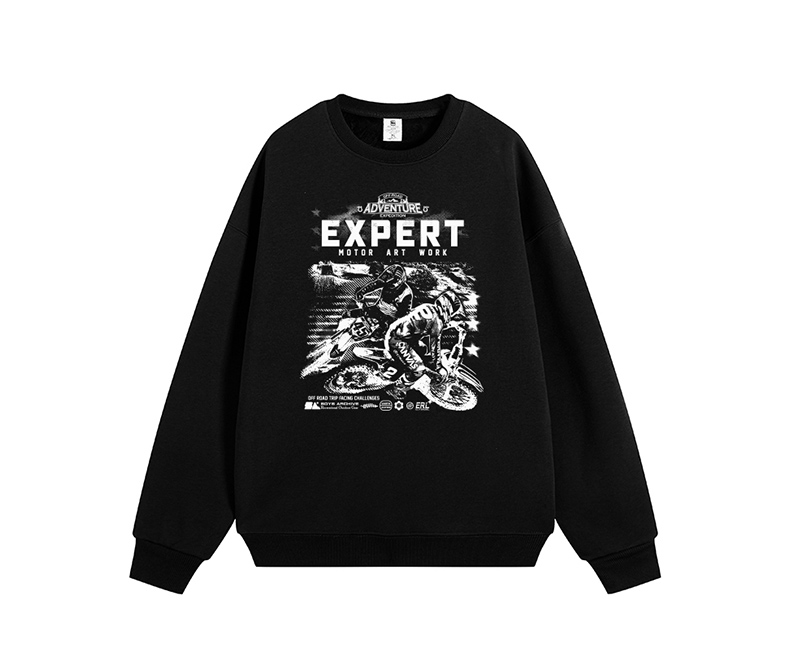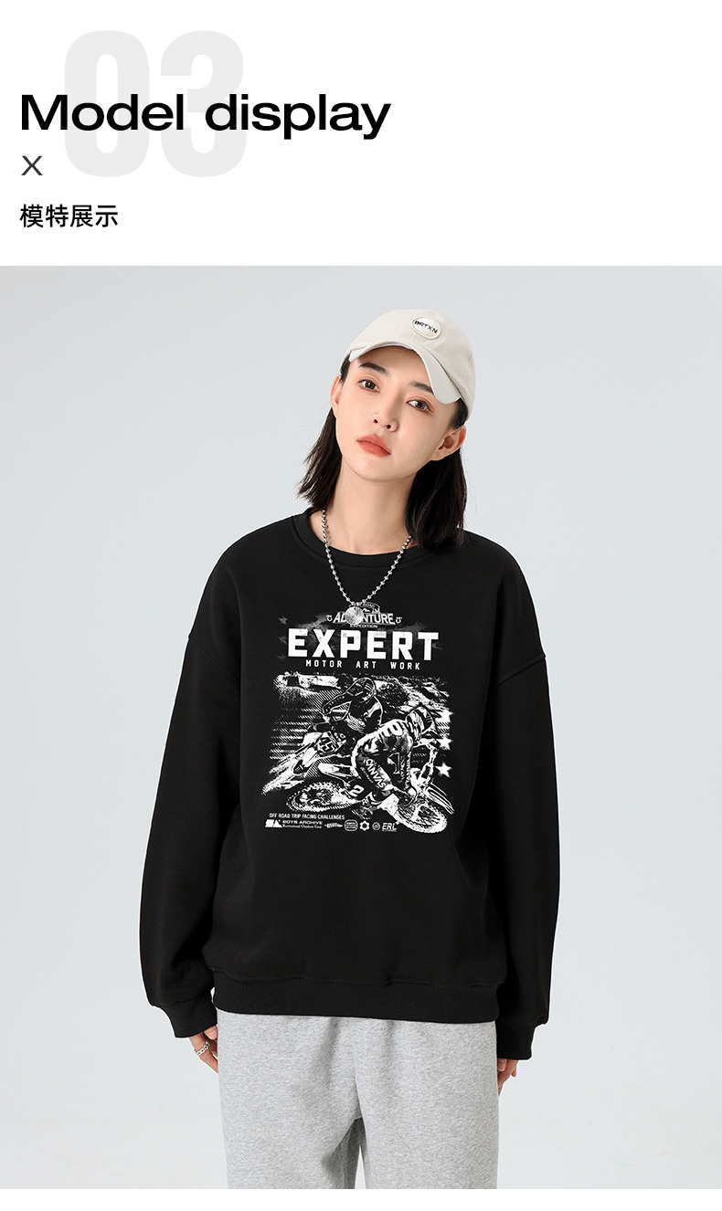 自由基地秋冬新品摩托赛事图设计印花长袖抓绒圆领套头卫衣加厚款 NMT-2186