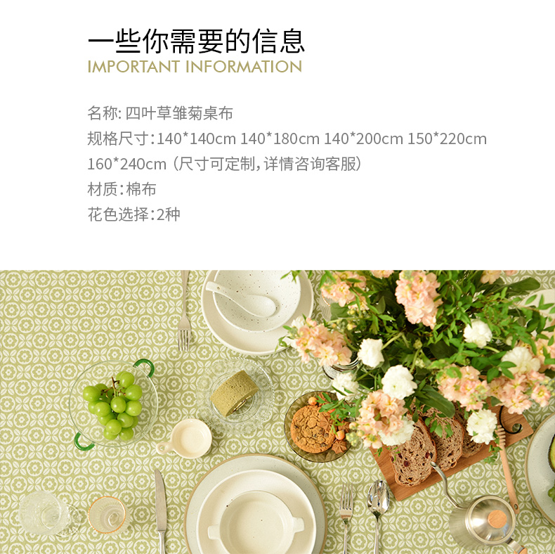 四叶草雏菊桌布客厅电视柜布艺餐桌布