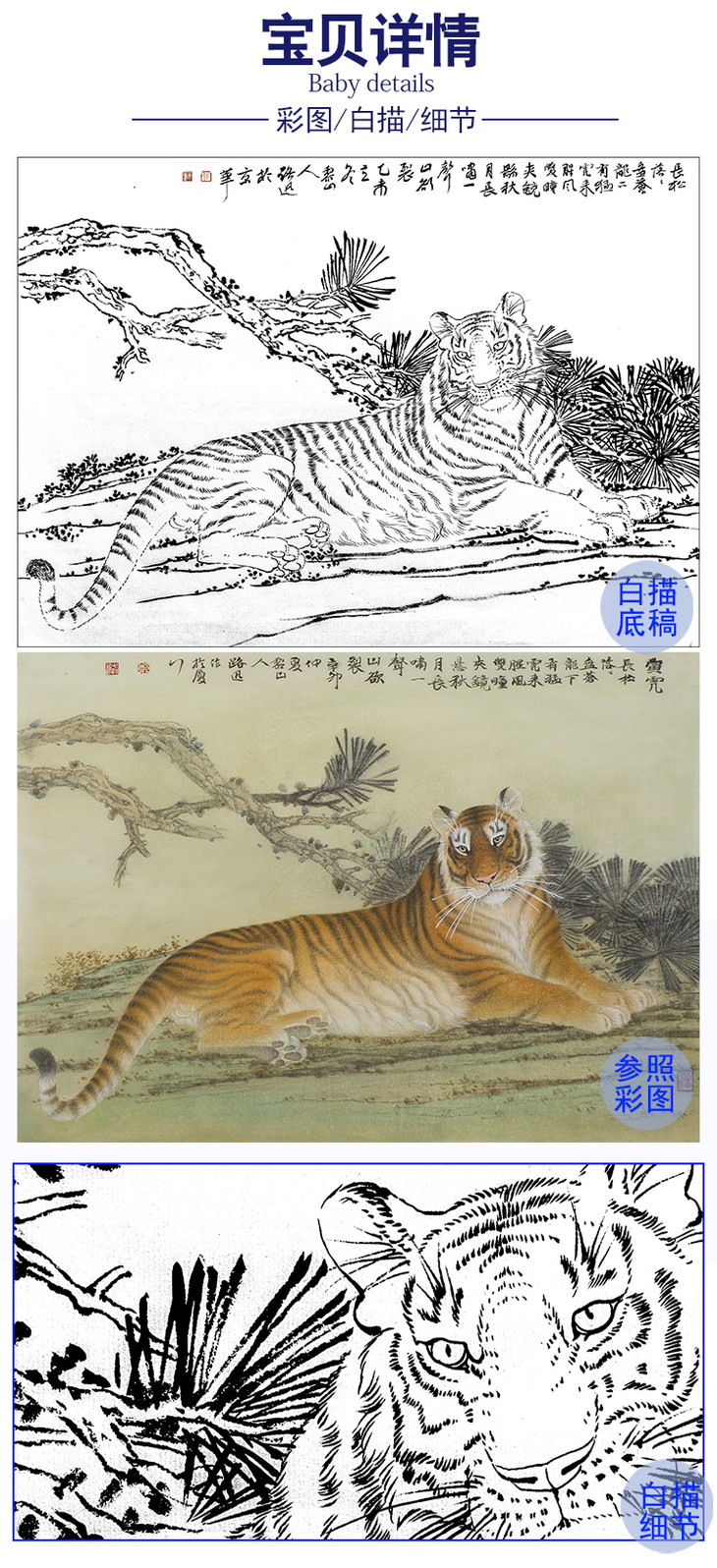 工笔动物白描底稿-郑路迅作品十二生肖-虎-斗方小品册页-LX03