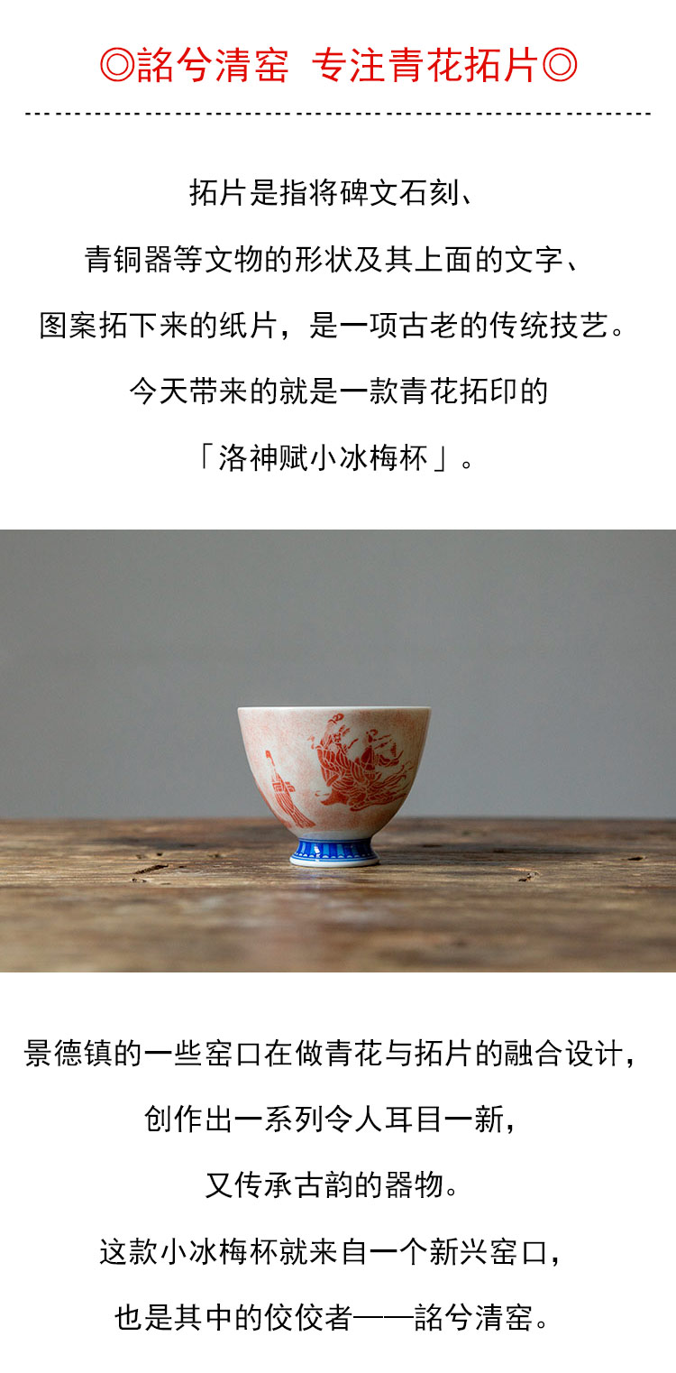 茶香记 詺兮清窑洛神赋小冰梅杯60ml纸本拓印洛神赋图小品杯茶杯