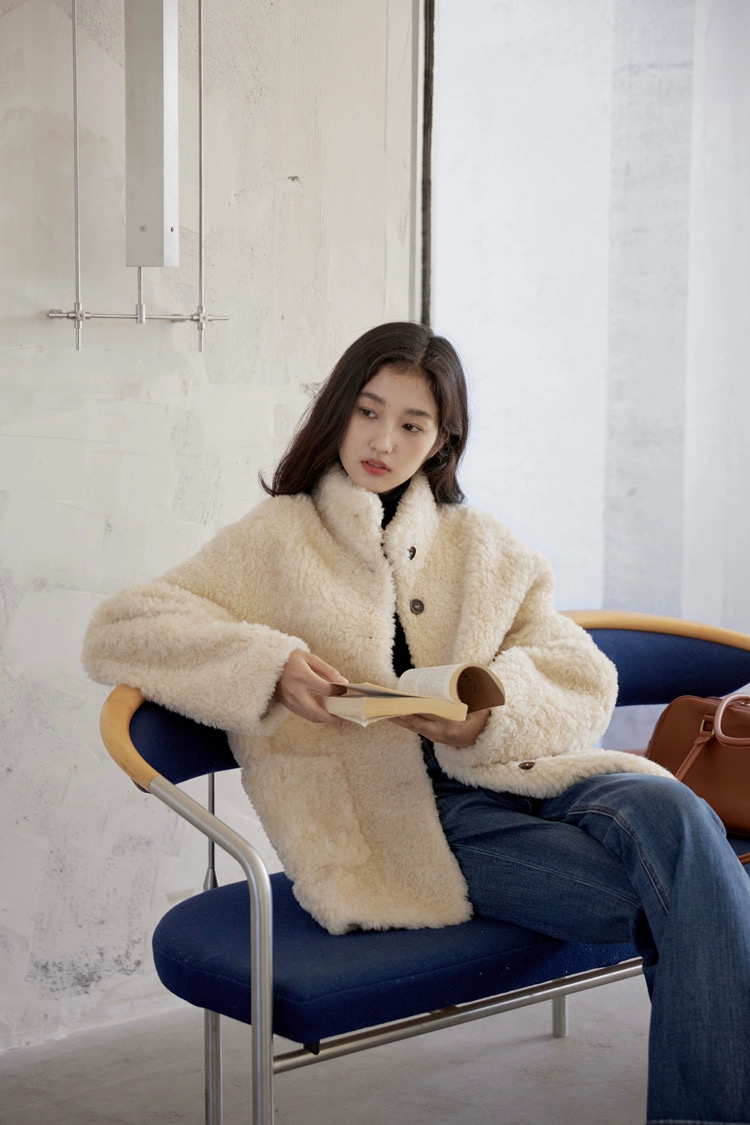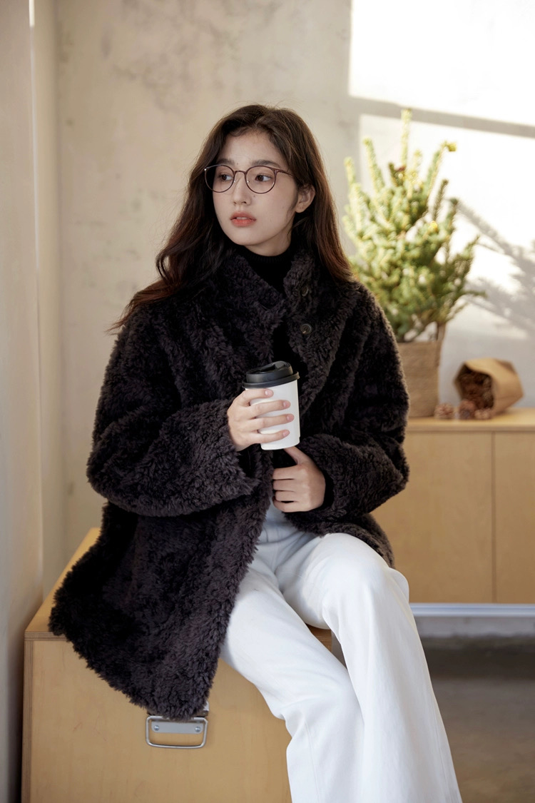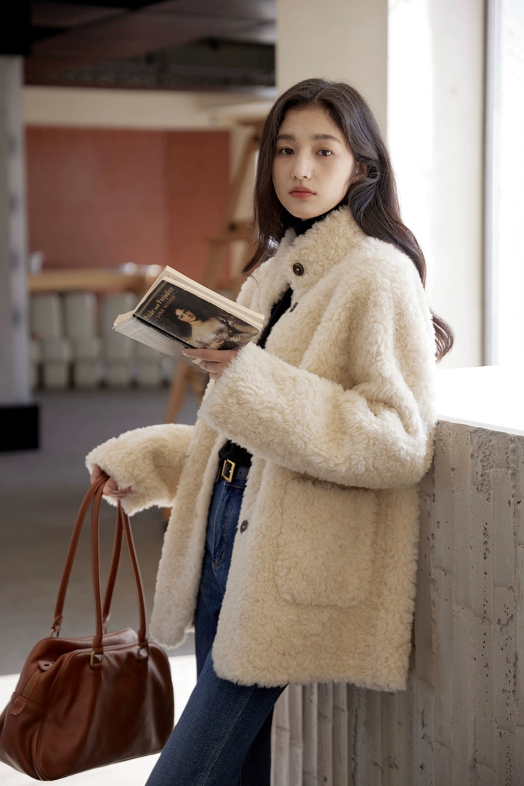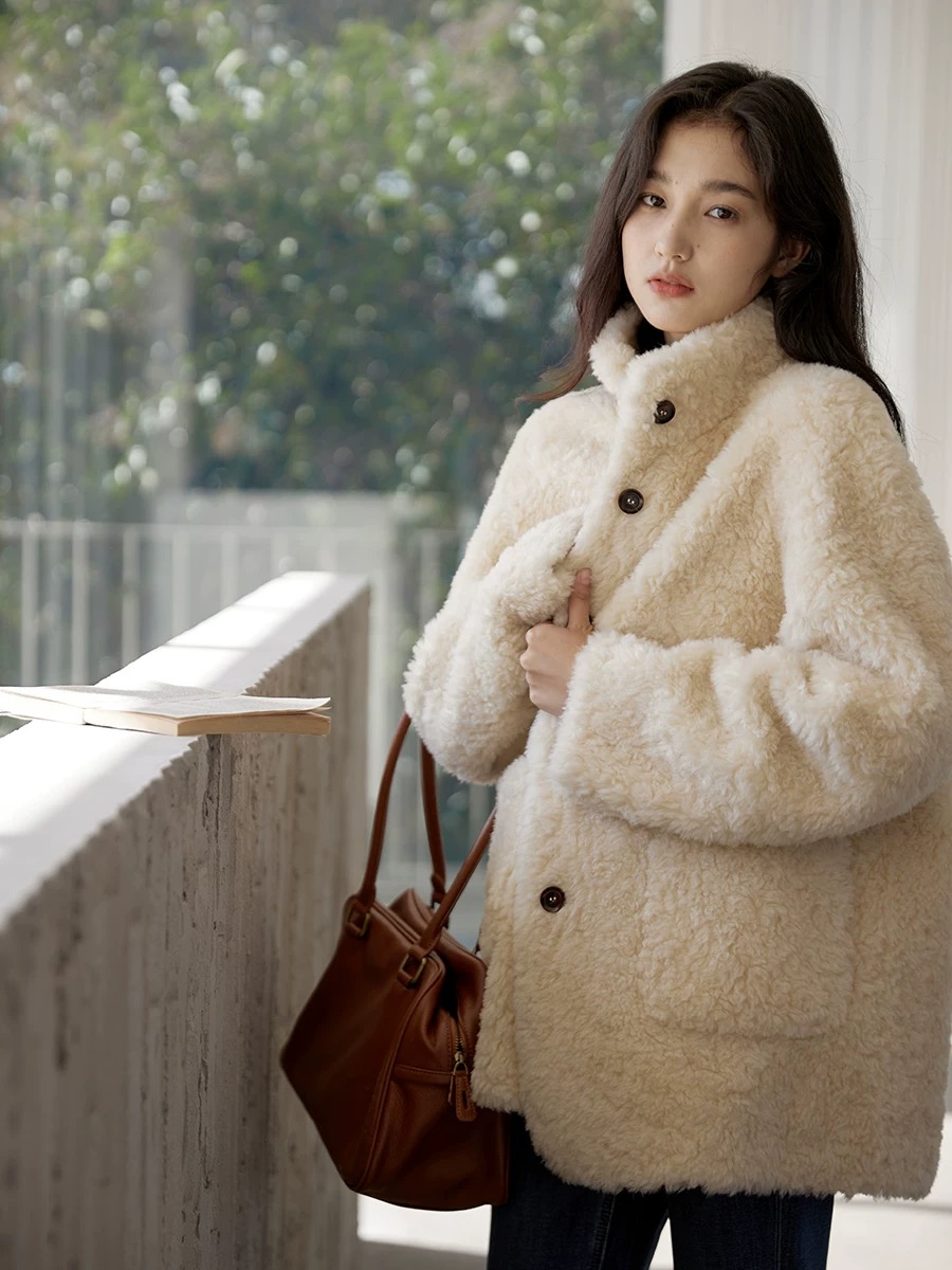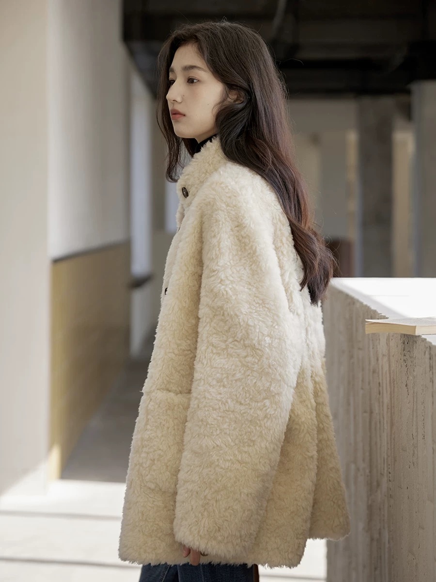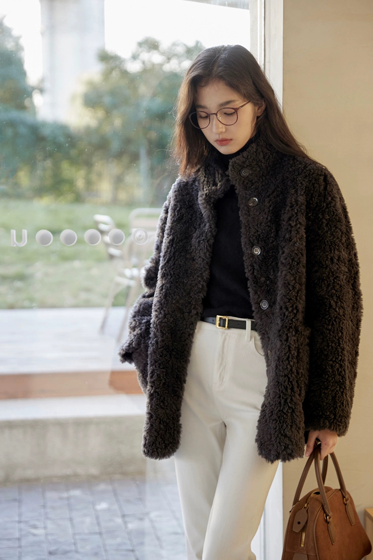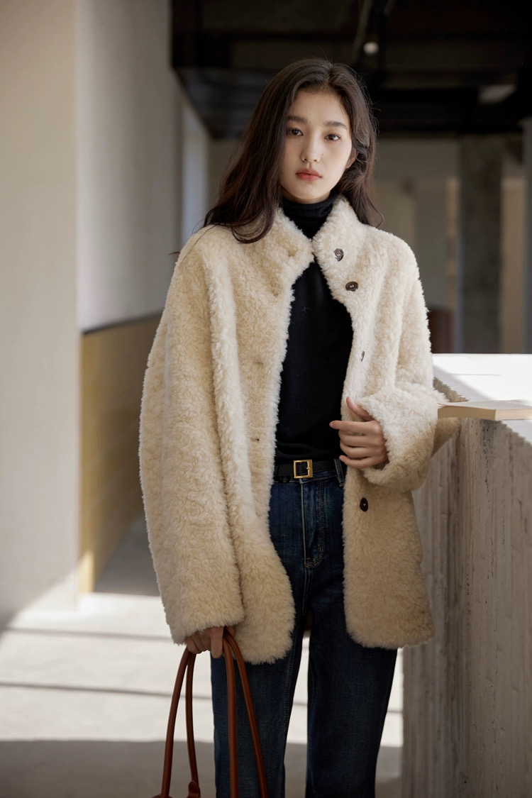 爆款3-5天发货!冬季轻盈高保暖立领单排扣羊羔毛高质感毛毛外套JS3693201