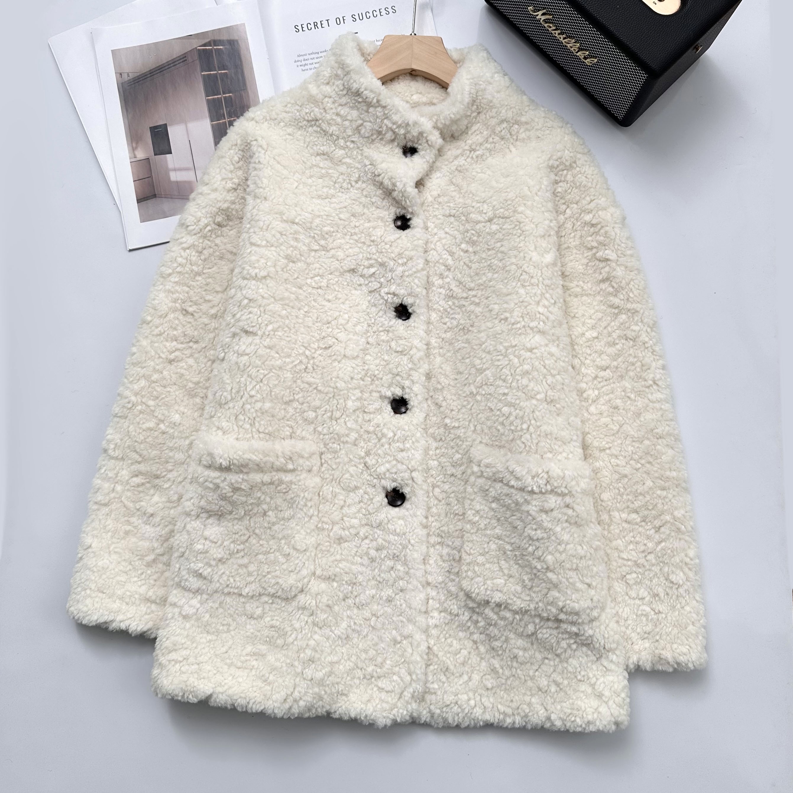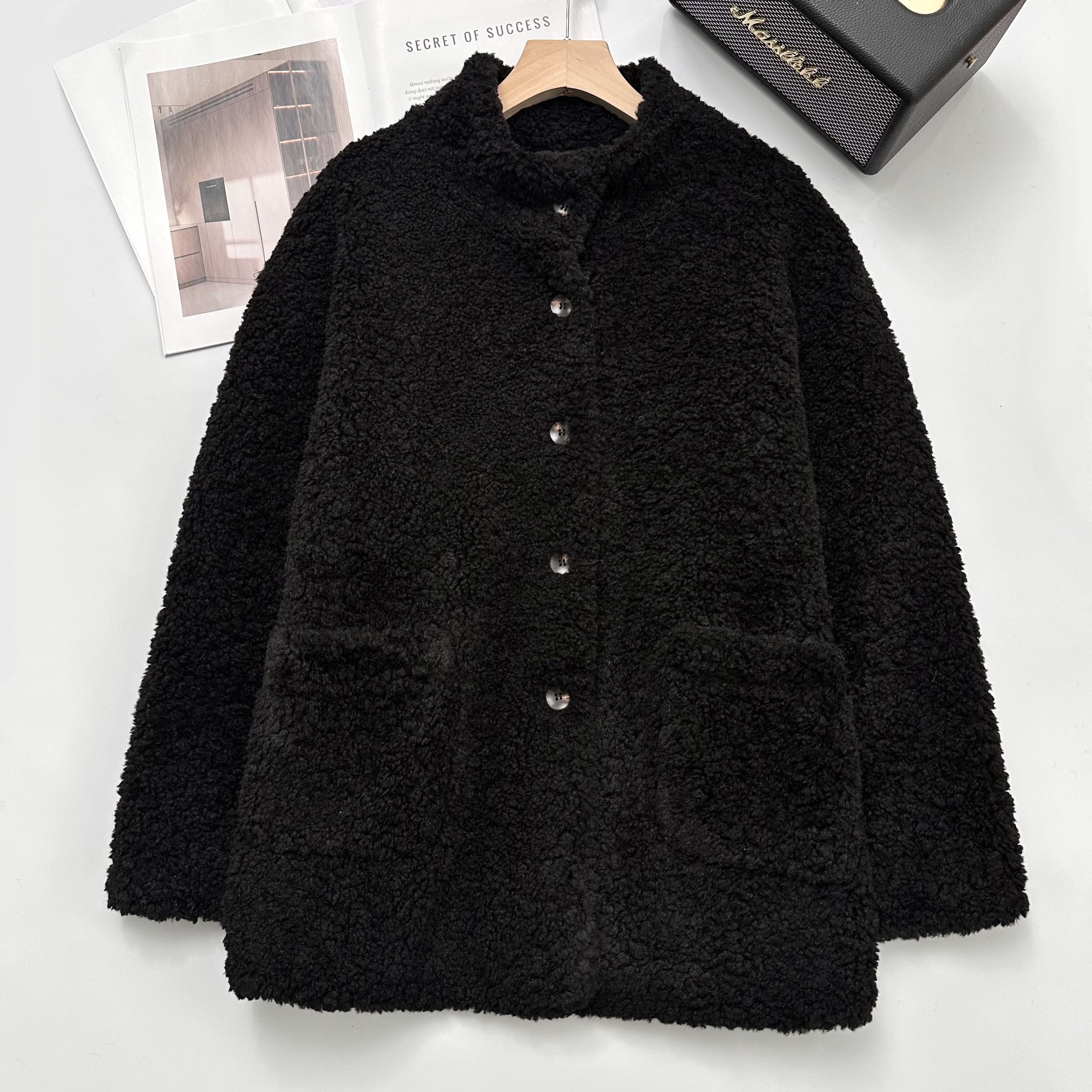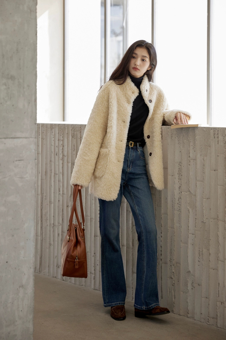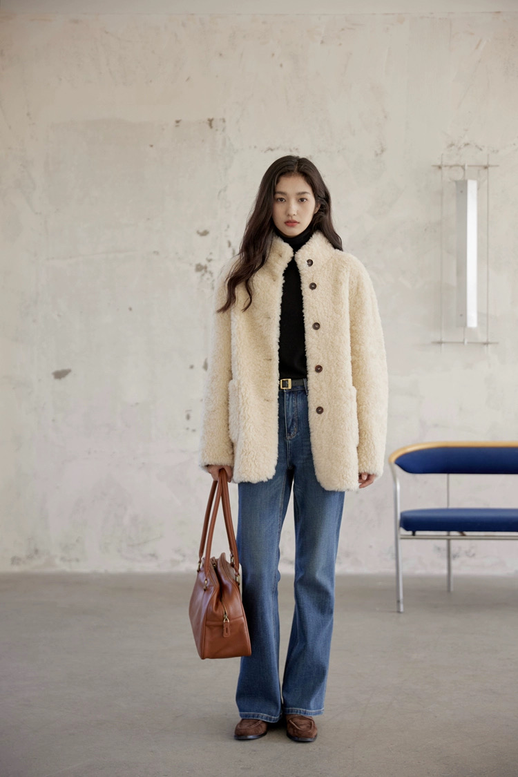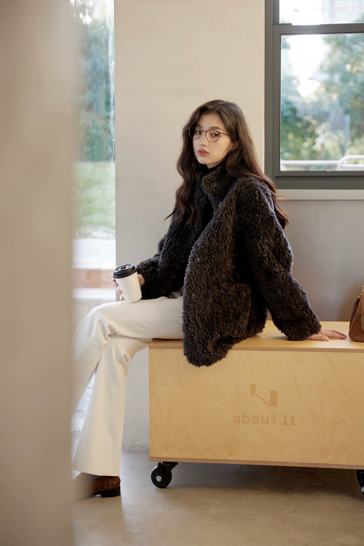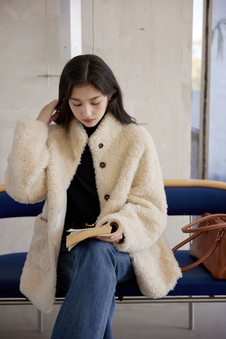 爆款3-5天发货!冬季轻盈高保暖立领单排扣羊羔毛高质感毛毛外套JS3693201