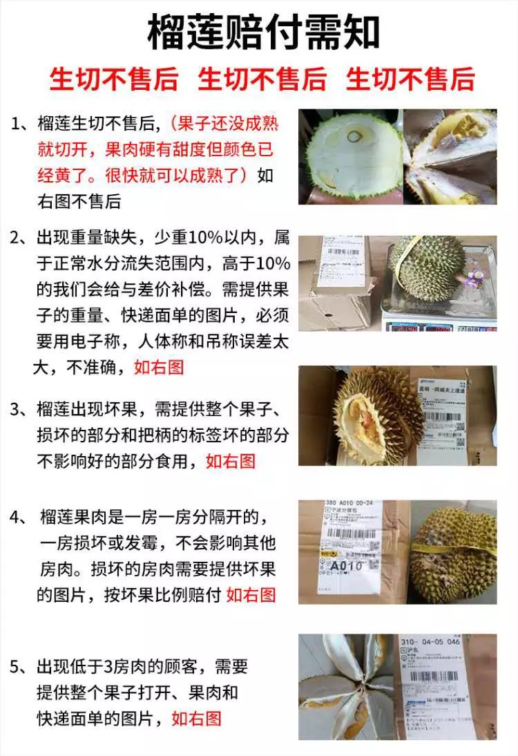 售后:。生劈不售后。坏果坏几房赔付几房。坏果签收24小时内面单合拍。