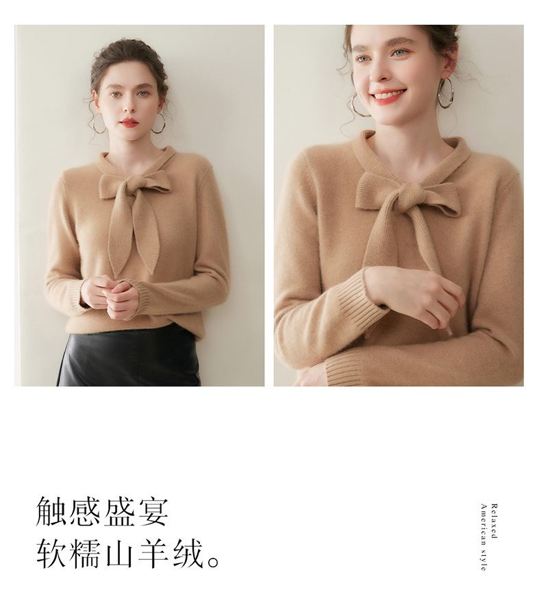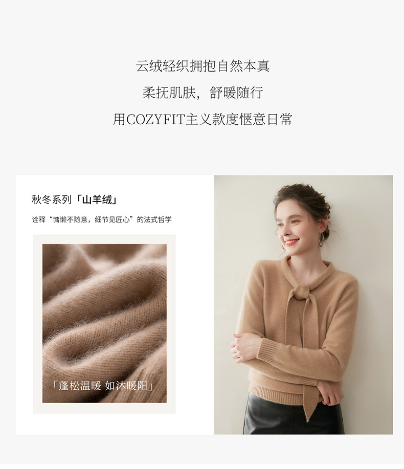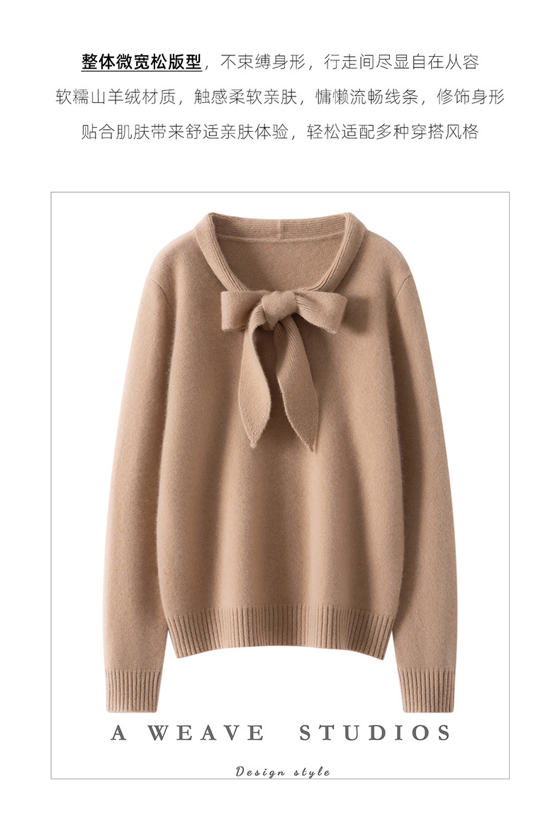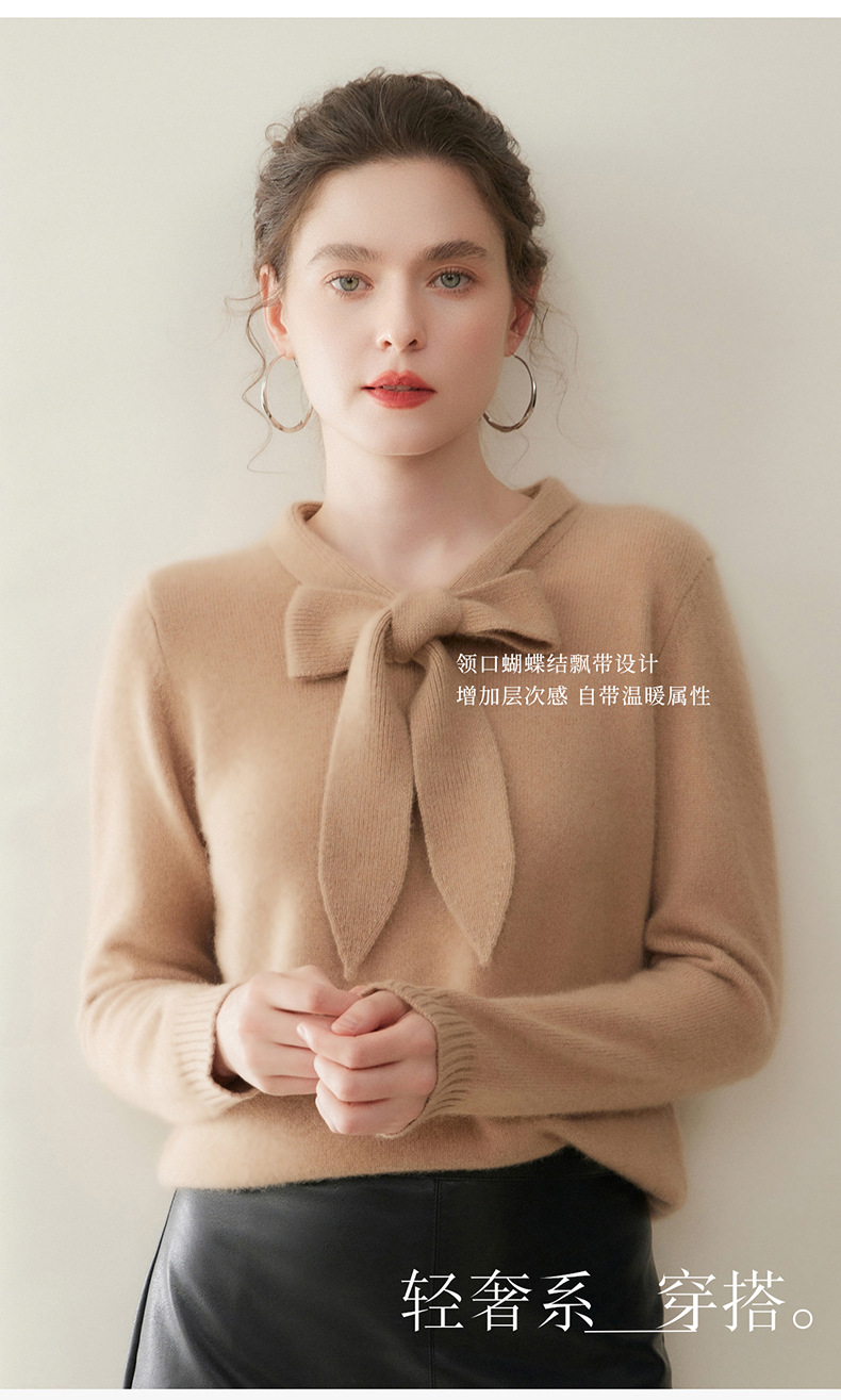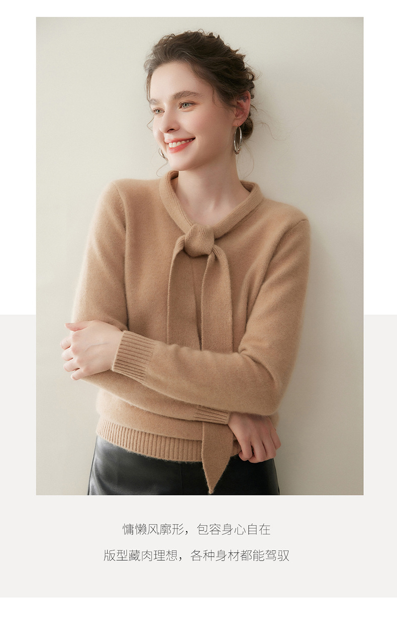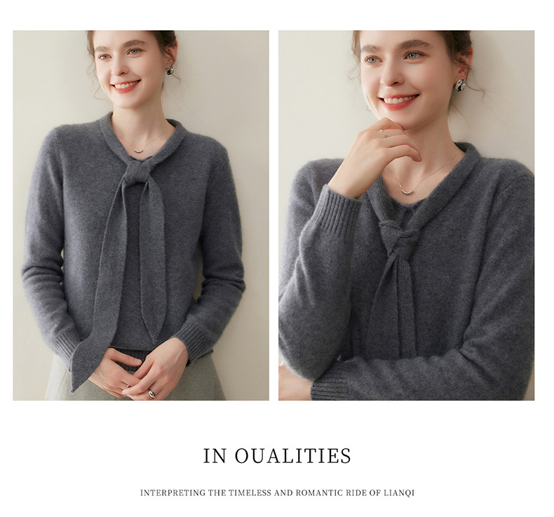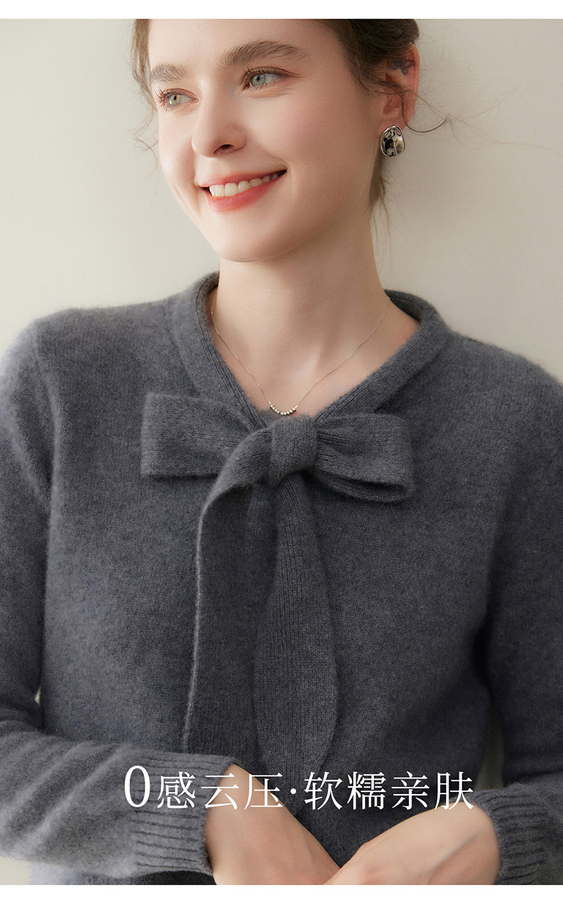 「高货rig」全新升级【铂金会员441/天猫599/差价158】(10308)洛诗琳蝴蝶结系带羊绒衫2024秋冬高级感百搭针织毛衣女10308