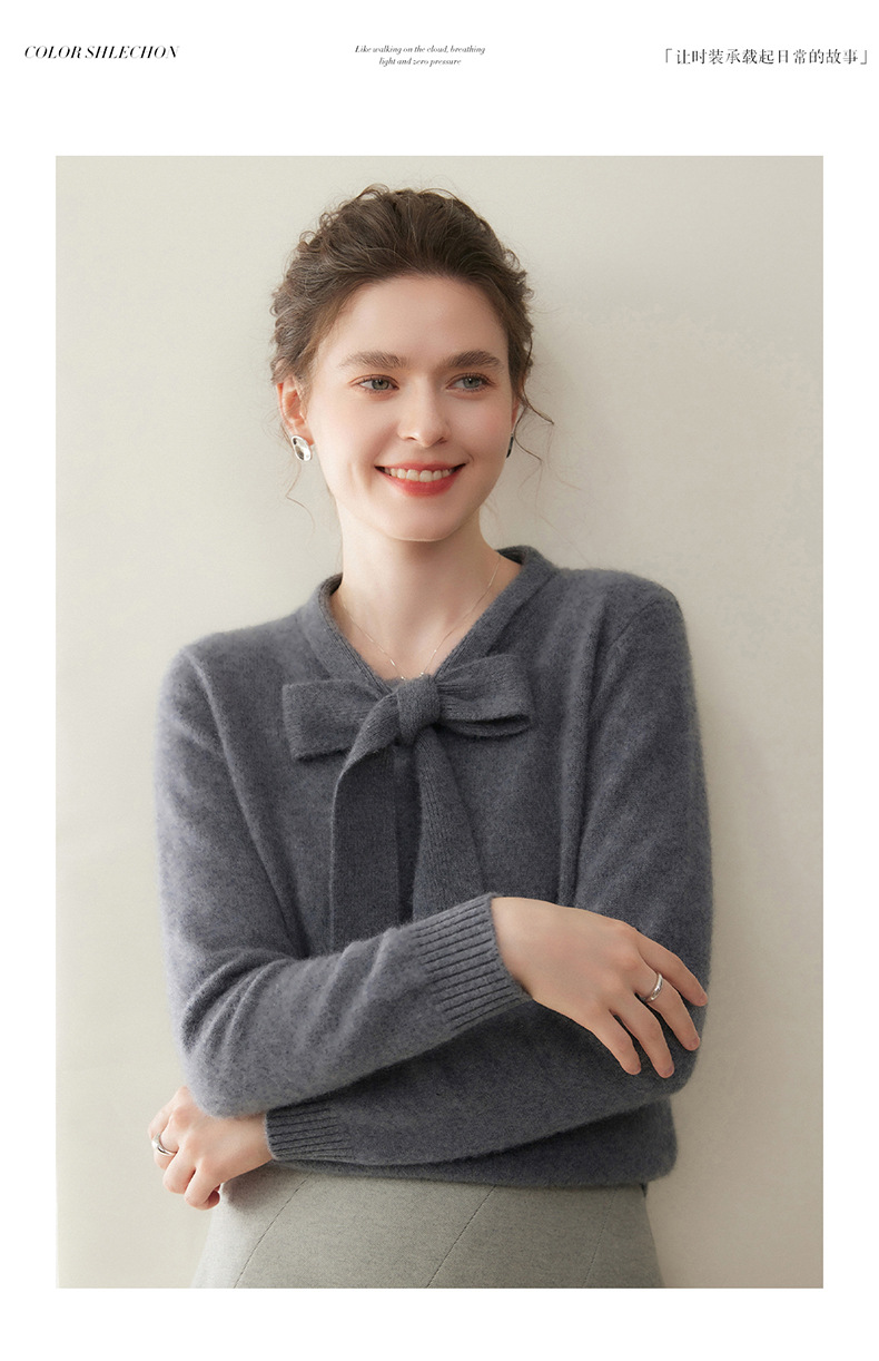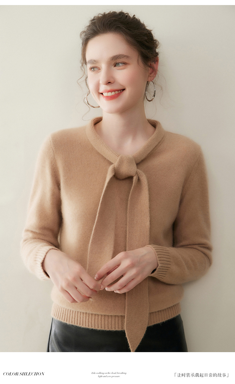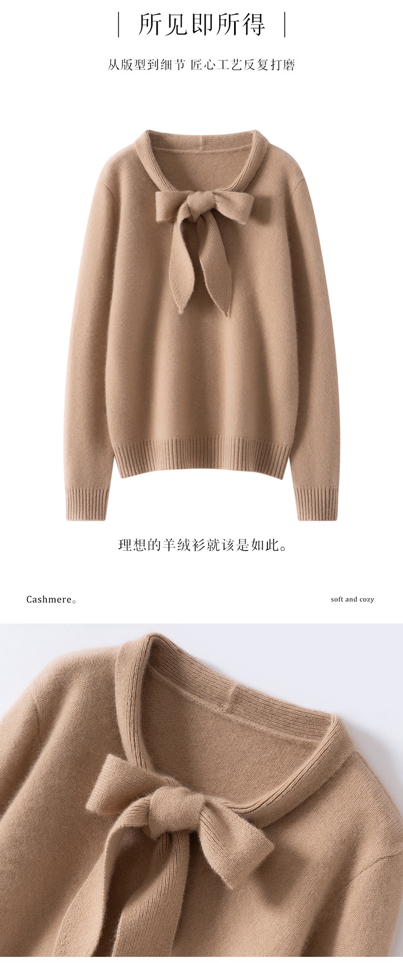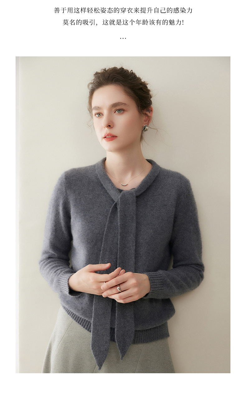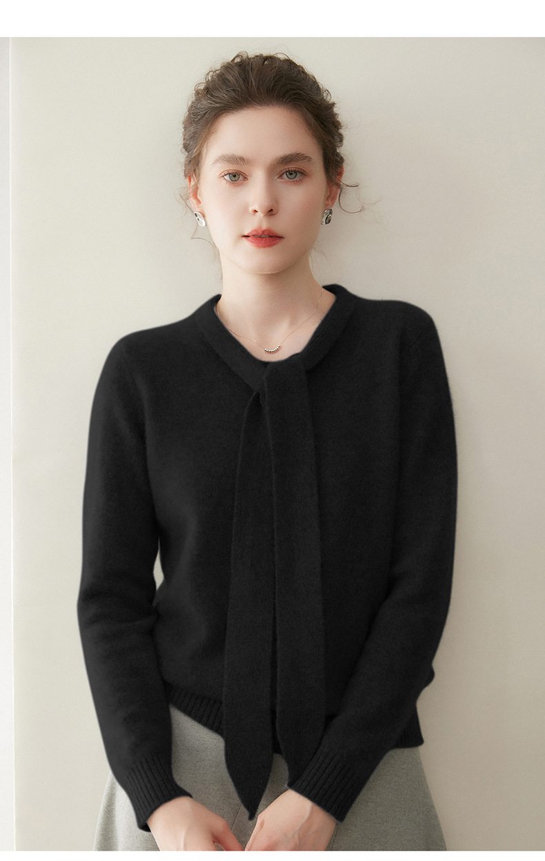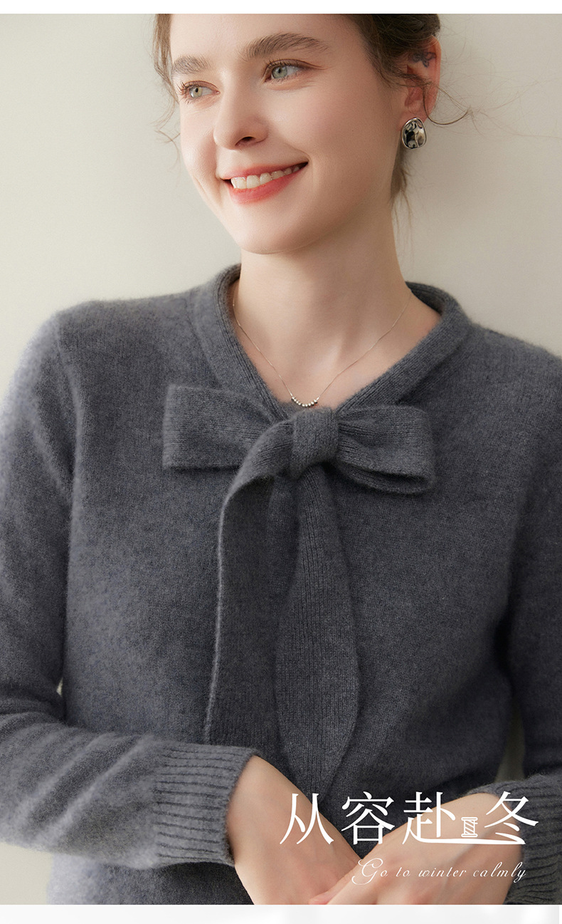 「高货rig」全新升级【铂金会员441/天猫599/差价158】(10308)洛诗琳蝴蝶结系带羊绒衫2024秋冬高级感百搭针织毛衣女10308