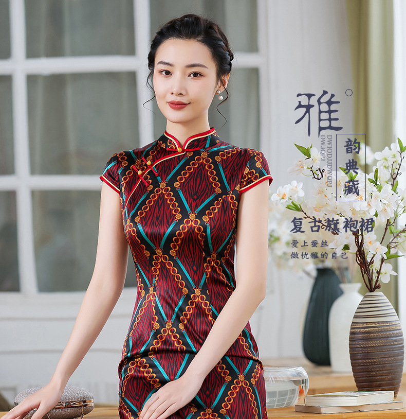 上海旗袍厂TZRY-C2027复古改良时尚旗袍桑蚕丝气质修身高级