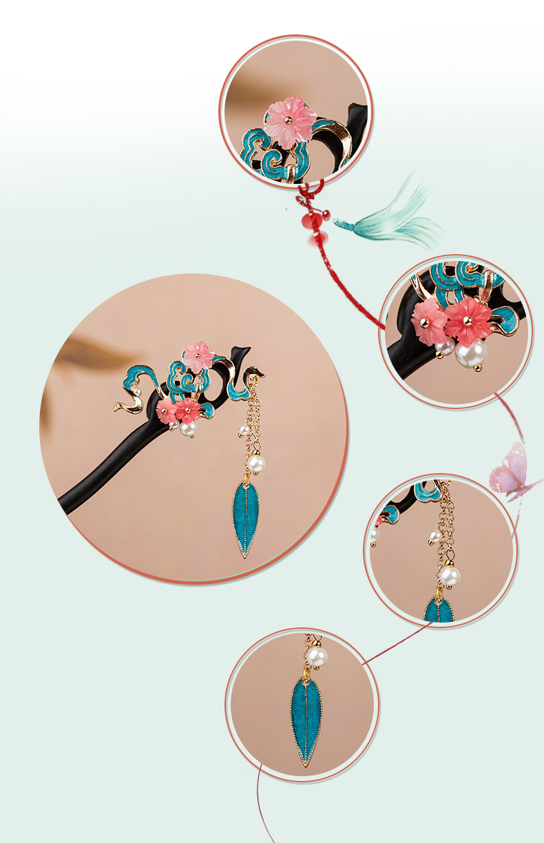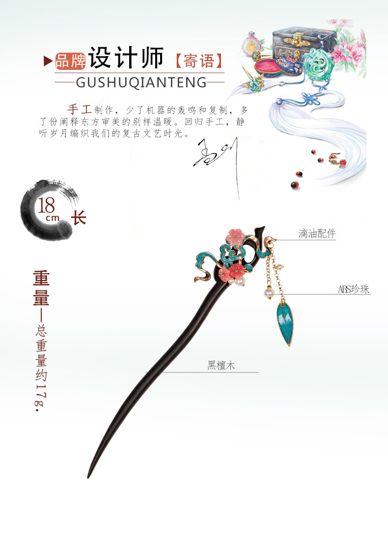JGL古风黑檀木发簪流苏旗袍发钗日常发饰气质盘发簪子现在简约木簪
