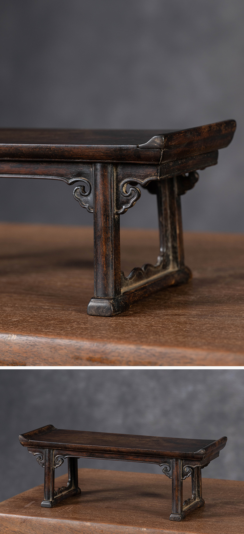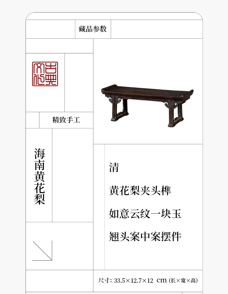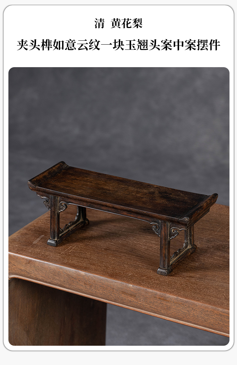 清 黄花梨夹头榫如意云纹一块玉翘头案中案摆件