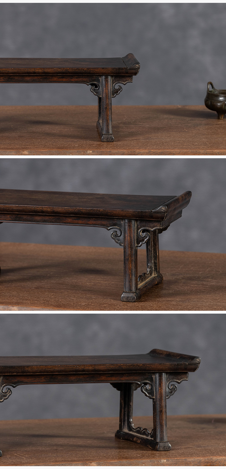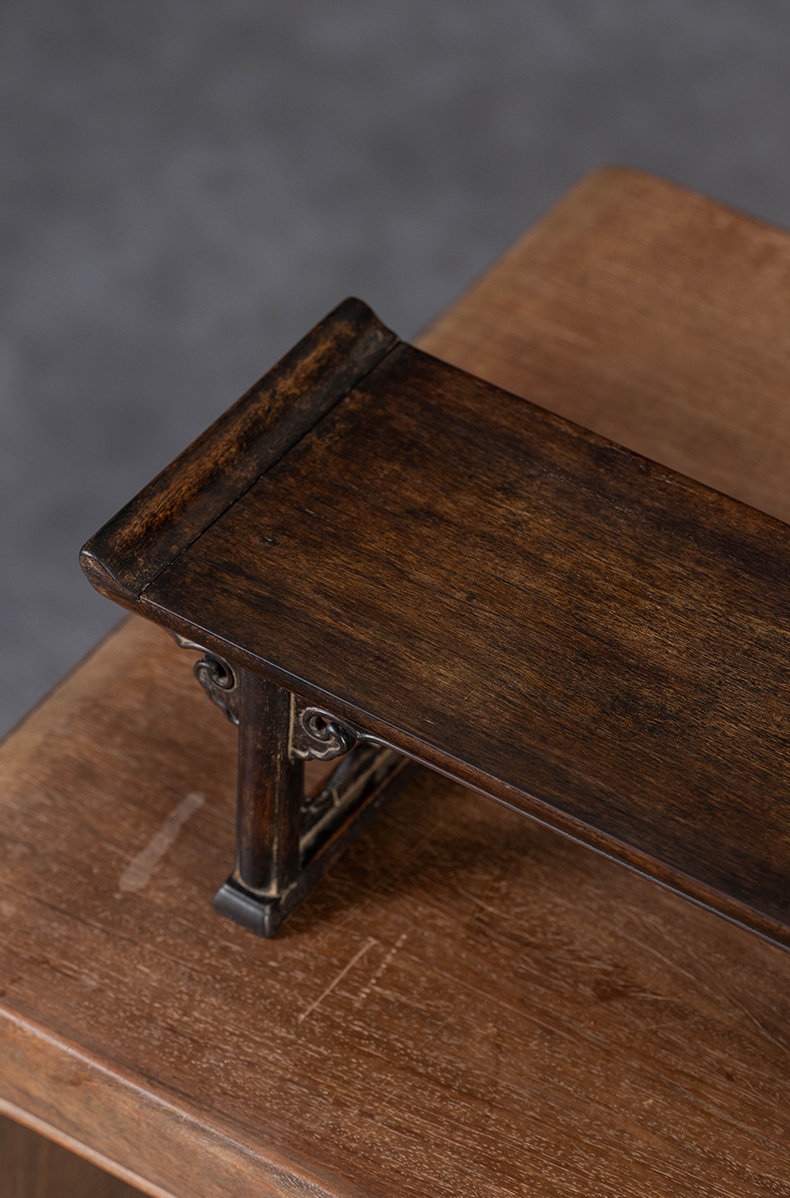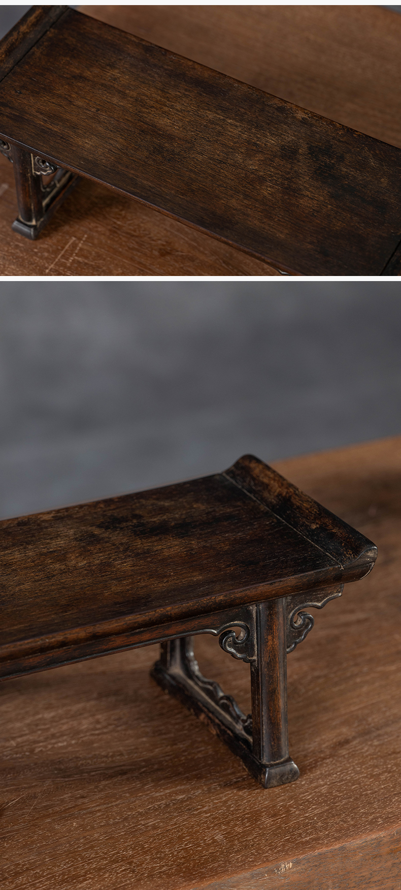 清 黄花梨夹头榫如意云纹一块玉翘头案中案摆件