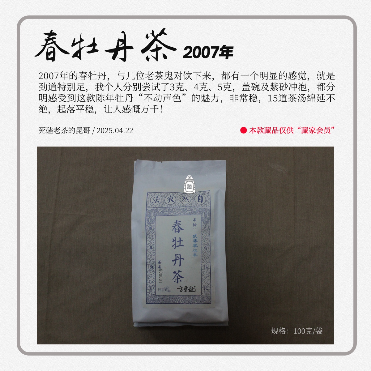 方守龙老茶仓 2007春牡丹茶 劲道足久久喝一次[官方旗舰正品直供]