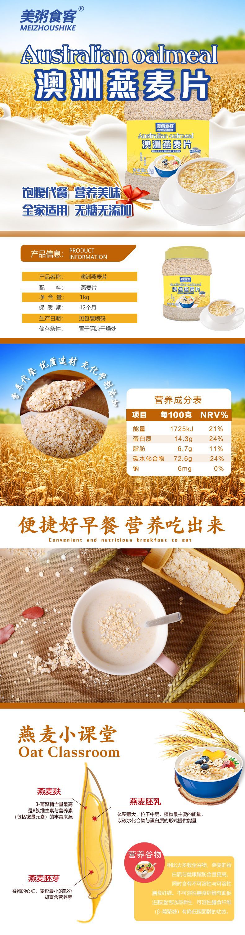 【饱腹代餐 营养美味 全家适用无糖无添加】美粥食客桶装 即食澳洲燕麦片1000g 牛奶伴侣早餐 1kg便捷好早餐 营养吃出来-QQ