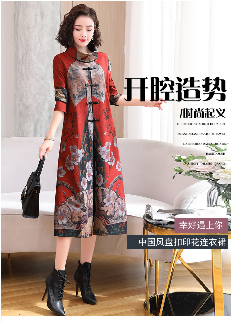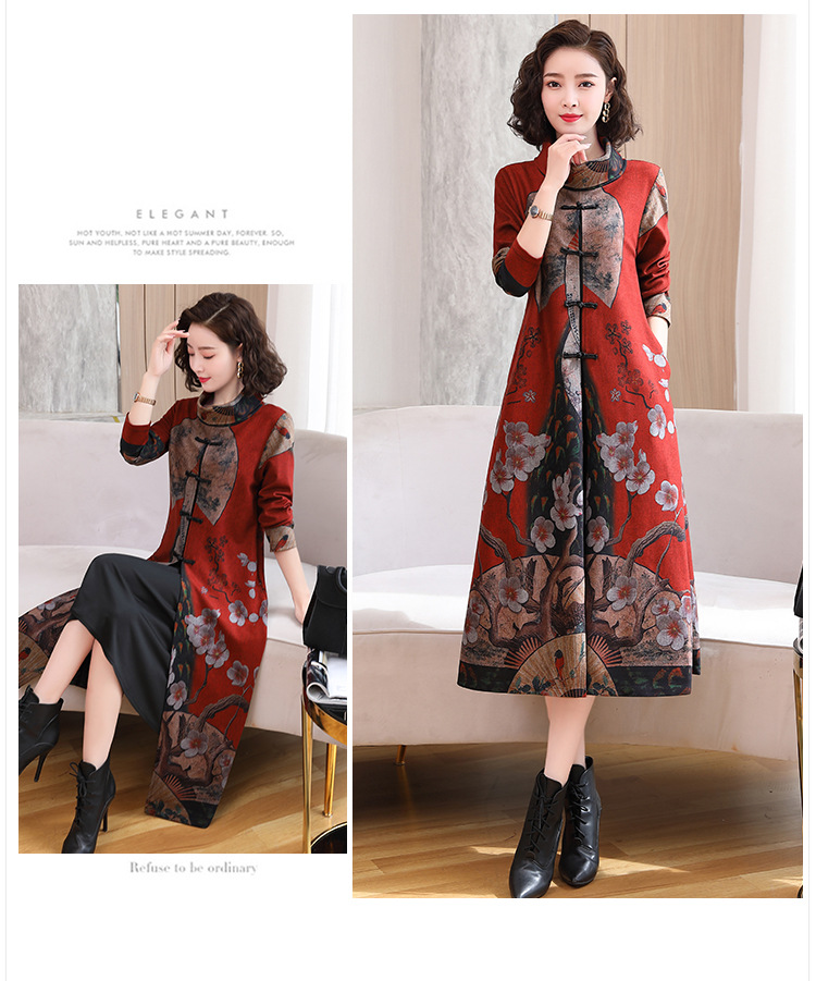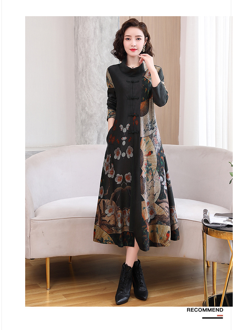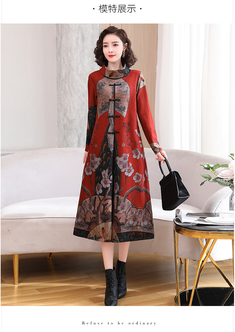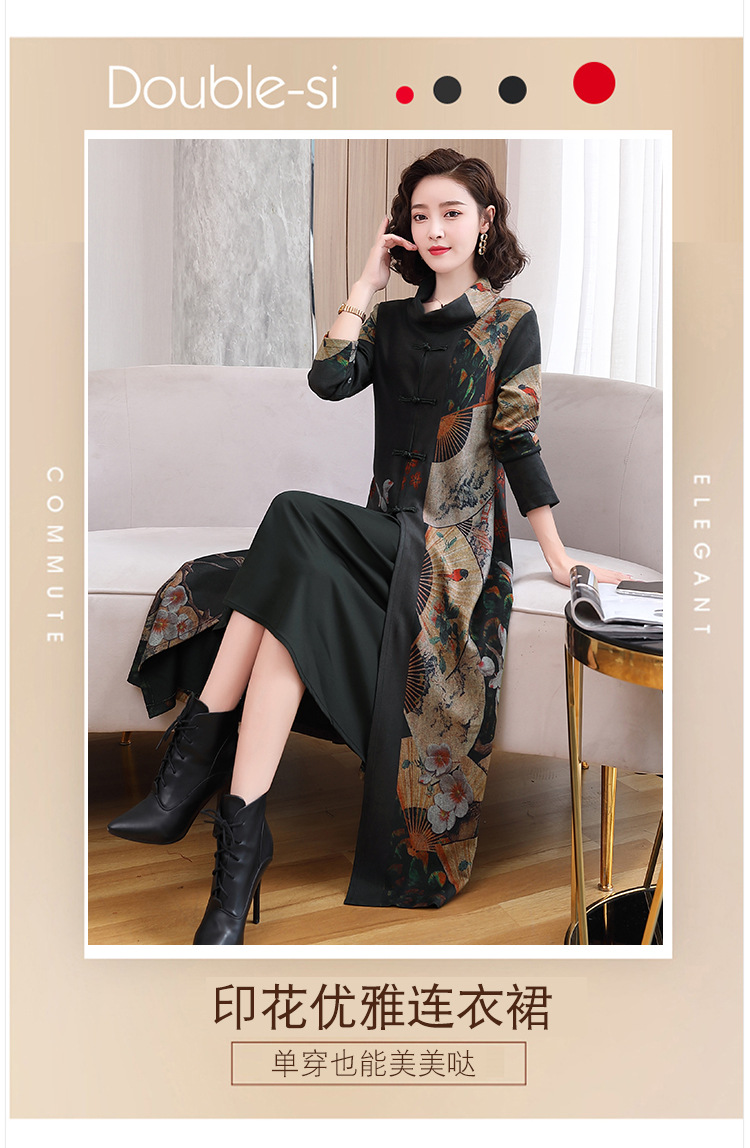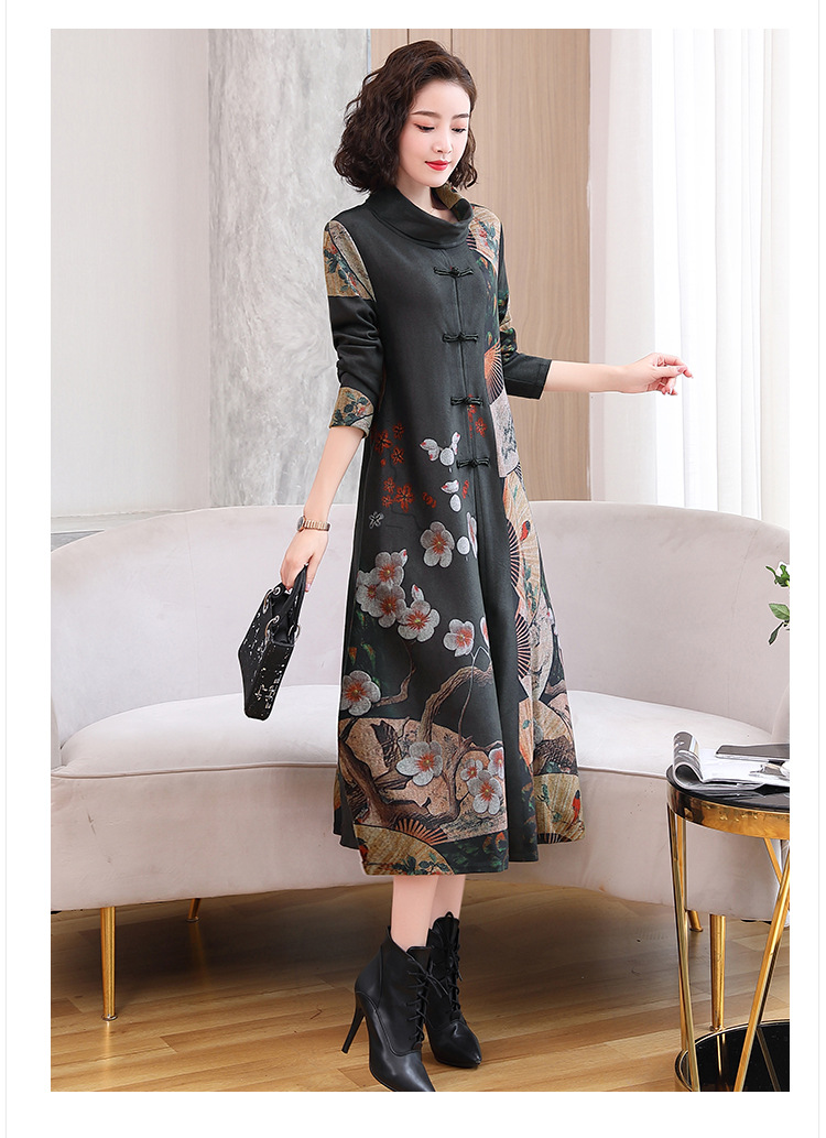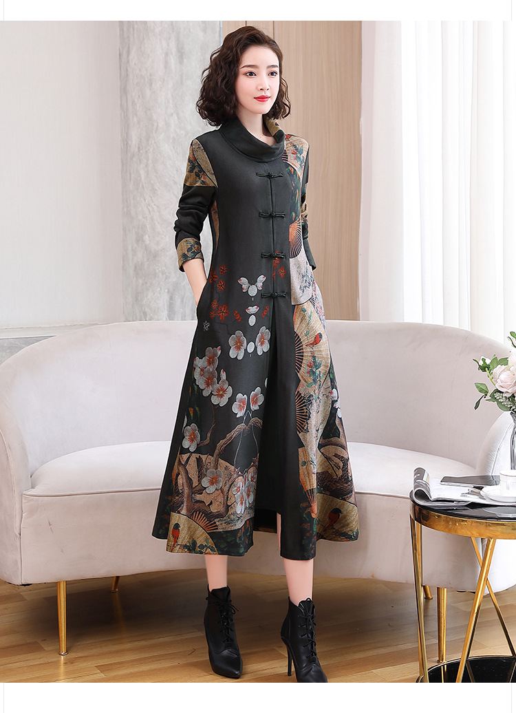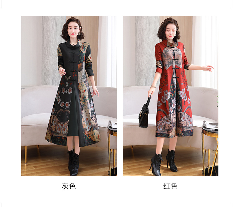 WZNH-YYG82590盘扣改良旗袍高领长袖连衣裙