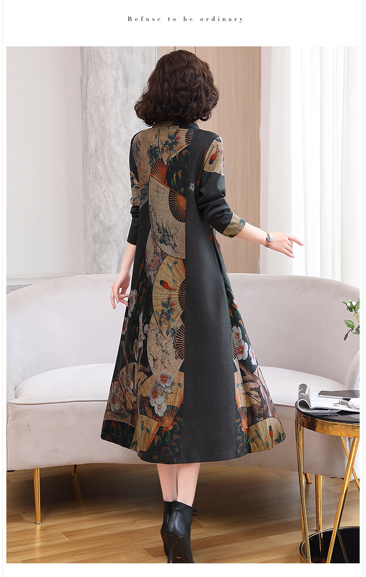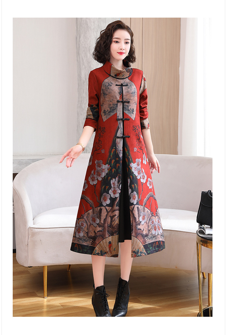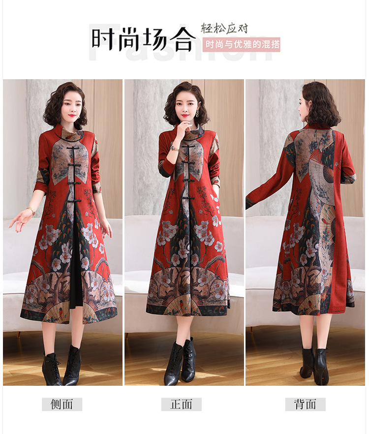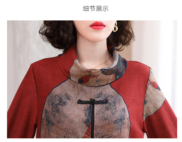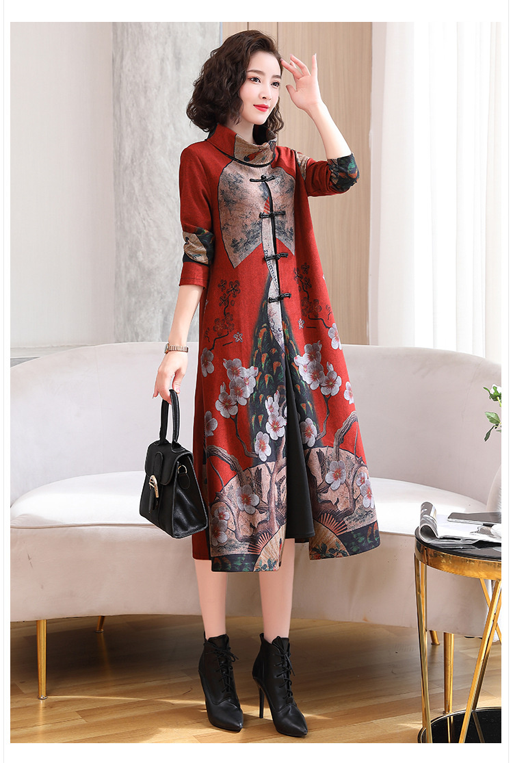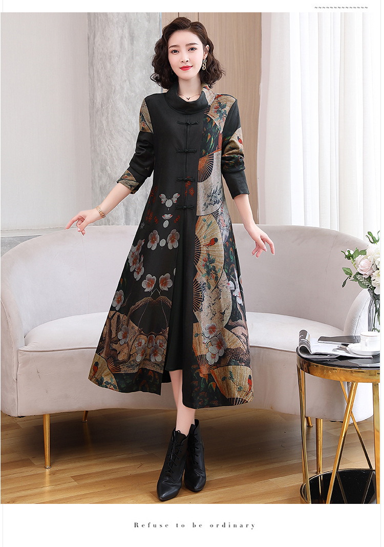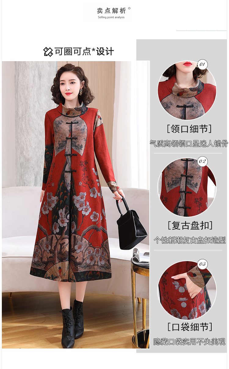 WZNH-YYG82590盘扣改良旗袍高领长袖连衣裙