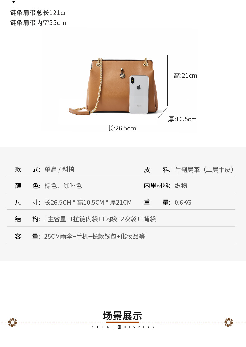 BX-BX619110302真皮2020新款复古国风链条单肩包大容量宫廷潮手提包