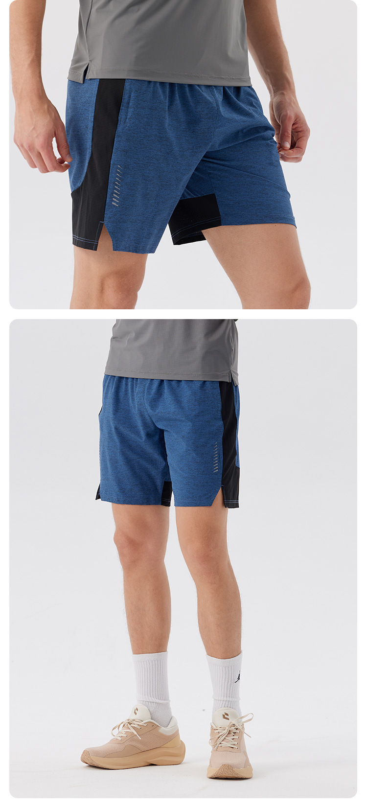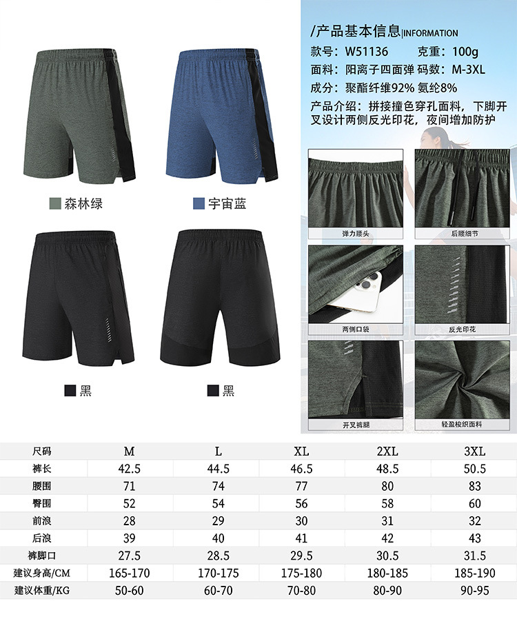 跃牌【跃LEAP-ACTIVE】 夏季户外跑步男士宽松拼接撞色速干健身训练五分短裤W51136