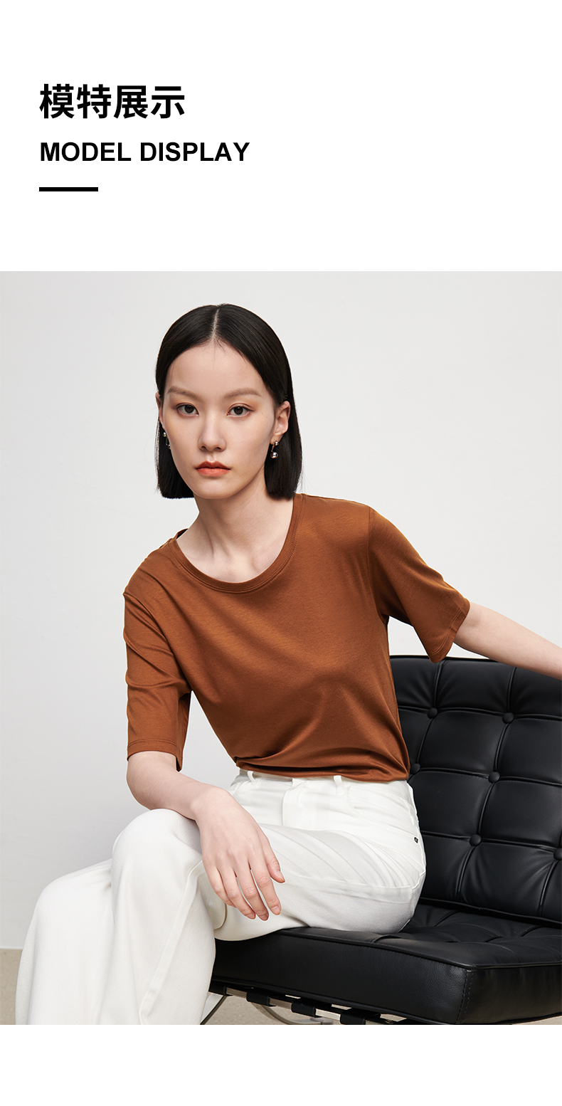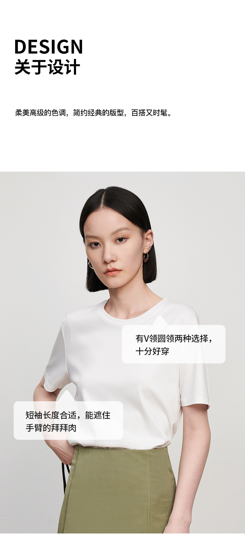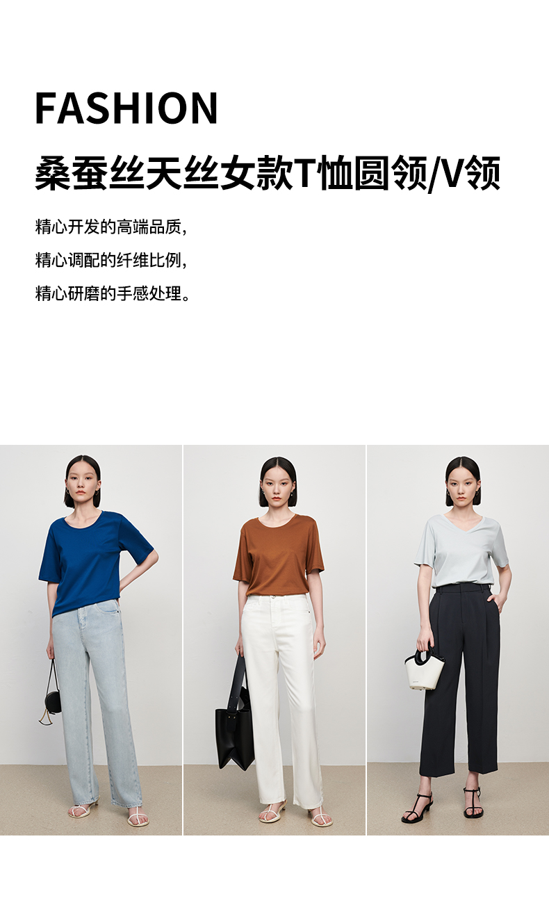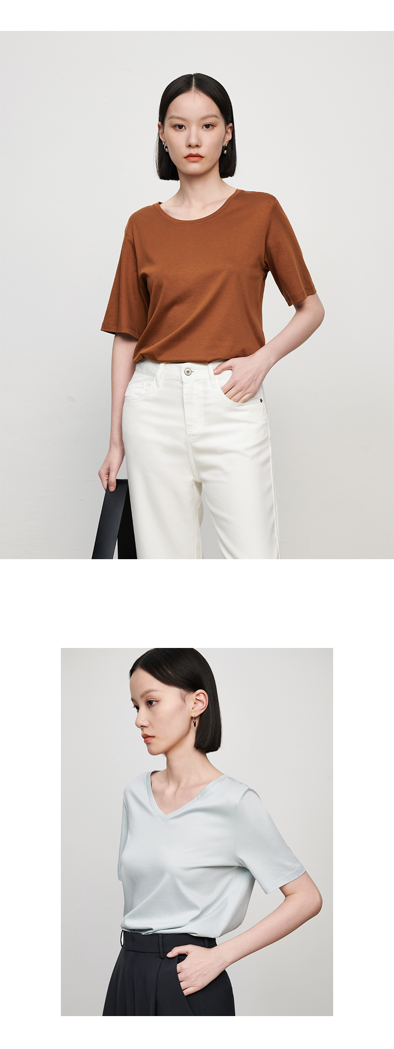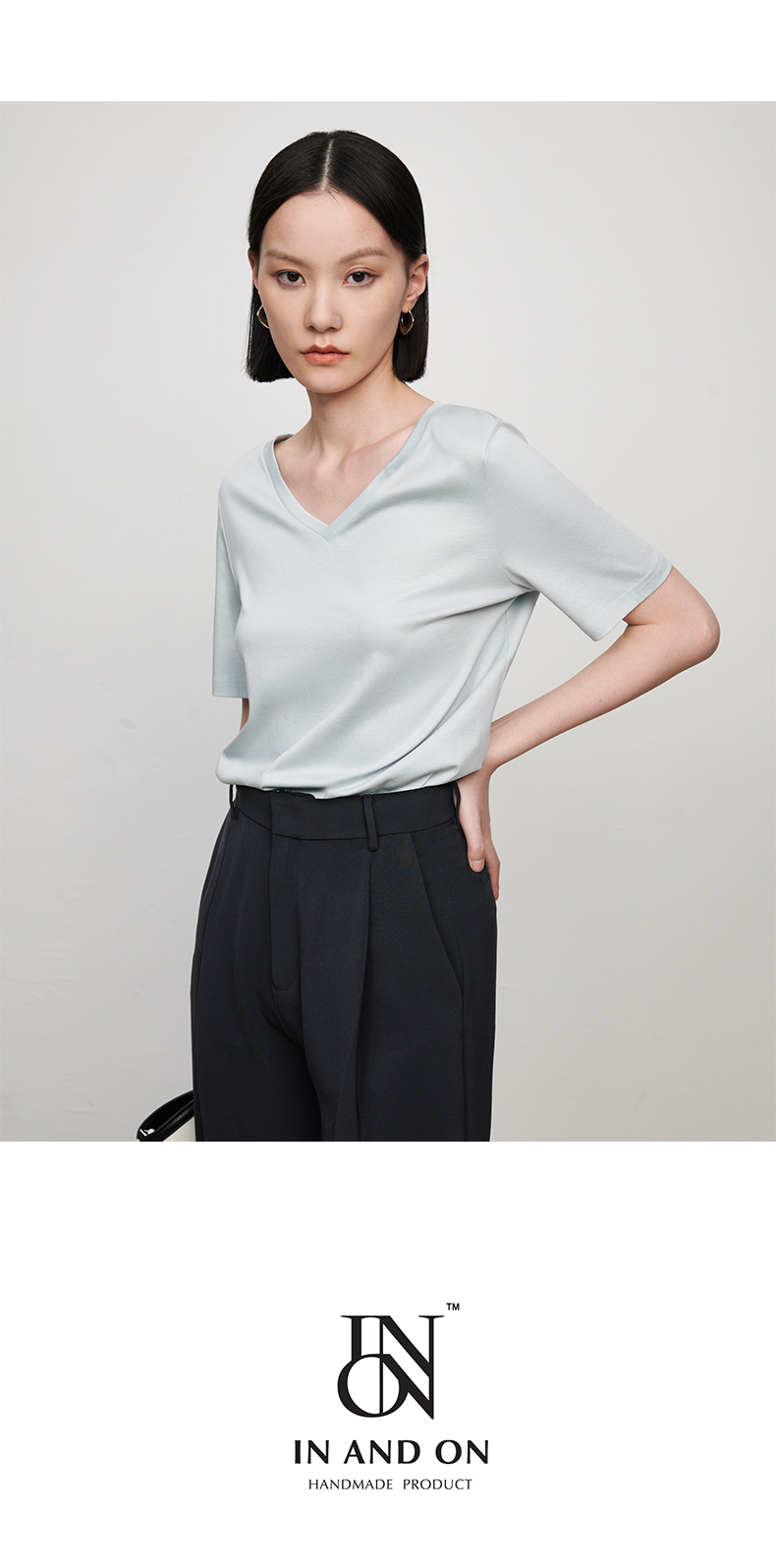 IN AND ON20509桑蚕丝V领t恤宽松女款莱赛尔天丝夏季新款真丝简约短袖
