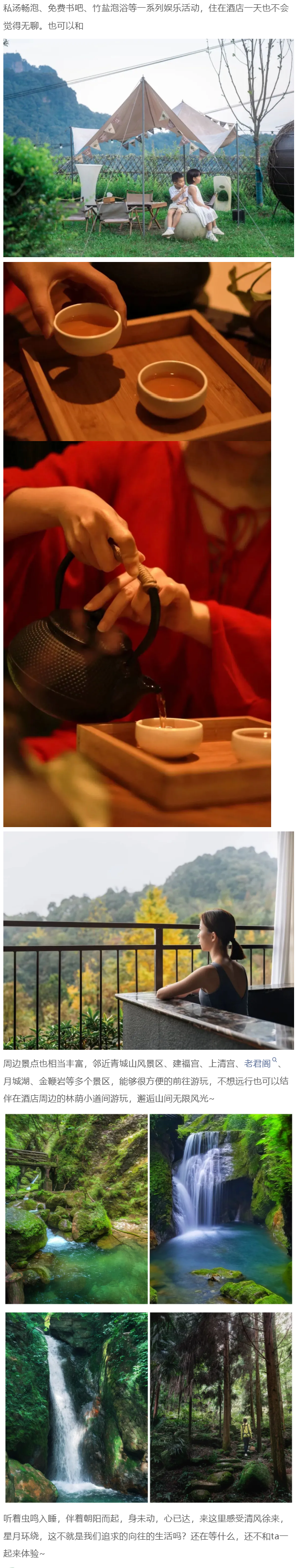 温馨提示 | 青城山十里山境度假酒店 四川省成都市都江堰市青城山镇沙坪村6组9号 028-87219300 |
