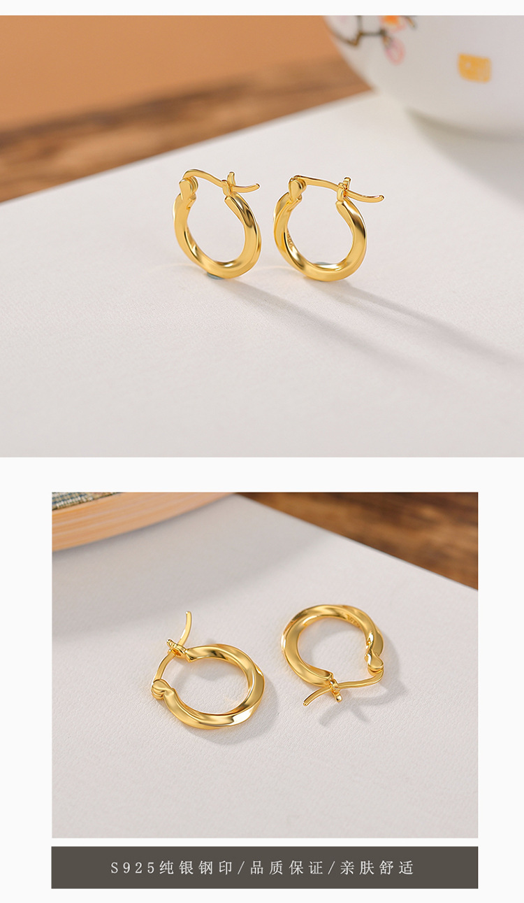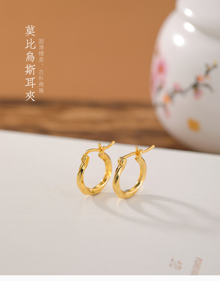 S925纯银镀金莫比乌斯,简约时尚中古风复古耳环CW-EJ00677