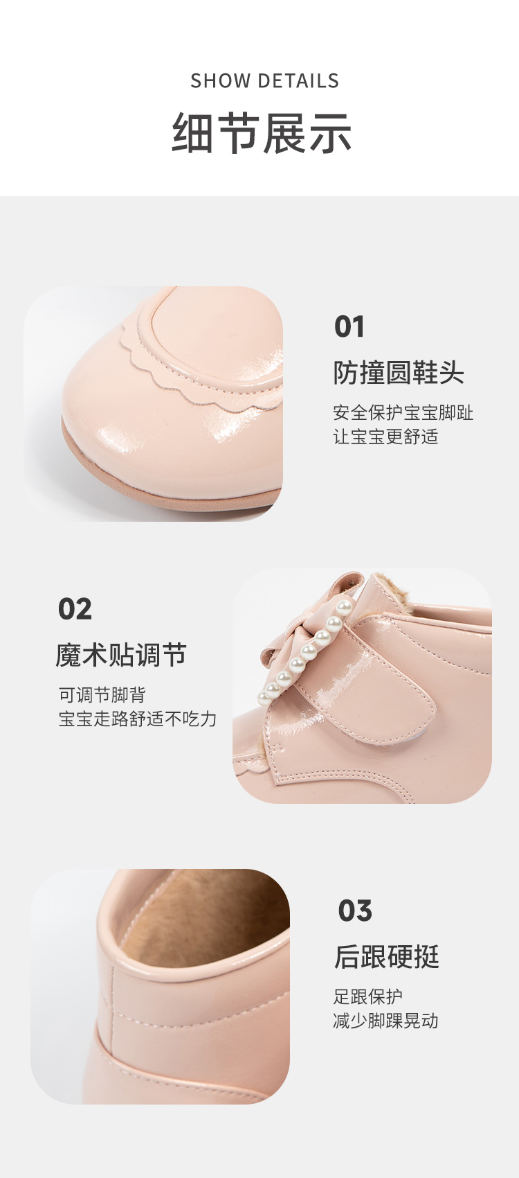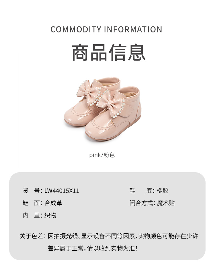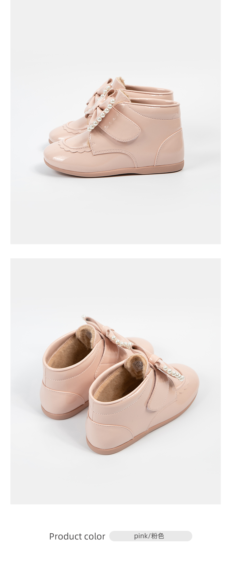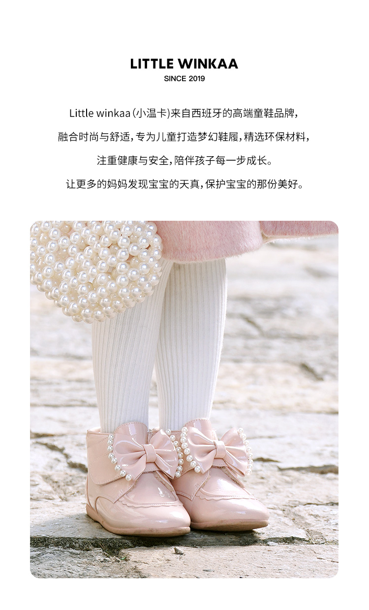 春节不打烊-西班牙LITTLE WINKAA珍珠蝴蝶结粉色公主风加绒女宝冬款亮面皮靴