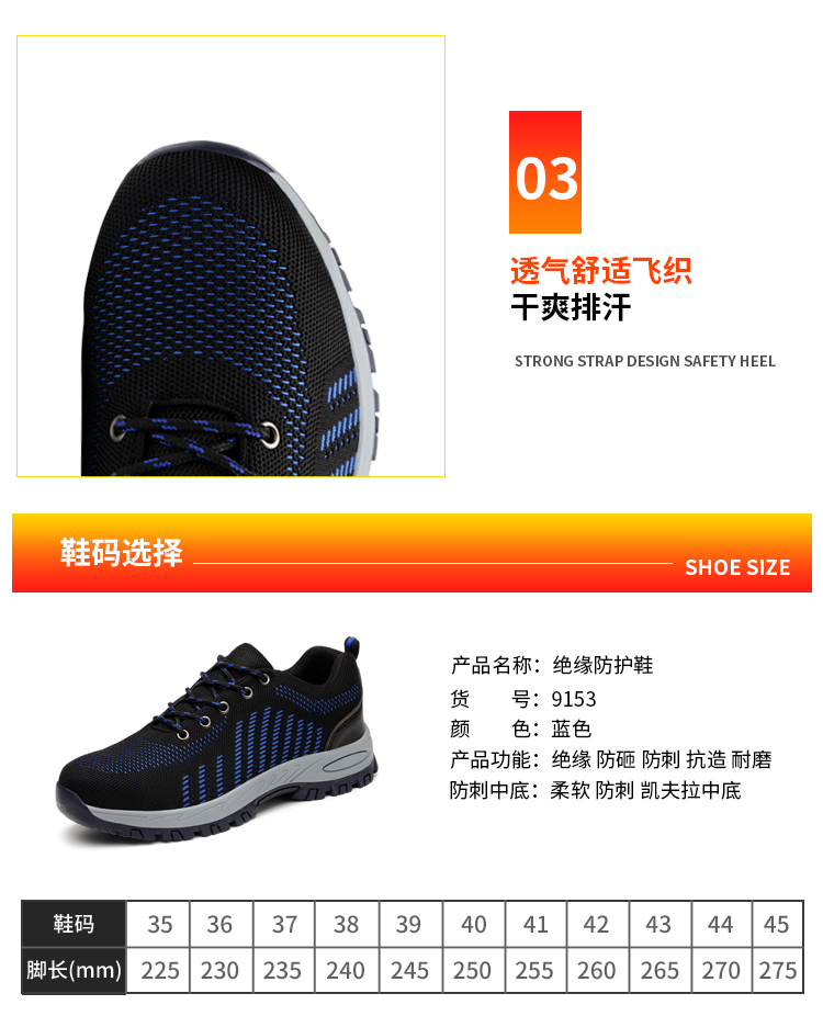 劳保鞋绝缘鞋防砸防刺飞织网面透气防护鞋