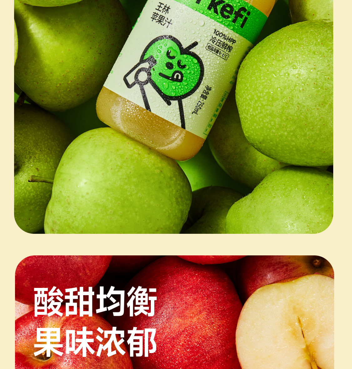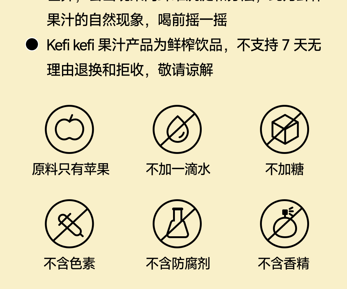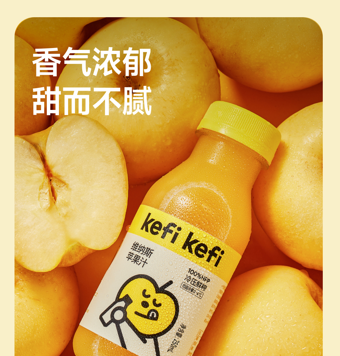 Kefi kefi 100%HPP 冷压鲜榨苹果汁 (王林苹果汁/宛均苹果汁/维纳斯苹 果汁/组合装 全程顺丰冷链)生鲜产品不接受七天无理由