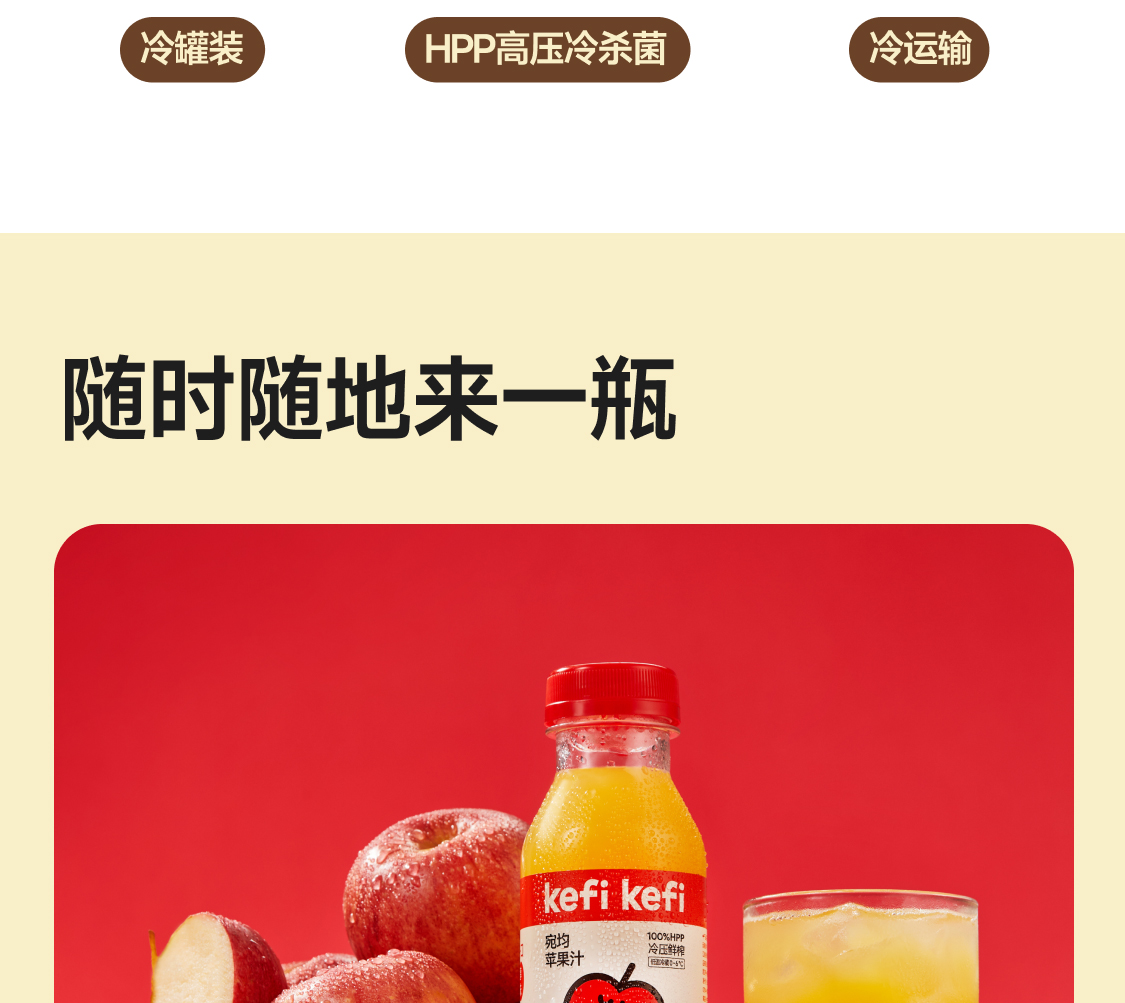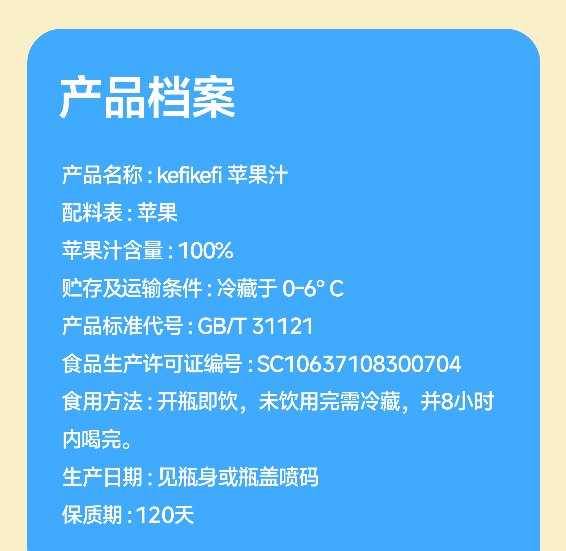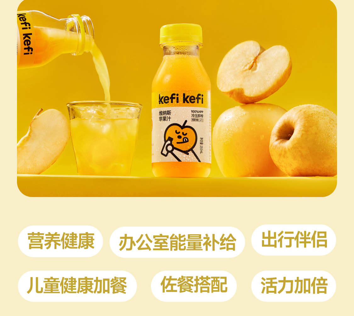 Kefi kefi 100%HPP 冷压鲜榨苹果汁 (王林苹果汁/宛均苹果汁/维纳斯苹 果汁/组合装 全程顺丰冷链)生鲜产品不接受七天无理由