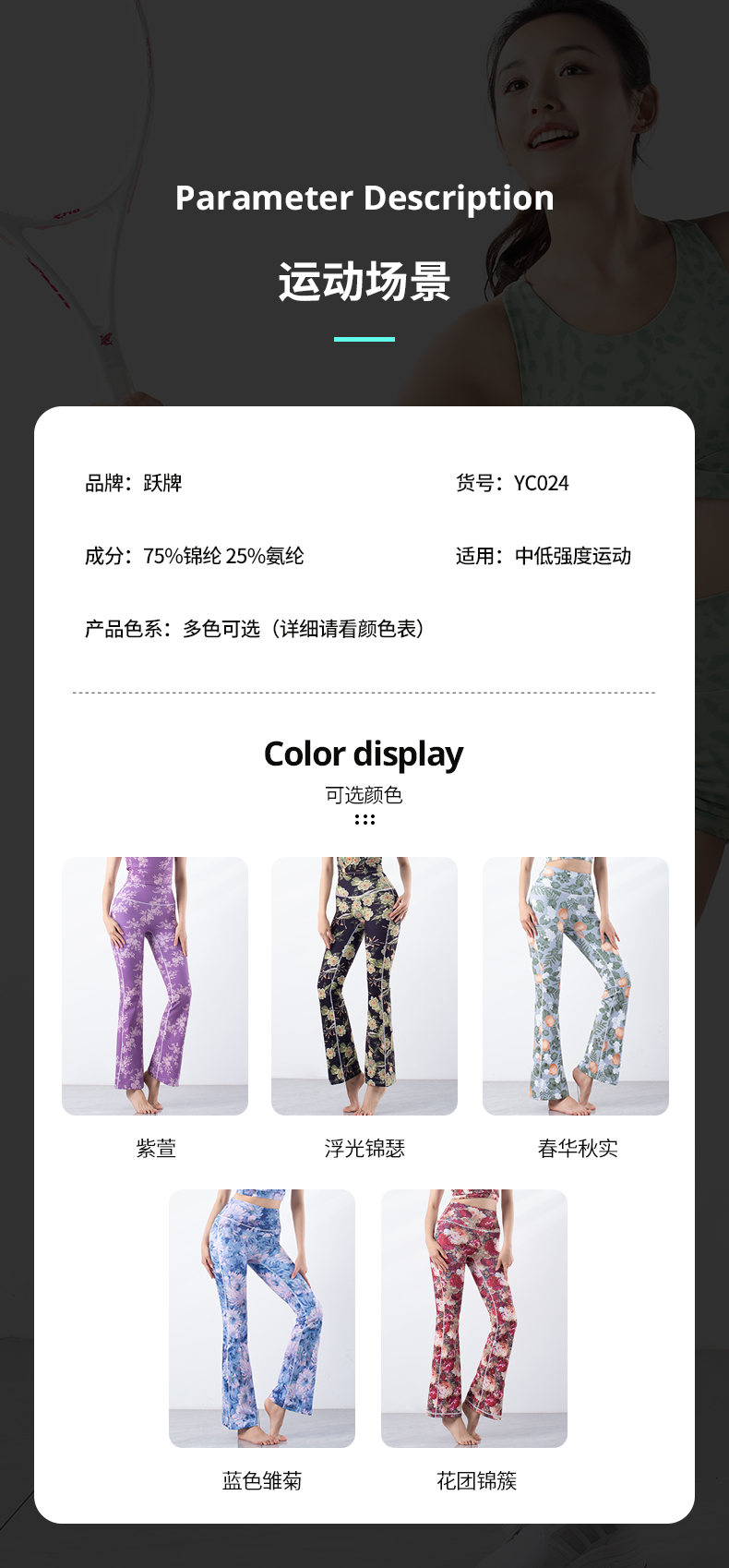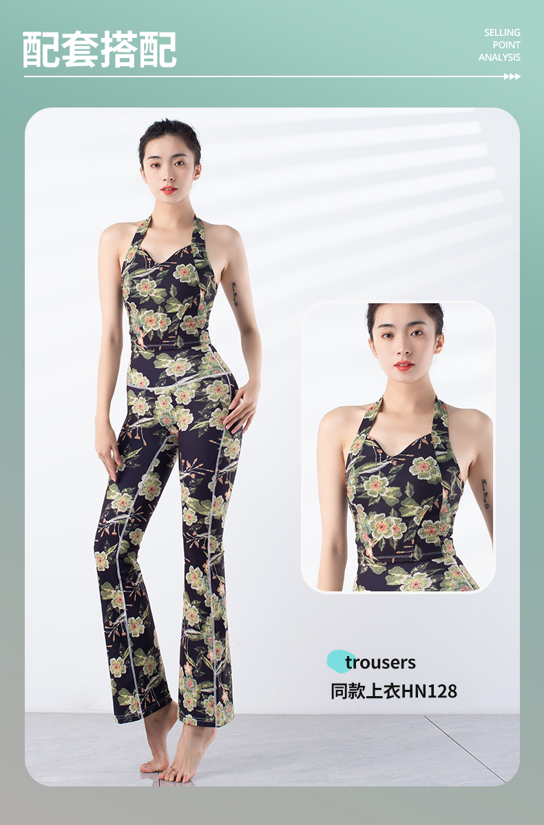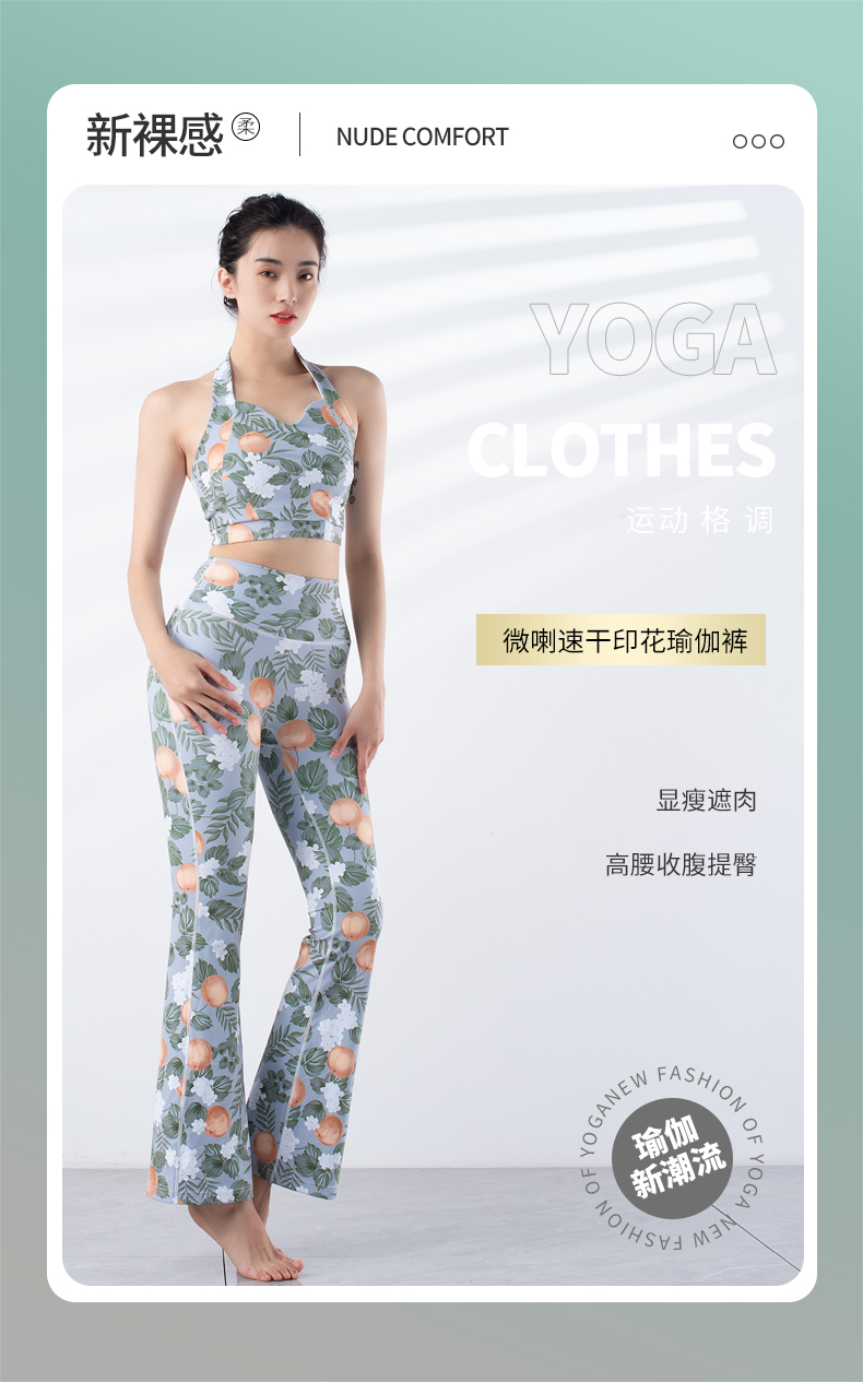 跃牌【洛水之神系列】新款显瘦遮肉微喇速干印花瑜伽裤YC024