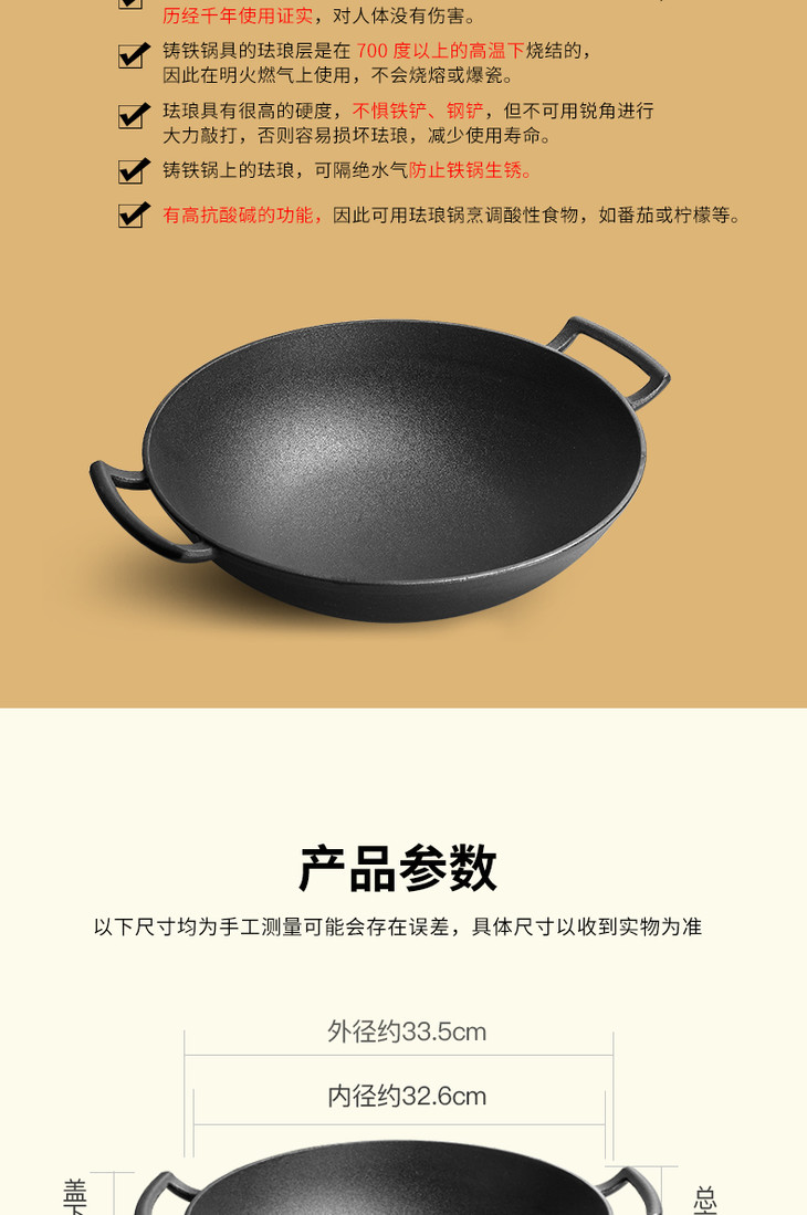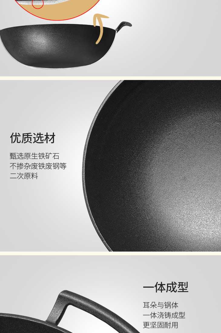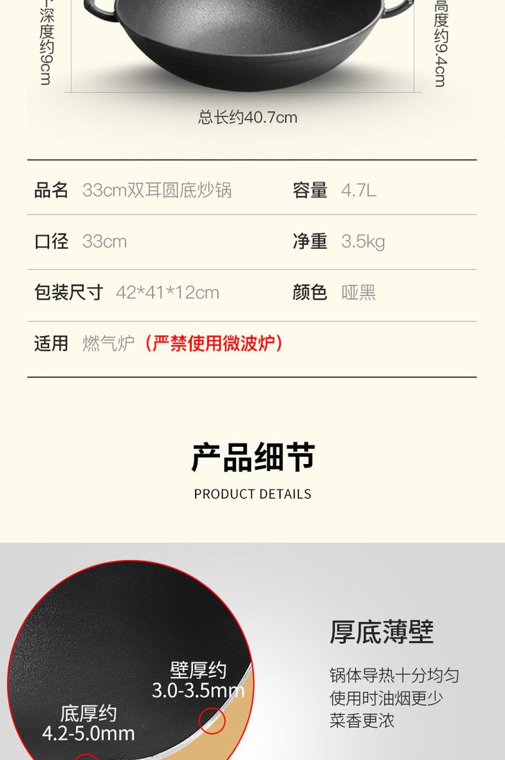 【品牌直发】铸味 | 33CM双耳炒锅 铸铁老式家用 少油烟生铁锅 燃气灶适用铁锅