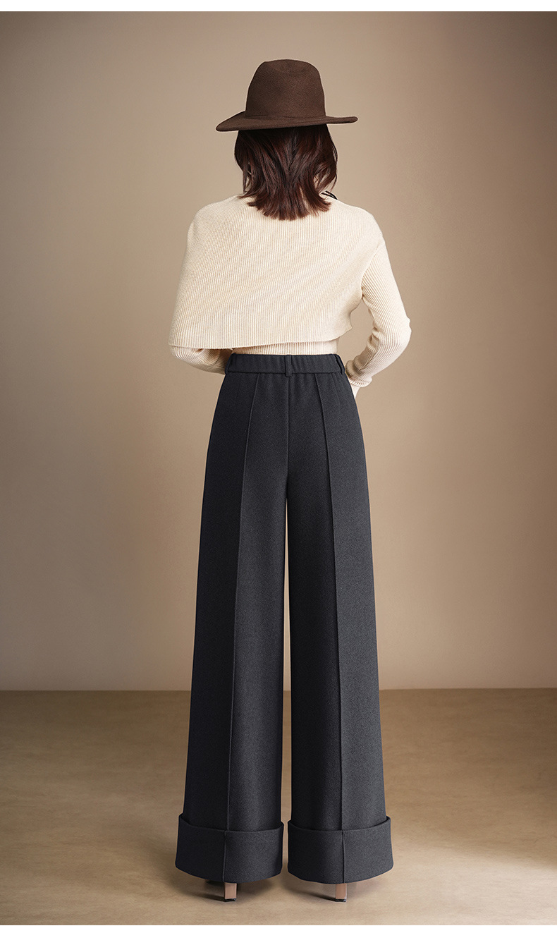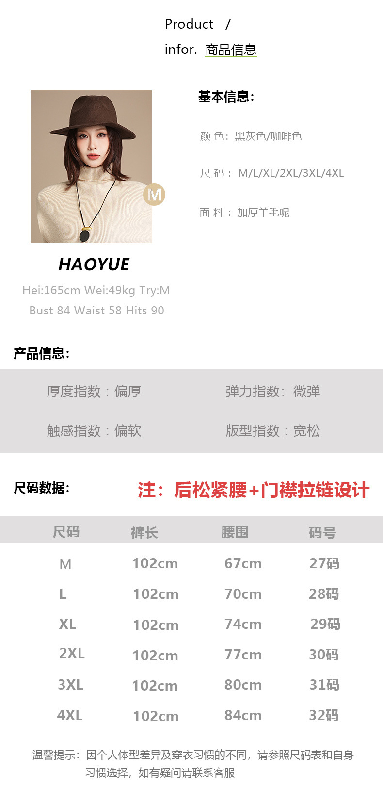 QYM 6997-Y加厚羊毛呢阔腿裤宽松休闲裤高腰时尚裤 商品图4