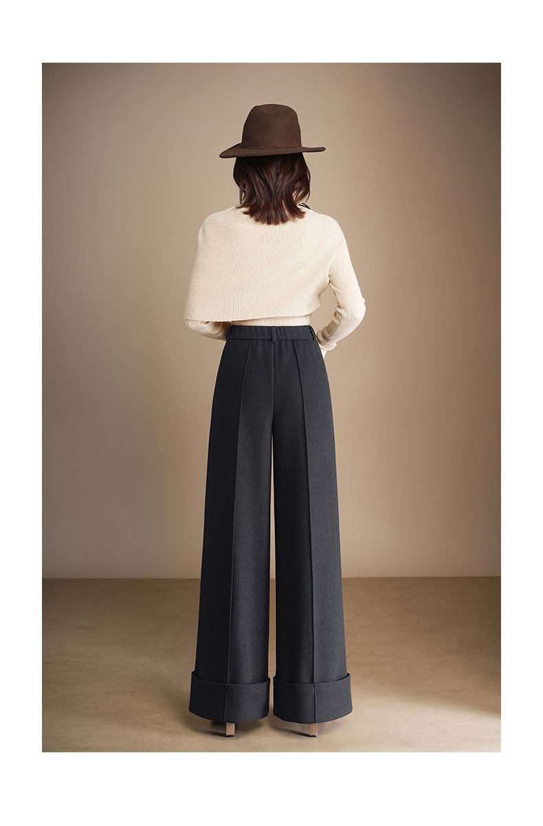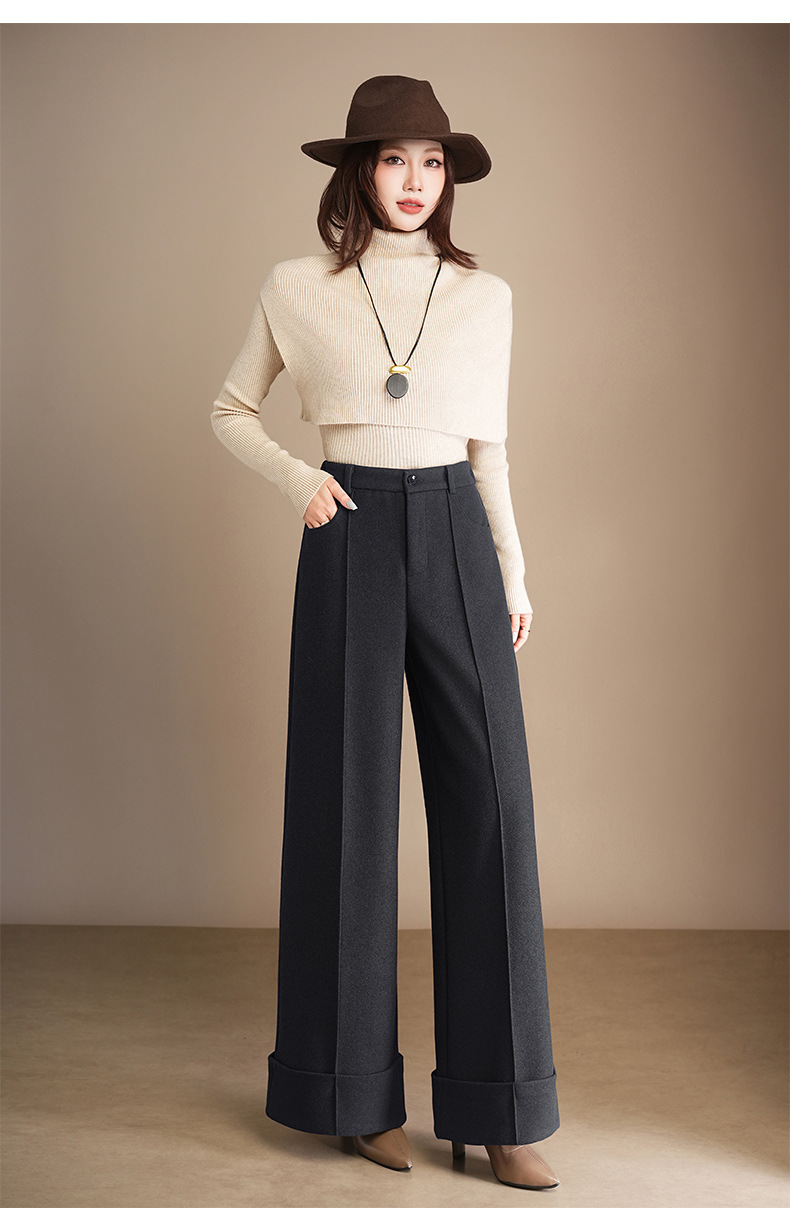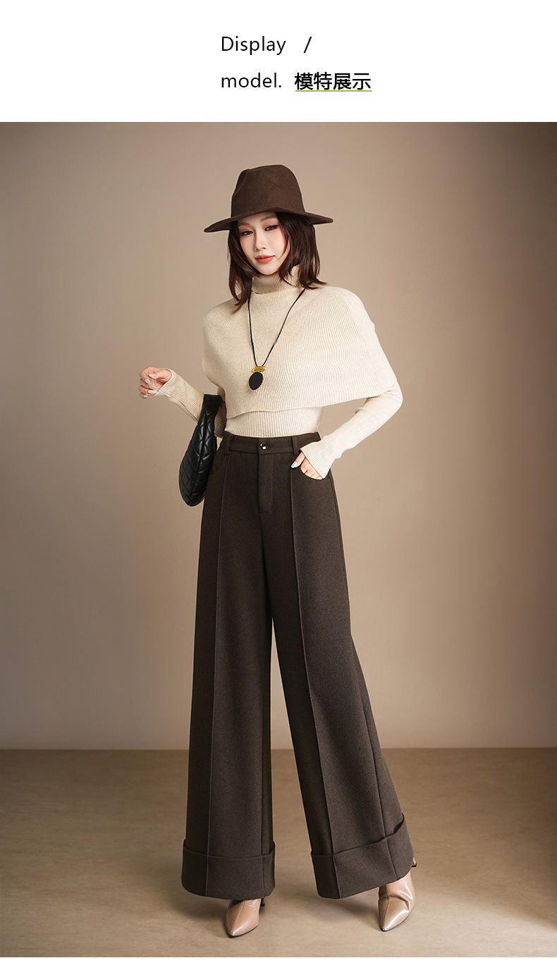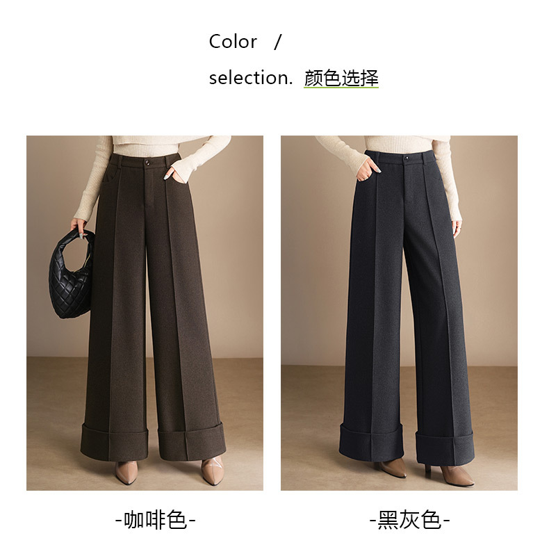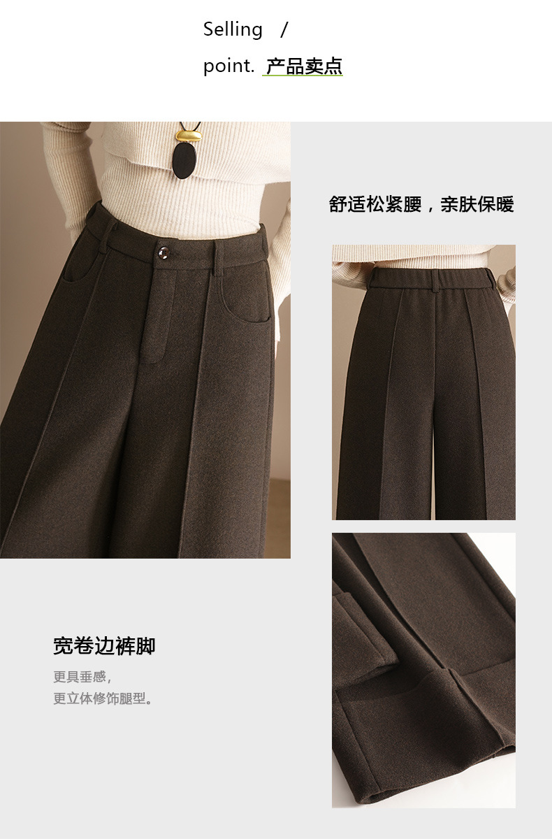 QYM 6997-Y加厚羊毛呢阔腿裤宽松休闲裤高腰时尚裤 商品图0